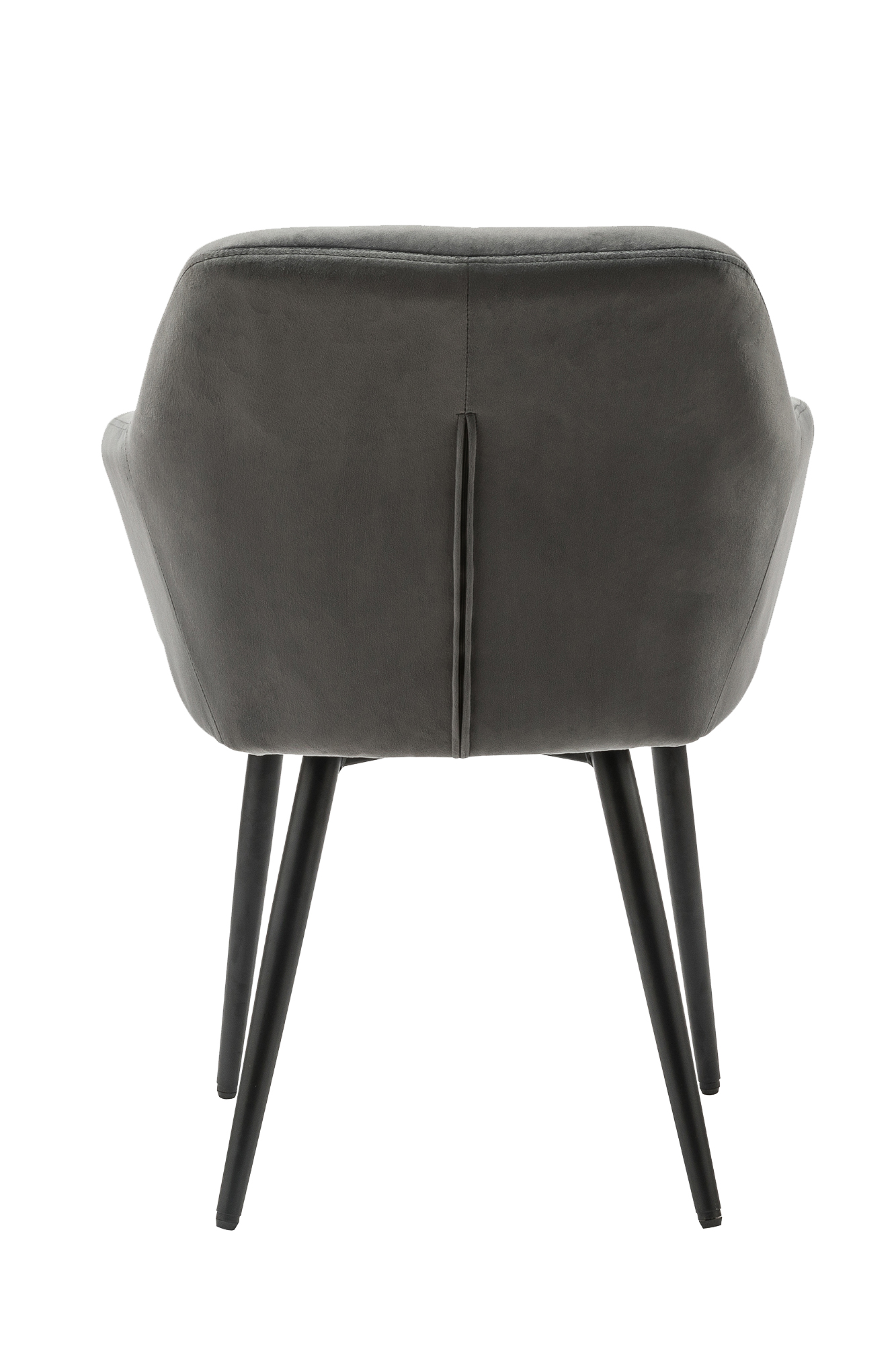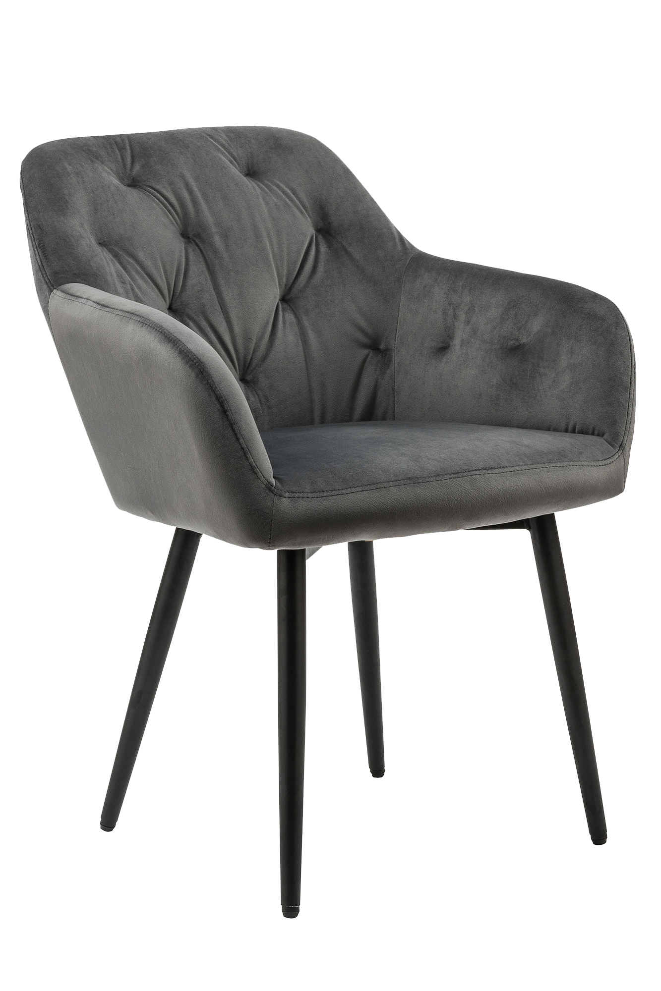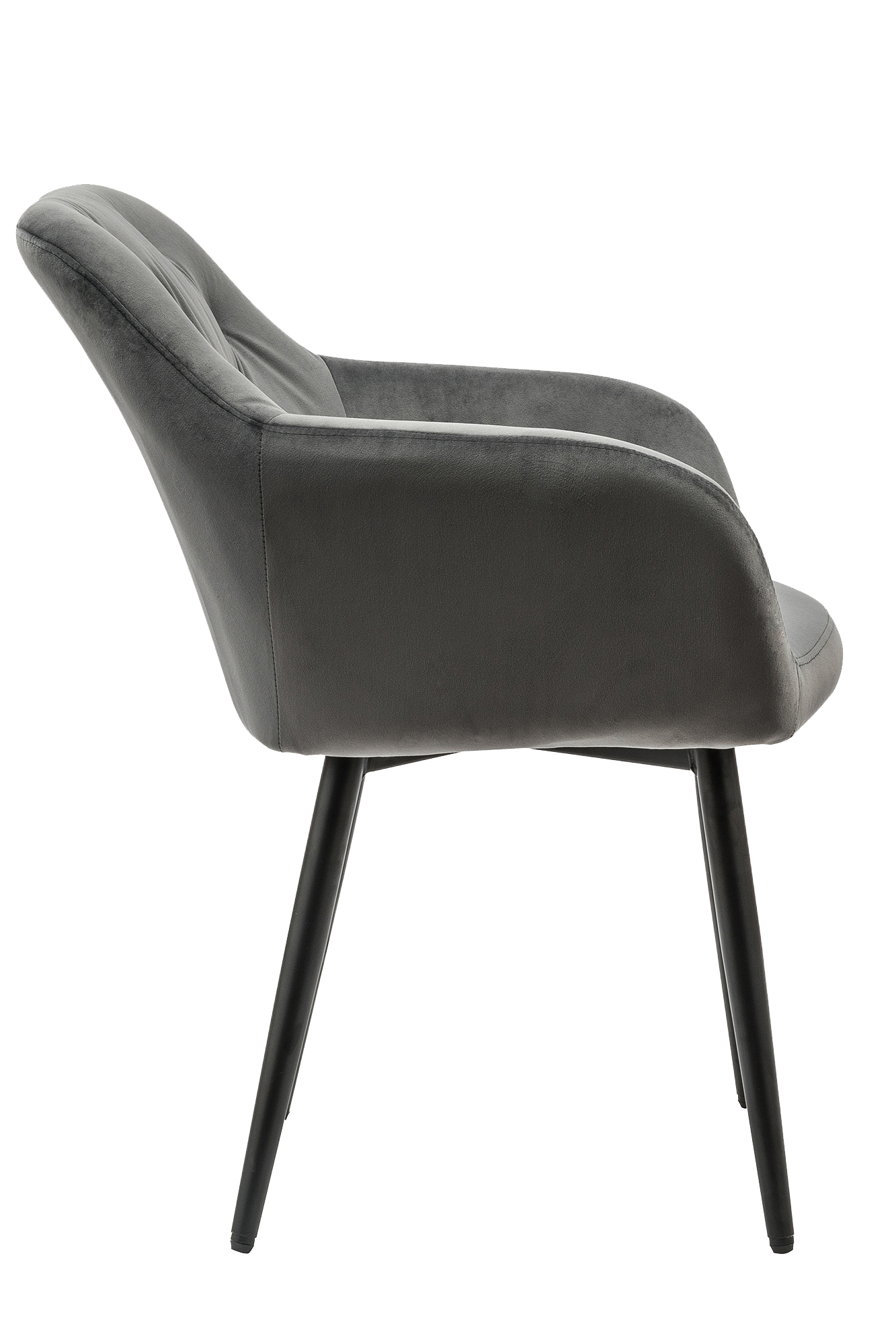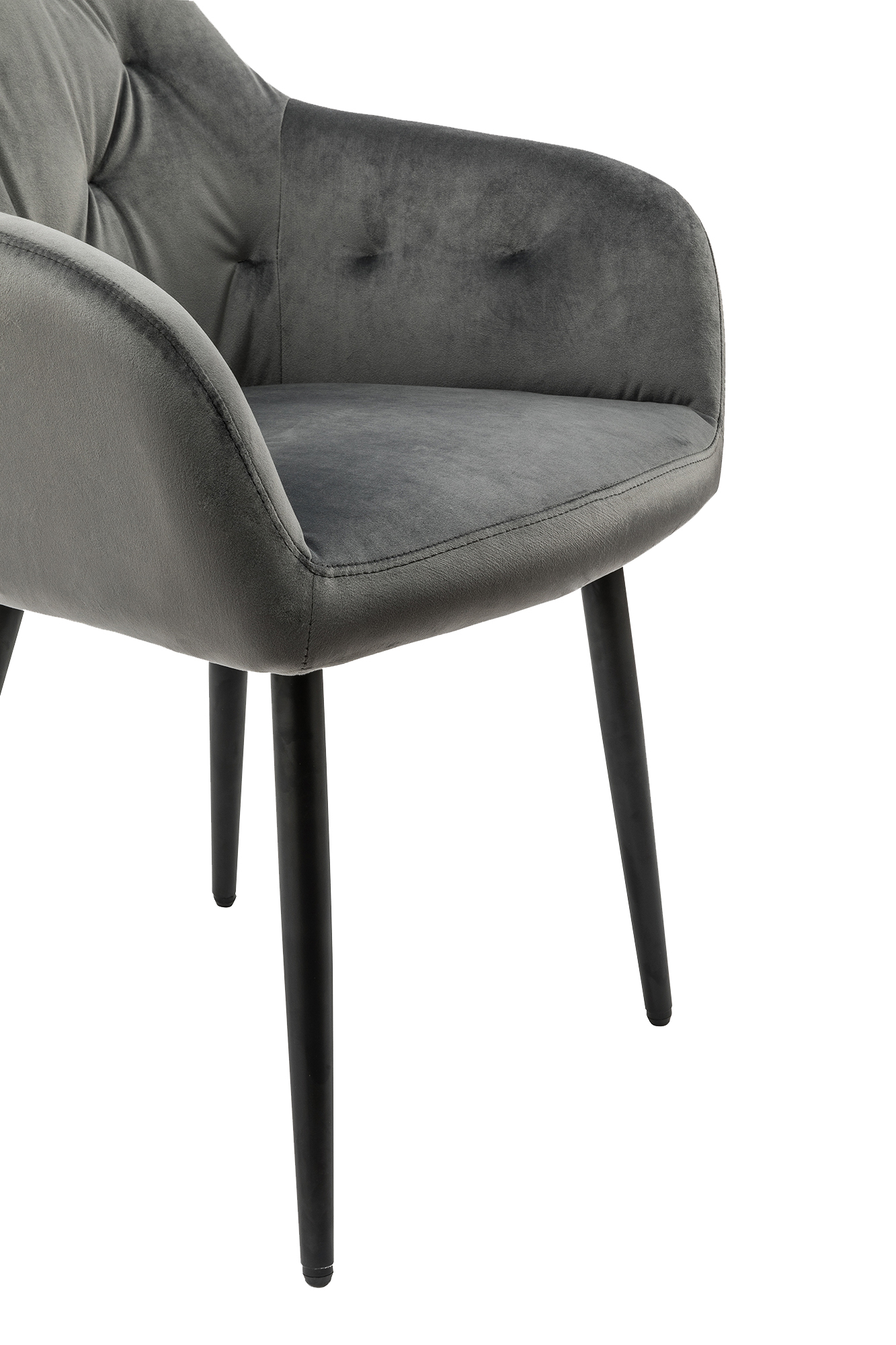 Cette chaise rembourrée moderne séduit par son revêtement en tissu aspect velours et par son rembourrage au niveau de l'assise et du dossier. Les 4 pieds en métal finition époxy ton noir garantissent une excellente stabilité tout en offrant un superbe contraste avec le revêtement de la chaise. Grâce au rembourrage confortable, au dossier et aux accoudoirs, vous bénéficierez d'un confort d'assise haut de gamme. Le point fort visuel est le capitonnage qui s'étend sur la partie intérieure du dossier et des accoudoirs et qui contribue à une image d'ensemble harmonieuse.