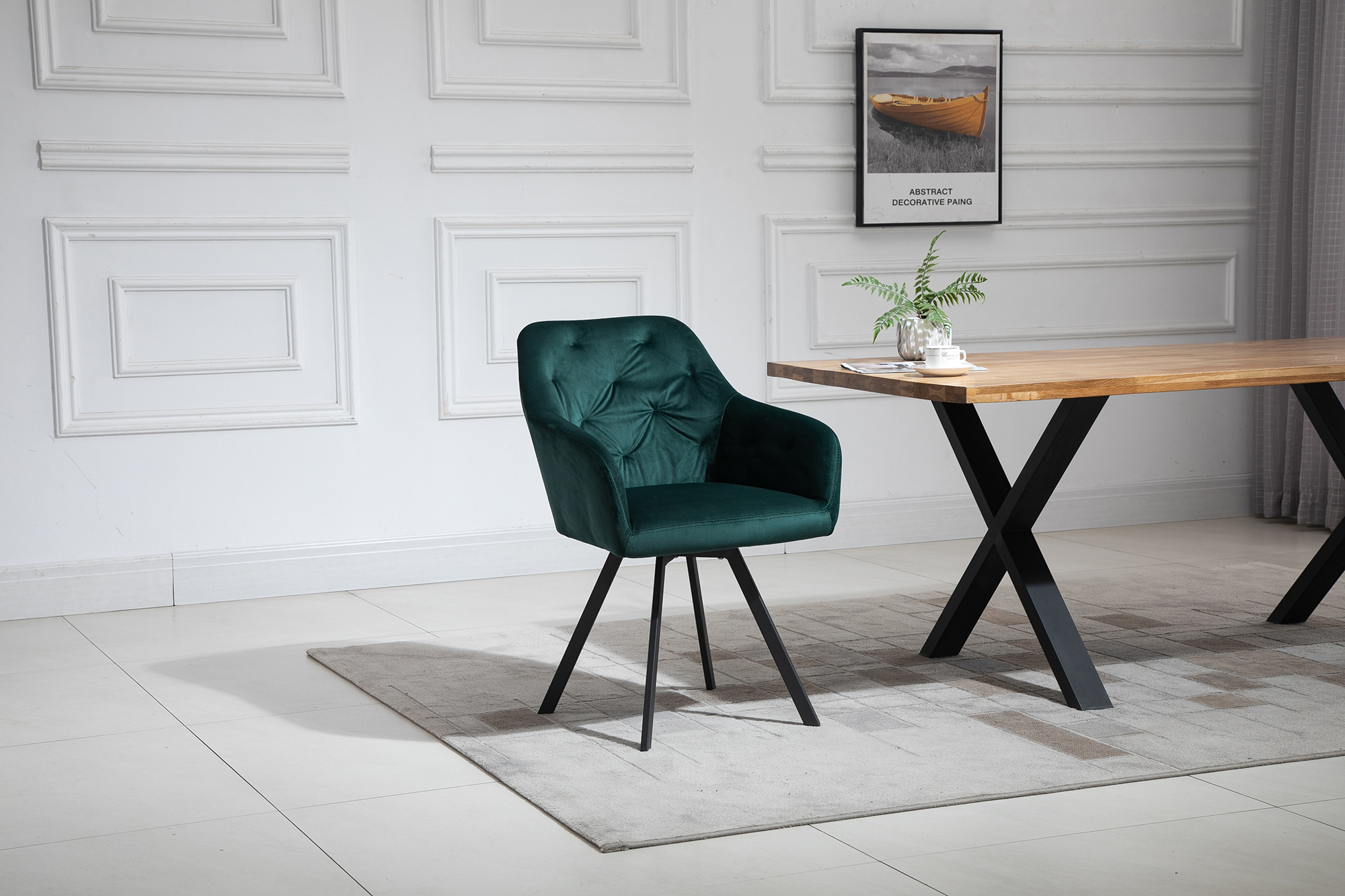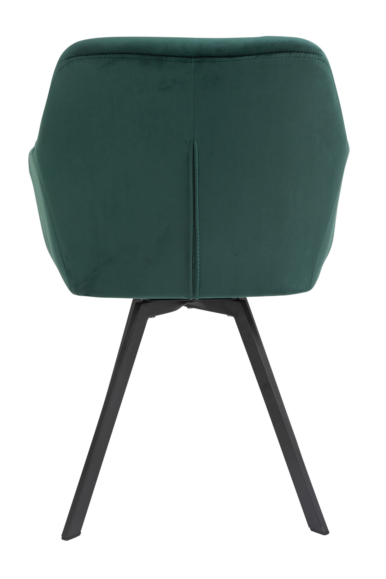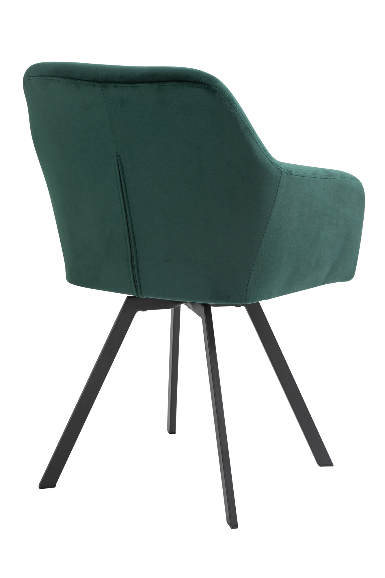 Pour un intérieur chic – Cette chaise à accoudoirs glamour aspect velours attirera tous les regards dans votre salle à manger. Le rembourrage généreux de l'assise et des accoudoirs garantit un confort optimal tandis que le dossier capitonné et le piètement robuste, composé de quatre pieds en biais façon tripode en métal finition époxy ton noir, apportent la touche finale pour un look exclusif. Cerise sur le gâteau : la fonction pivotante à 360° offrant confort et liberté de mouvement. La chaise ne sera pas seulement la solution optimale pour votre table de repas : elle sera également du plus bel effet près du bureau ou de la coiffeuse. Afin d'intégrer harmonieusement la chaise dans différents styles d'intérieur, elle est proposée dans divers coloris.