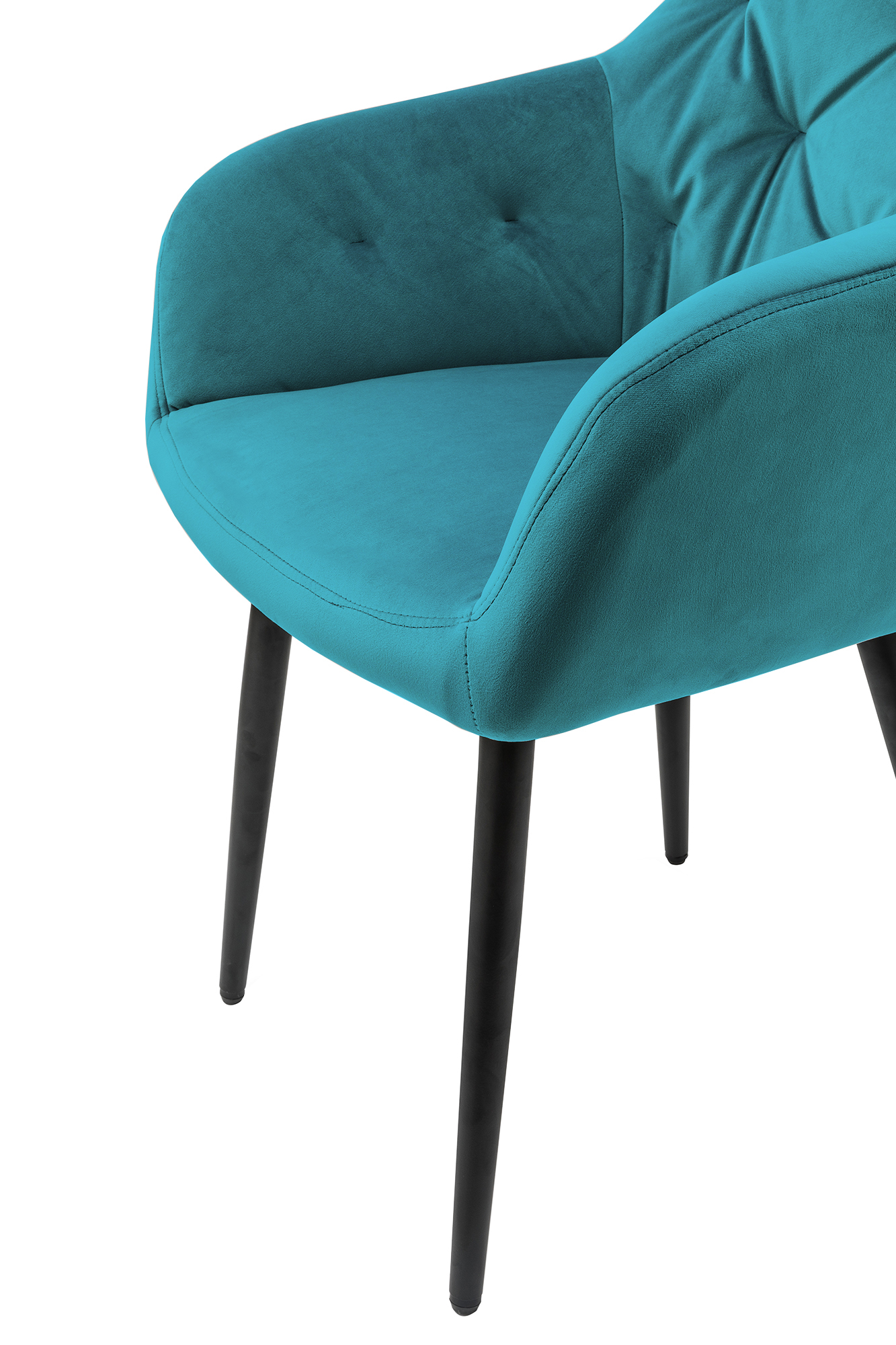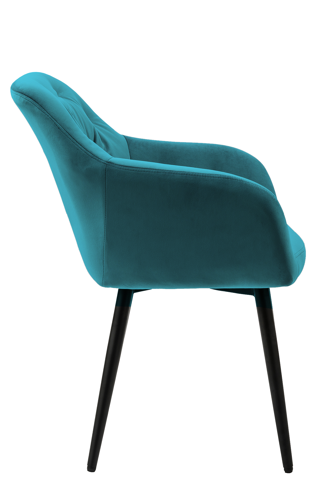 La chaise rembourrée moderne séduit par son revêtement en tissu aspect velours et par son rembourrage au niveau de l'assise et du dossier. Les 4 pieds en métal finition époxy ton noir garantissent une excellente stabilité tout en offrant un superbe contraste avec le revêtement de la chaise. Grâce au rembourrage confortable, au dossier et aux accoudoirs, vous bénéficierez d'un excellent confort d'assise. Le point fort visuel est le capitonnage qui s'étend sur la partie intérieure du dossier et des accoudoirs et qui contribue à une image d'ensemble harmonieuse.