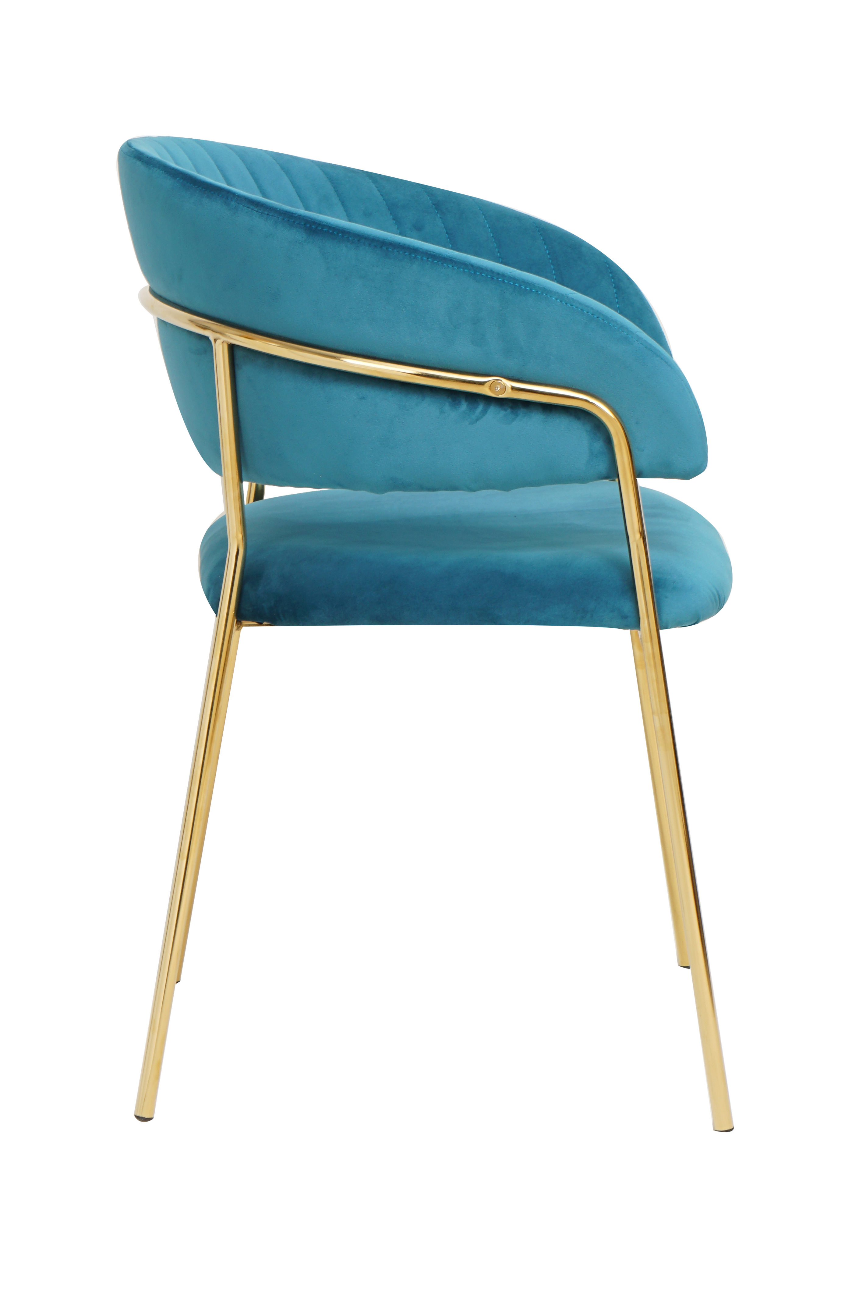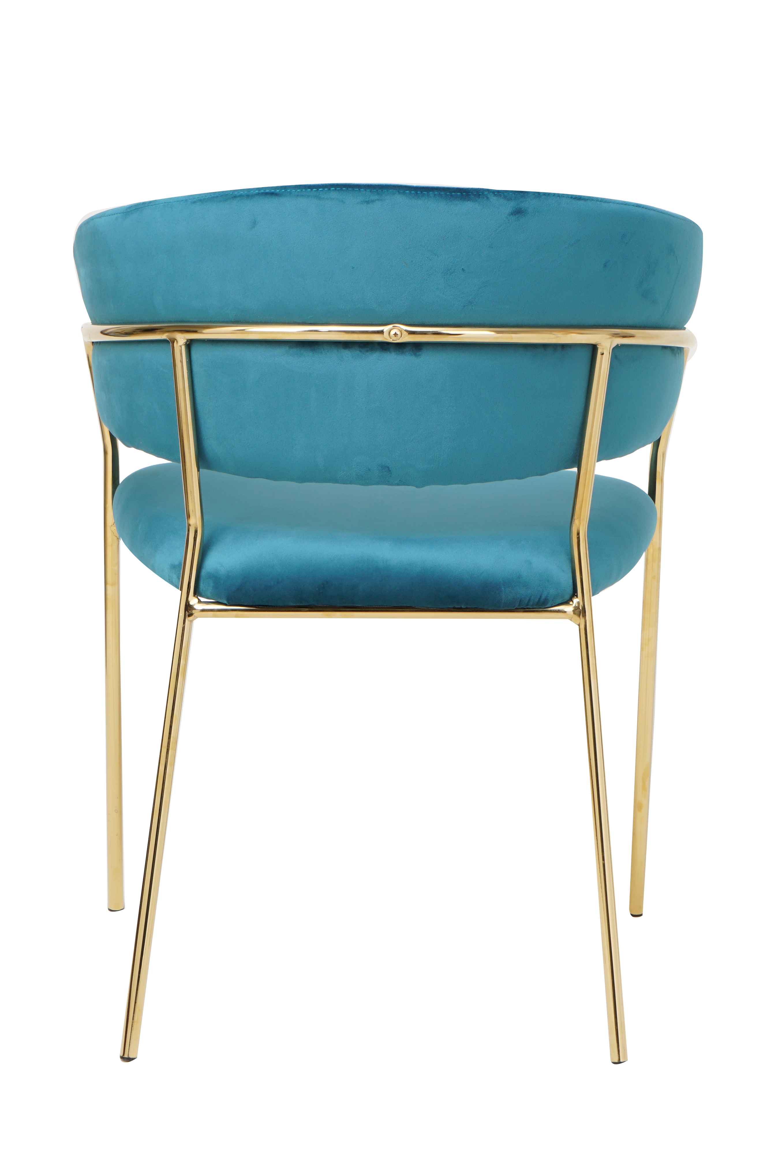 Cette chaise en velours est un véritable bijou en matière de design ! L'élégante chaise offre un excellent confort d'assise tout en attirant les regards. Le revêtement en velours turquoise offre un superbe contraste avec les élégants pieds en métal doré. La partie dossier et accoudoirs en arrondi s'adapte parfaitement à votre morphologie. Cette chaise en velours vous invite à la détente. Dans la salle à manger ou le salon, cette chaise est la solution idéale. Vos invités vous envieront cette jolie chaise !
