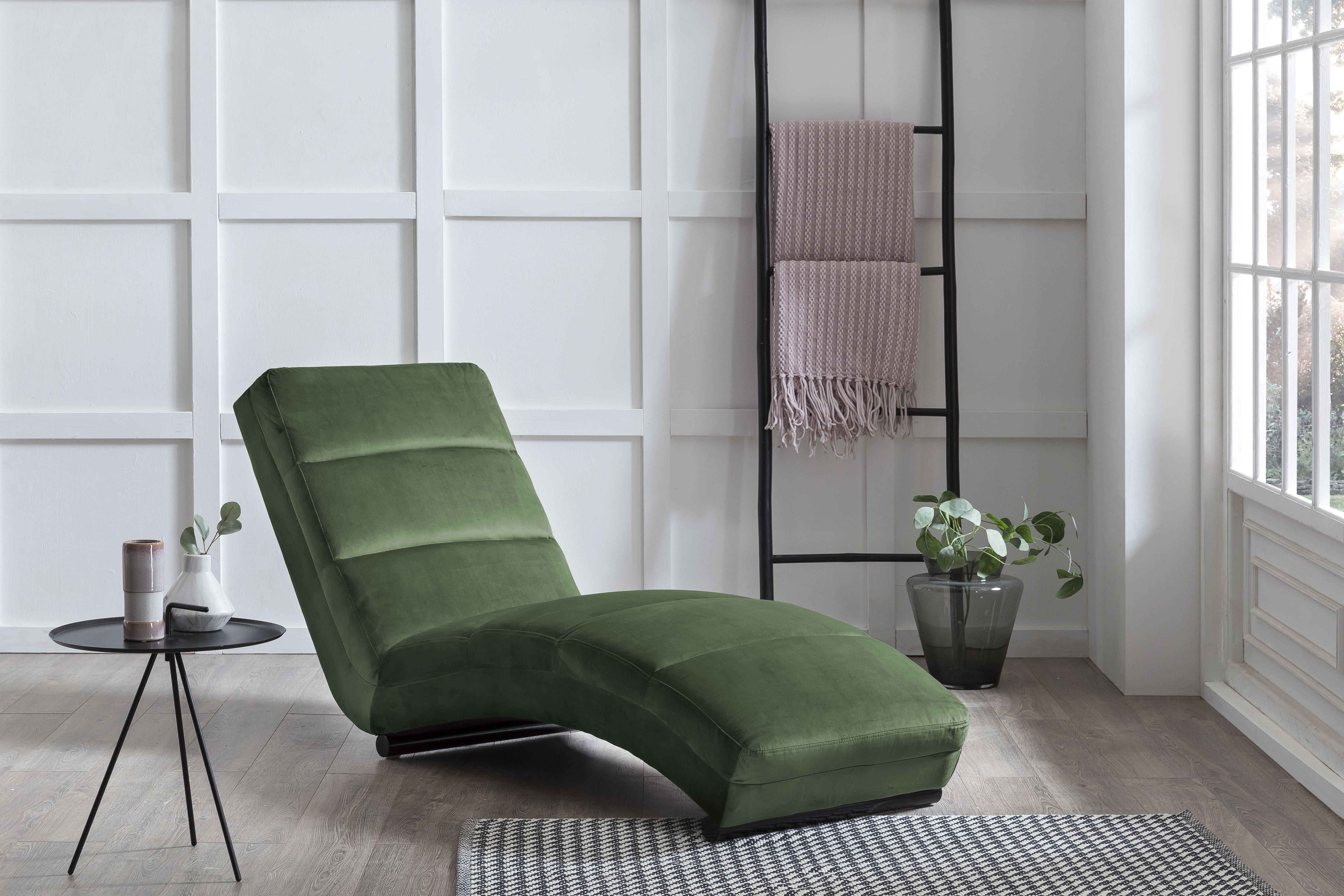 Cette chaise longue au design élégant séduit par son revêtement en tissu aspect velours. Les pieds sont en métal finition époxy ton noir et assurent non seulement une stabilité sans vacillement, mais s’harmonisent aussi parfaitement avec le revêtement au toucher velouté de la chaise longue. La surface relax agréablement rembourrée vous offre l’expérience d'une détente et d’un confort optimal. La chaise longue se distingue par sa surface relax ergonomique, son rembourrage confortable et sa robustesse. Profitez d’agréables moments de bien-être sur cette chaise relax et plongez dans les sphères les plus profondes de la détente.