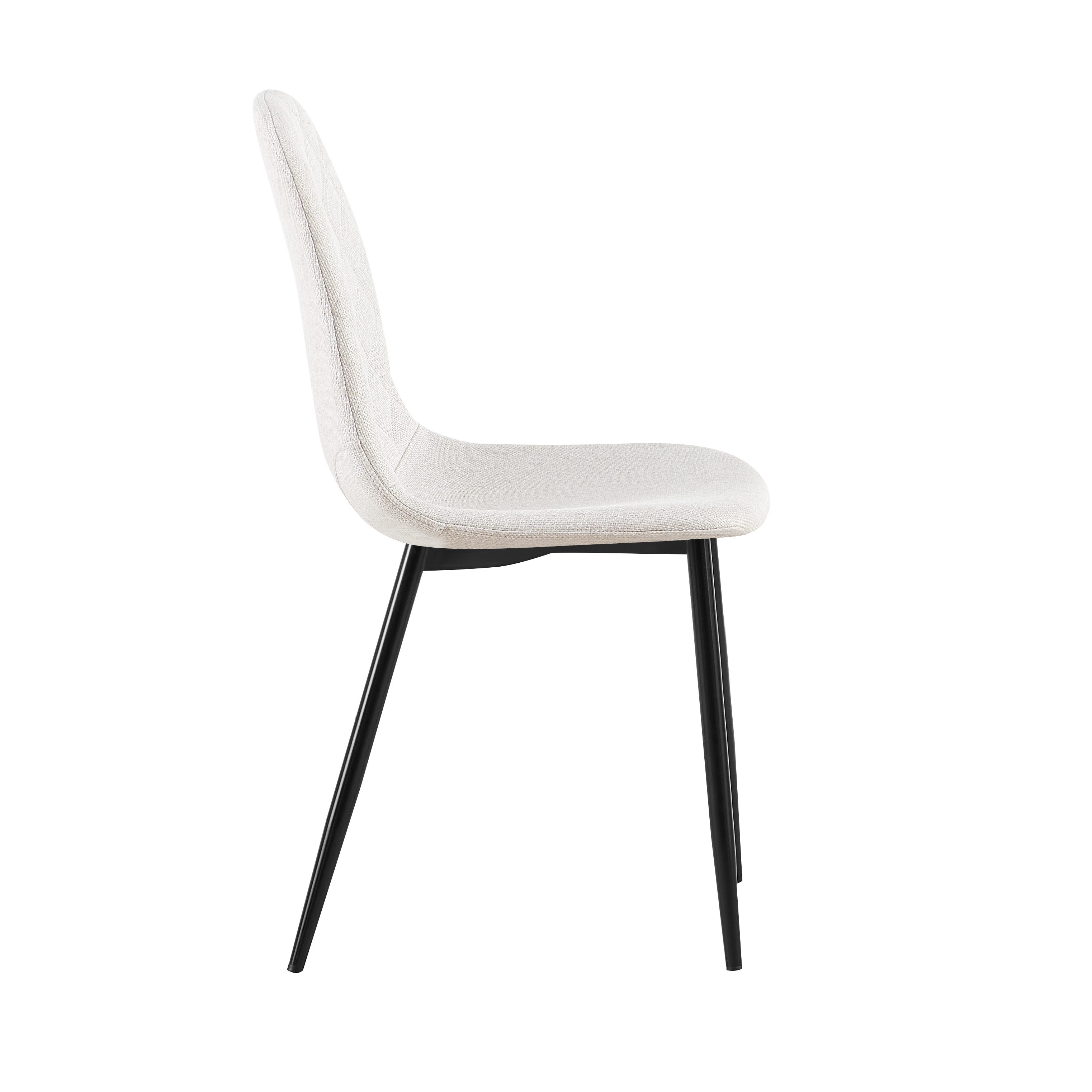 Le piètement en métal noir assure stabilité et solidité et forme un contraste élégant avec le revêtement en tissu doux. Grâce à ses lignes épurées et à ses couleurs intemporelles, cette chaise peut être combinée de nombreuses façons. Que ce soit avec un style d'ameublement moderne, scandinave ou classique.