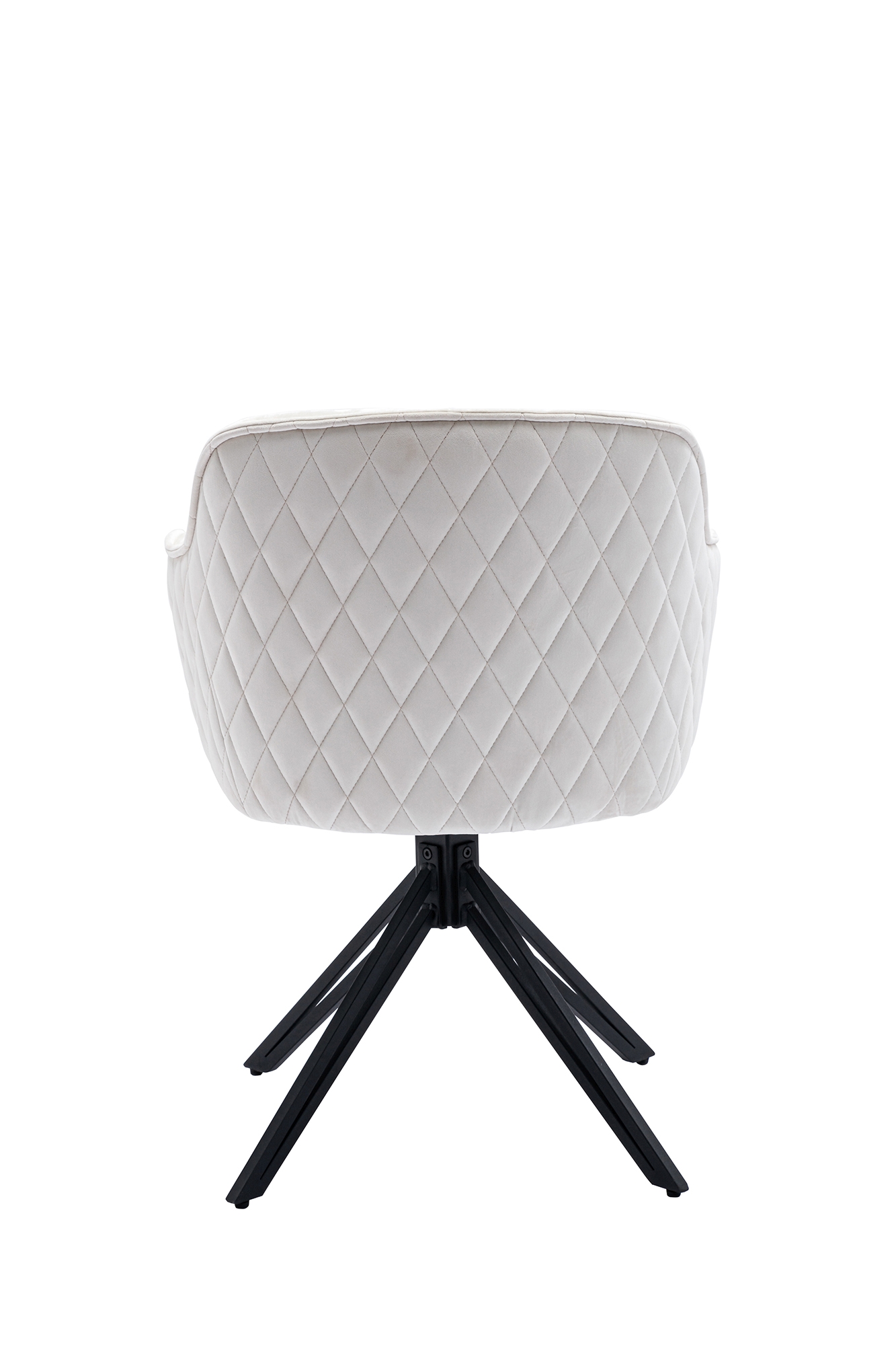 La chaise à accoudoirs stylée avec fonction pivotante à 360° enrichira votre intérieur grâce à son confort d’assise particulièrement souple. La coque pivote à 360°. Le look vintage de cette chaise confortable attirera tous les regards dans la pièce. Le piètement design original en métal noir et les surpiqûres en forme de losanges dans le dos sont quelques-uns des détails de ce fauteuil qui attestent d’une finition soignée. Les pieds en métal noir offrent un contraste intéressant avec le revêtement en velours de l’assise tout en garantissant une excellente stabilité. Une chaise originale en tout point pour votre intérieur !