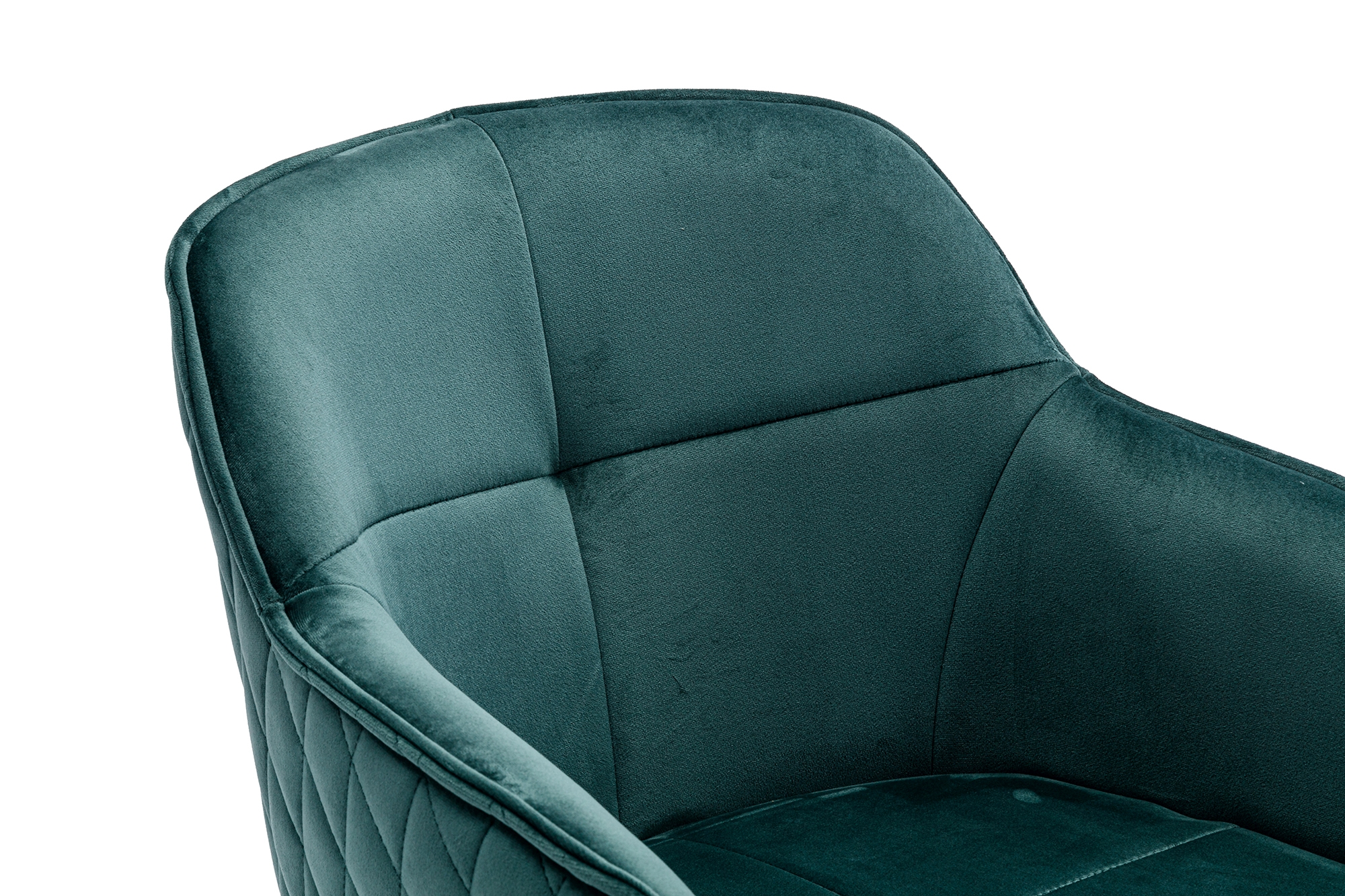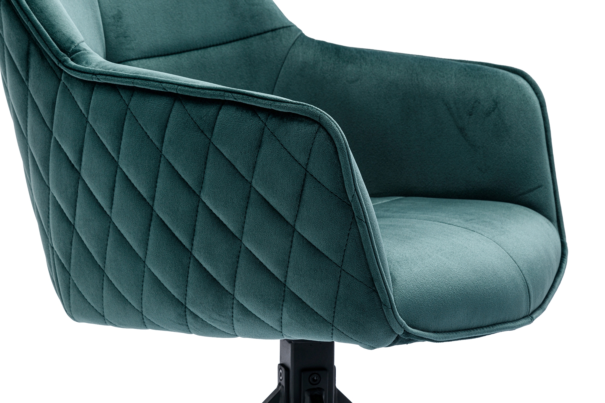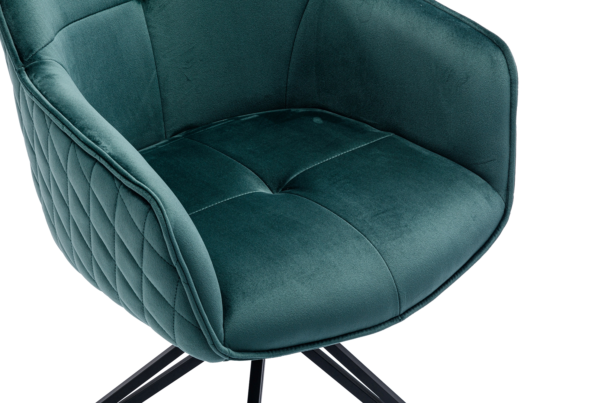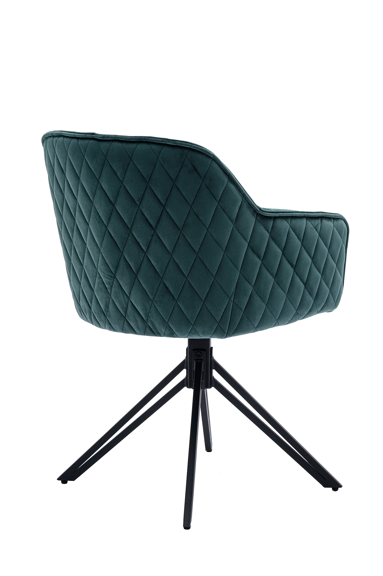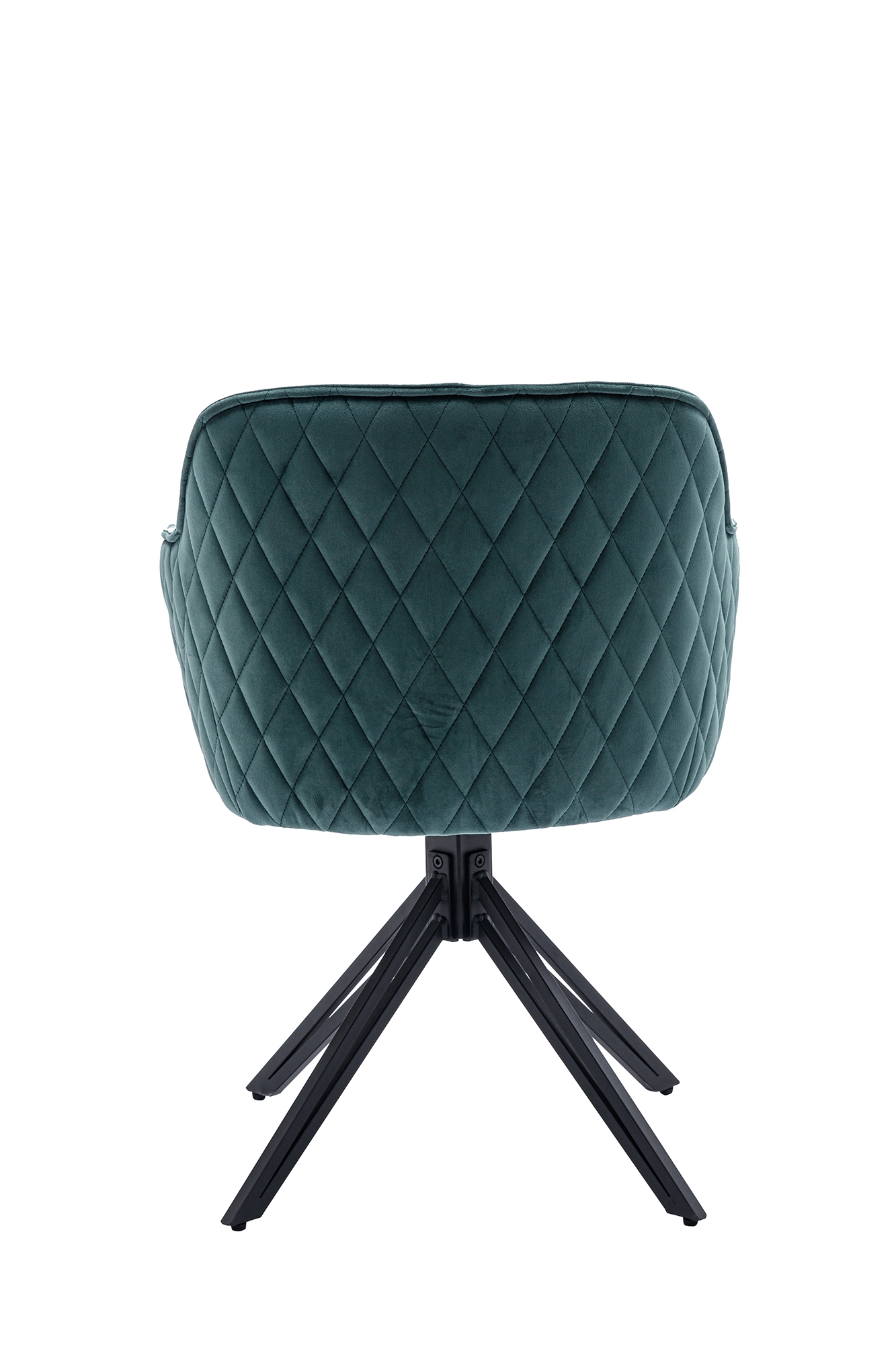 La chaise à accoudoirs stylée avec fonction pivotante à 360° enrichira votre intérieur grâce à son confort d’assise particulièrement souple. La coque pivote à 360°. Le look vintage de cette chaise confortable attirera tous les regards dans la pièce. Le piètement design original en métal noir et les surpiqûres en forme de losanges dans le dos sont quelques-uns des détails de ce fauteuil qui attestent d’une finition soignée. Les pieds en métal noir offrent un contraste intéressant avec le revêtement en velours de l’assise tout en garantissant une excellente stabilité. Une chaise originale en tout point pour votre intérieur !