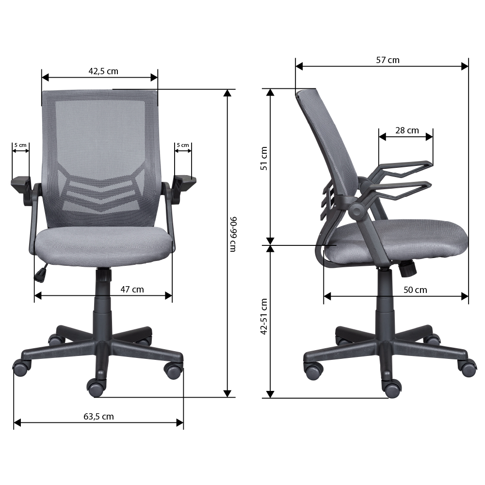 Revêtement : assise et dossier en tissu résille ton gris 100% polyester