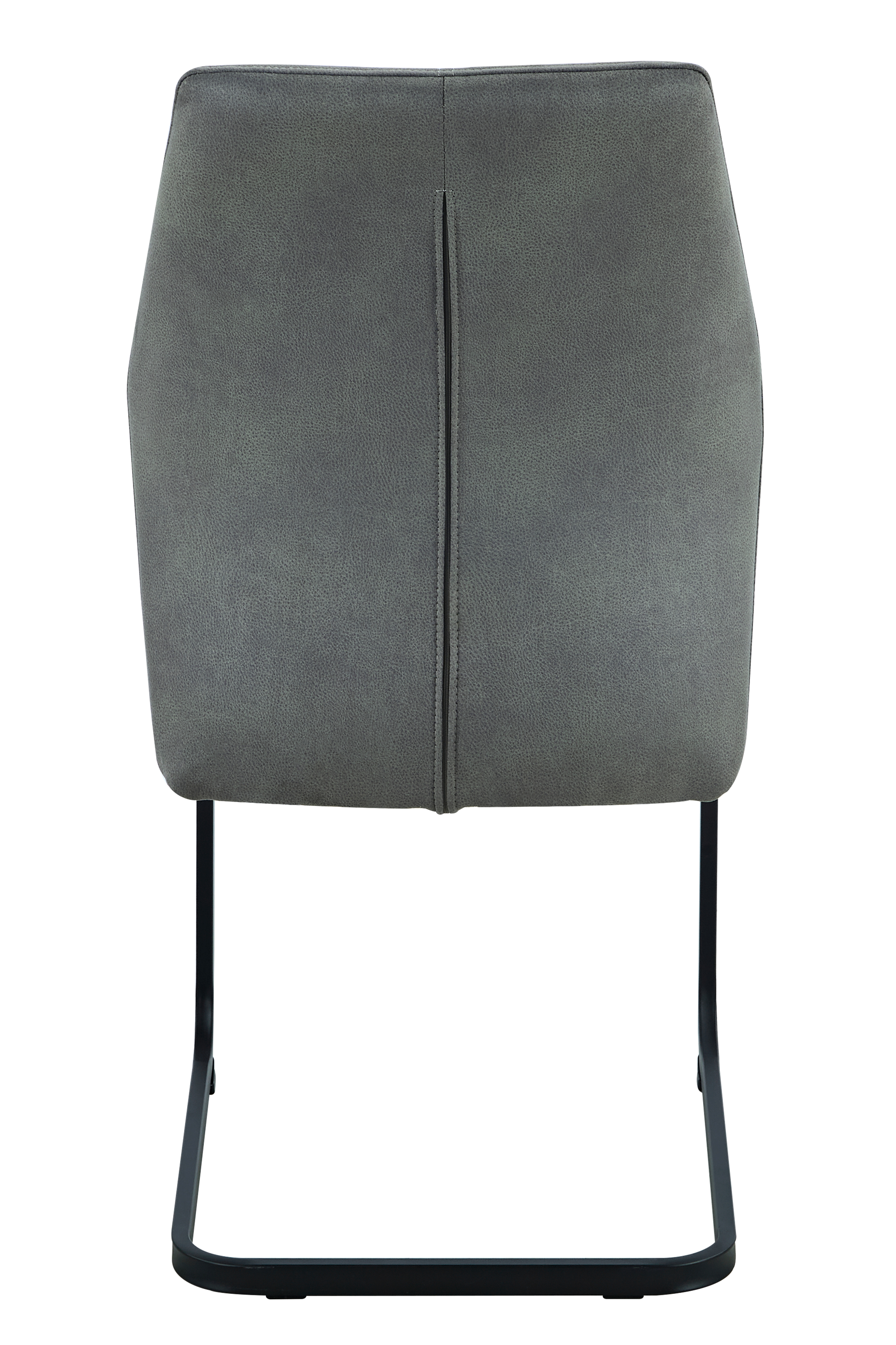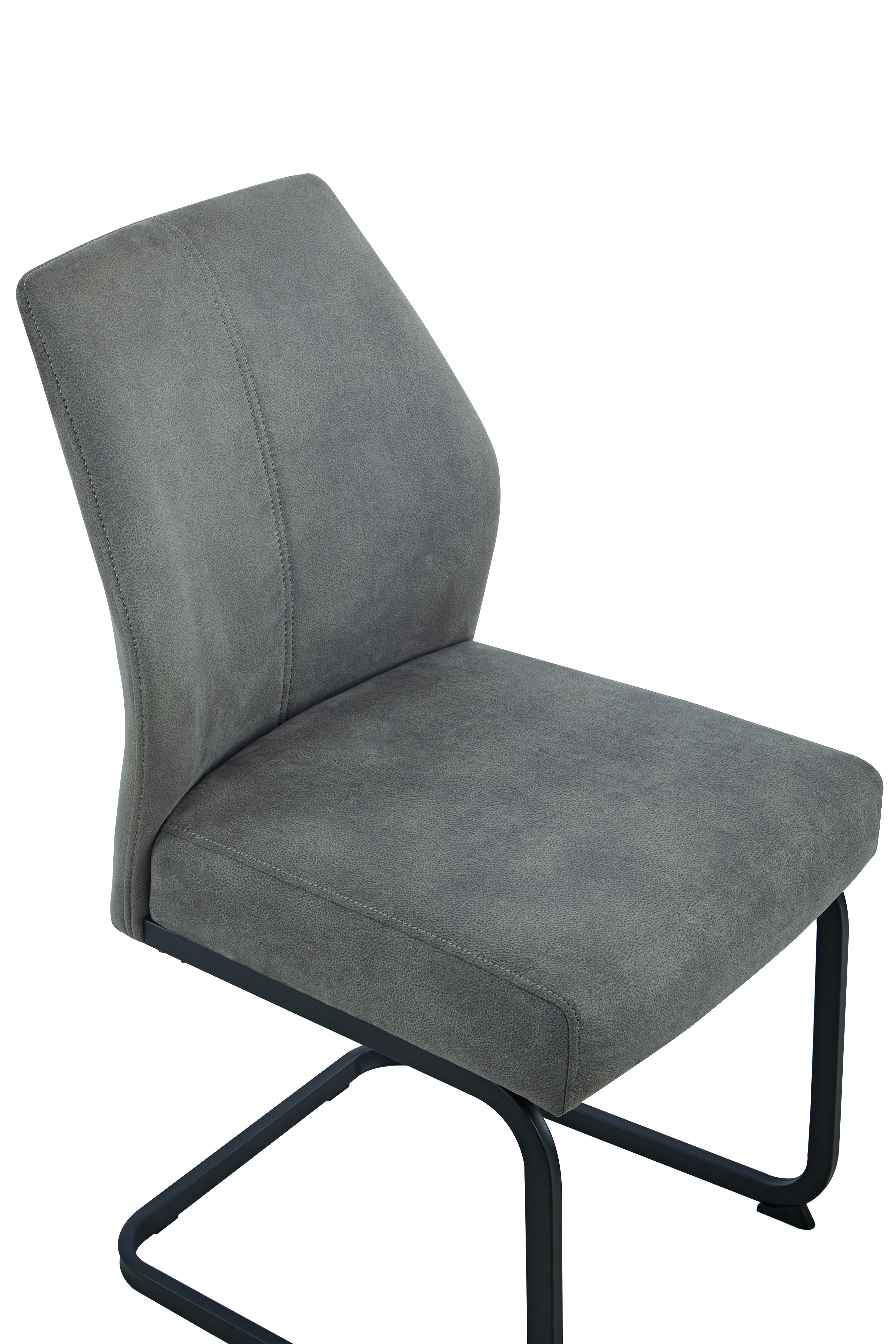 Cette chaise confortable allie des materiaux resistants a un confort d'assise adapte a un usage quotidien. Le revetement en microfibre aspect velours vintage (couleur anthracite) est facile d'entretien et seduit par son toucher agreablement doux. L'assise et le dossier sont rembourres et ornes de coutures decoratives. Le sommier a ressorts integre dans l'assise offre un confort supplementaire. Le pietement stable en tube metallique carre noir avec revetement en poudre structure confere a la chaise une base robuste. Avec une capacite de charge allant jusqu'a environ 140 kg, cette chaise est ideale pour une utilisation quotidienne dans la cuisine, la salle a manger ou le bureau a domicile.