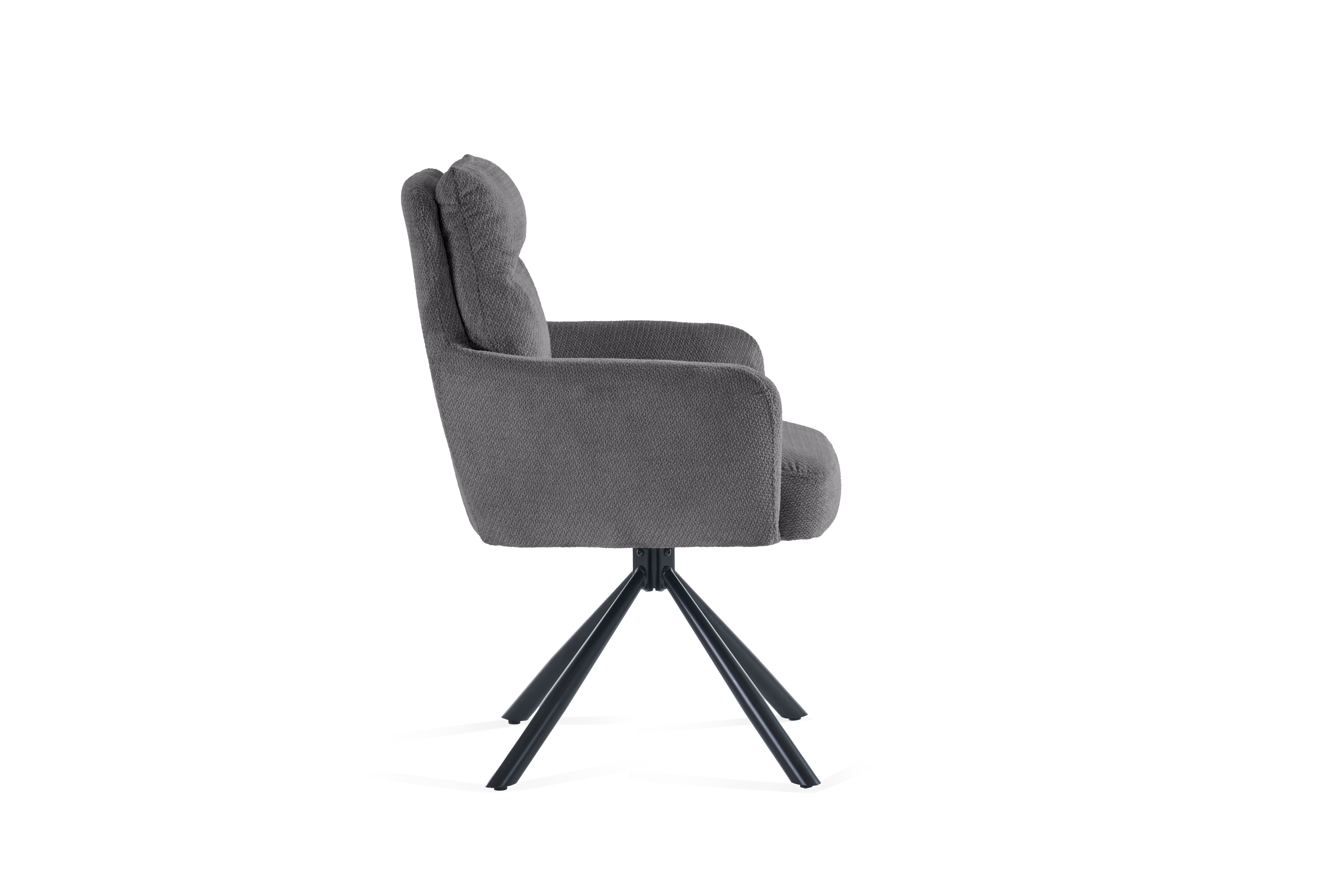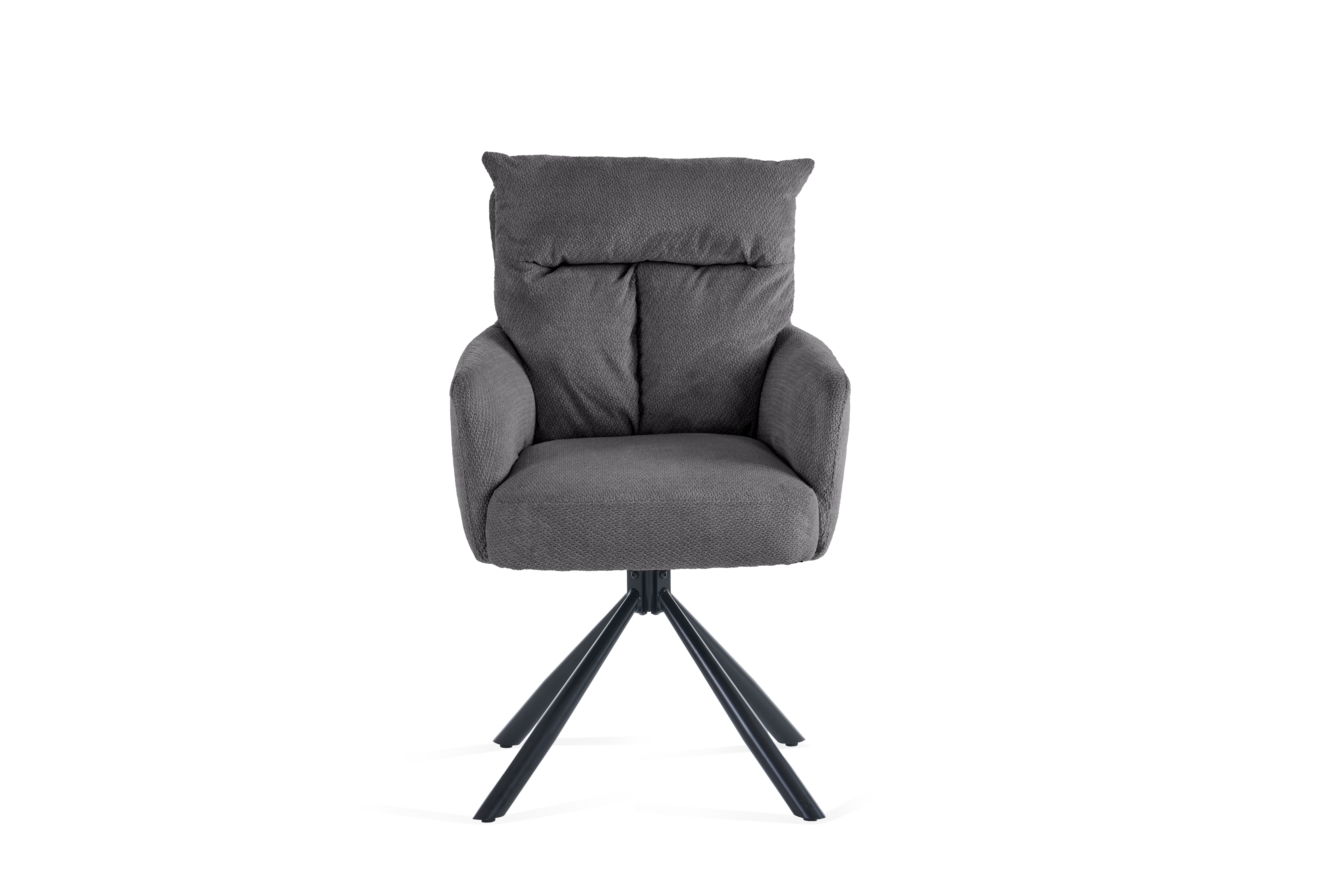 La fonction de rotation à 180 degrés avec mécanisme de retour, qui offre une liberté de mouvement supplémentaire et ramène automatiquement la chaise dans sa position initiale après s'être levé, constitue un atout particulier. Le piètement métallique stable garantit une bonne stabilité et souligne le caractère moderne de la chaise.