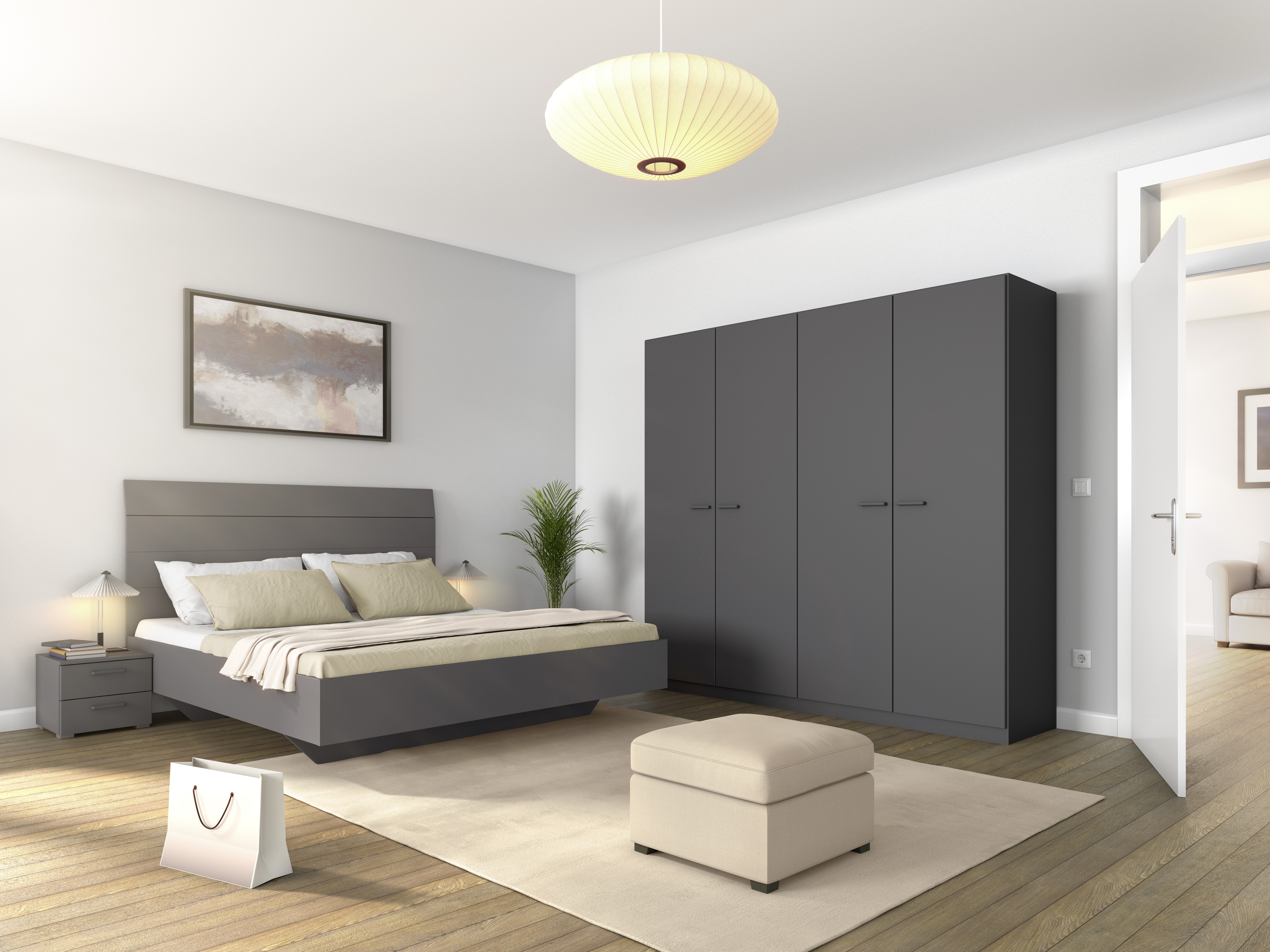 1 armoire à vêtements avec 4 portes, 2 tablettes et 2 barres de penderie