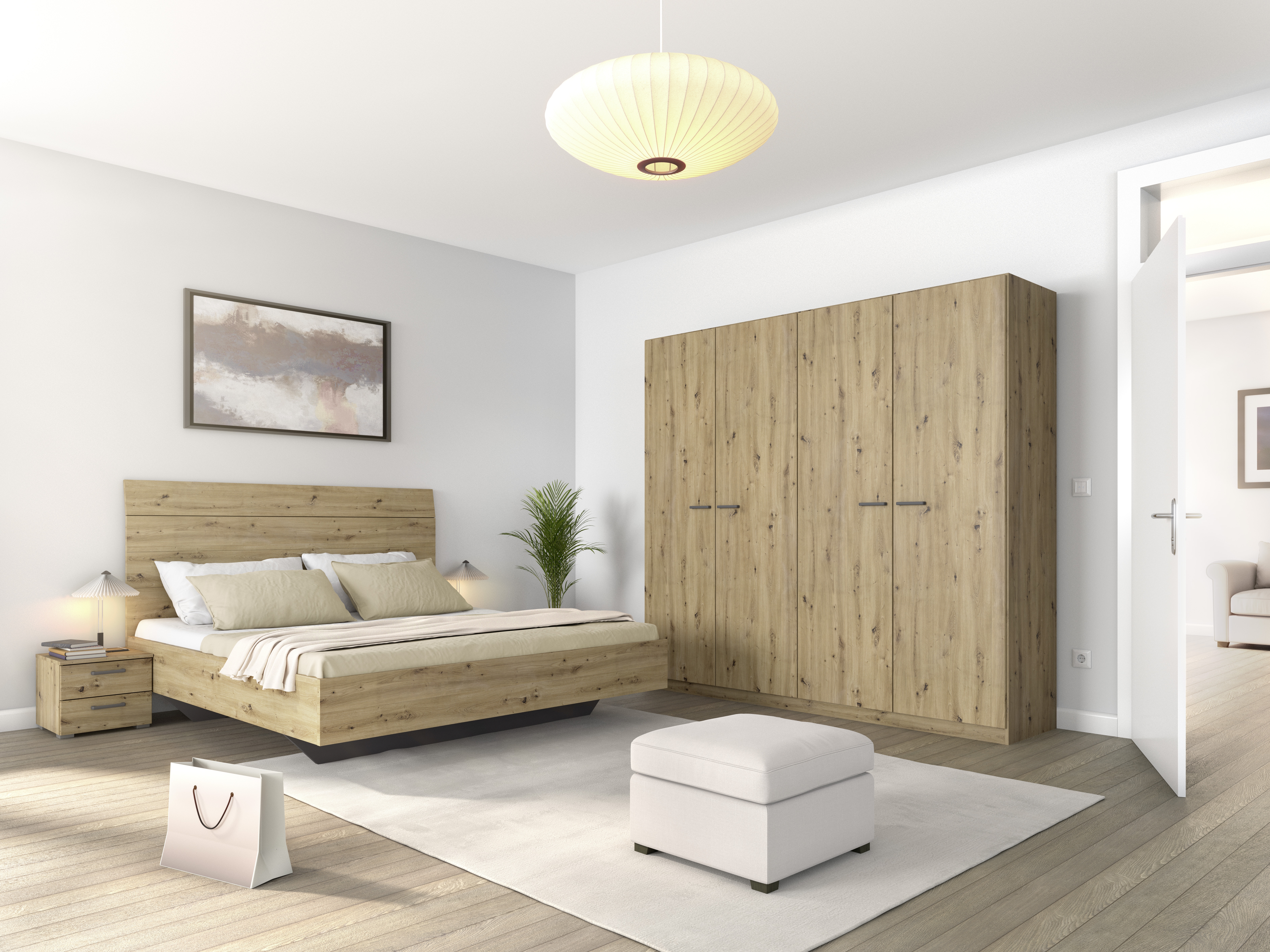 1 armoire à vêtements avec 4 portes, 2 tablettes et 2 barres de penderie