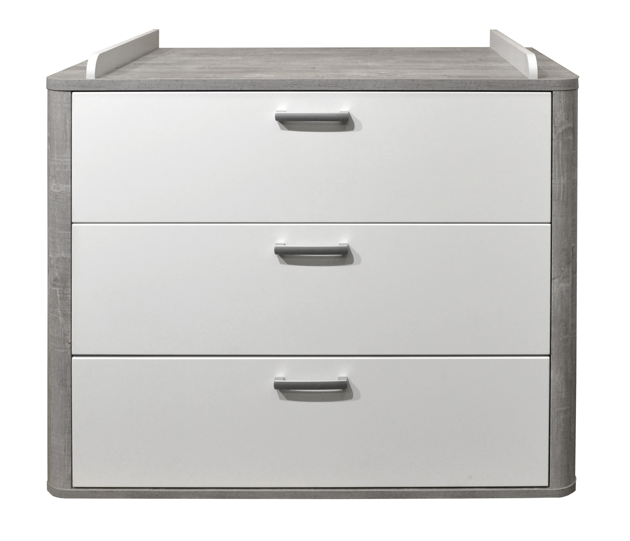 1 table à langer avec matelas à langer amovible, 2 barres de sécurité et 3 tiroirs