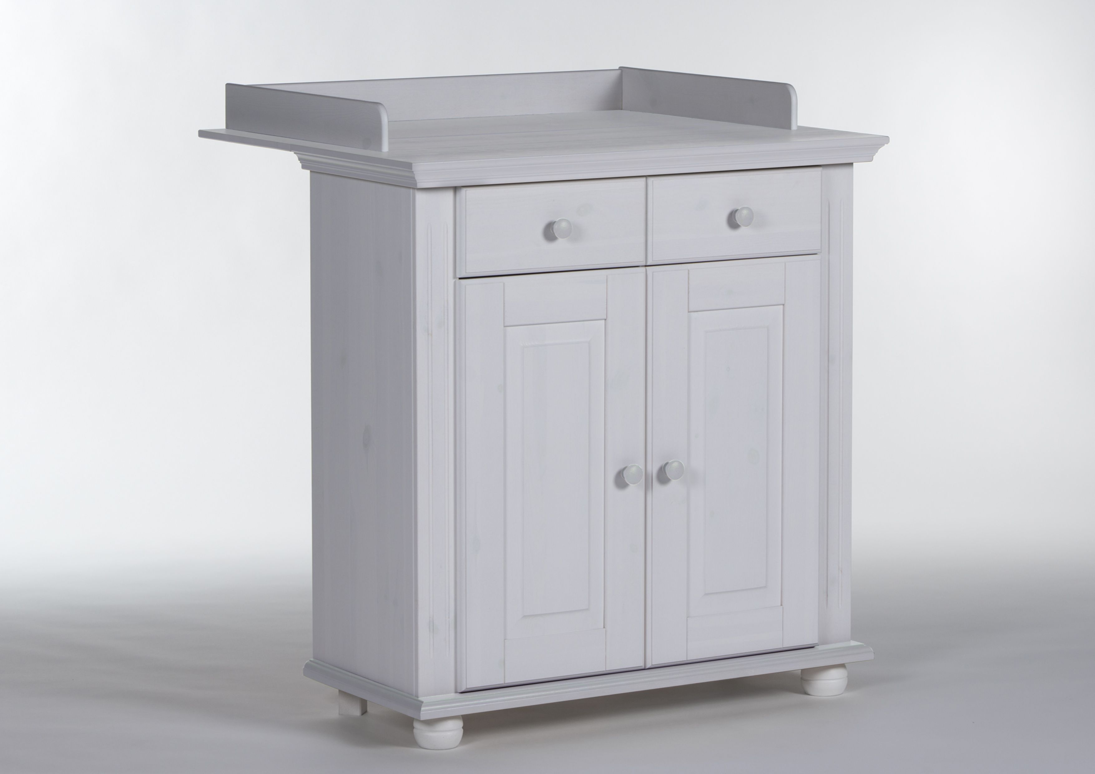 1 commode avec plan à langer, 2 tiroirs et 2 portes (derrière lesquelles se trouve 1 tablette)