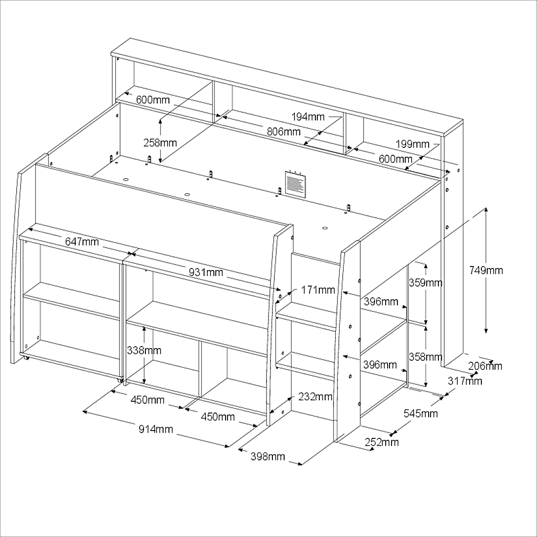 | Lit mezzanine avec bureau ouvert | 209 | 140 | 210 |