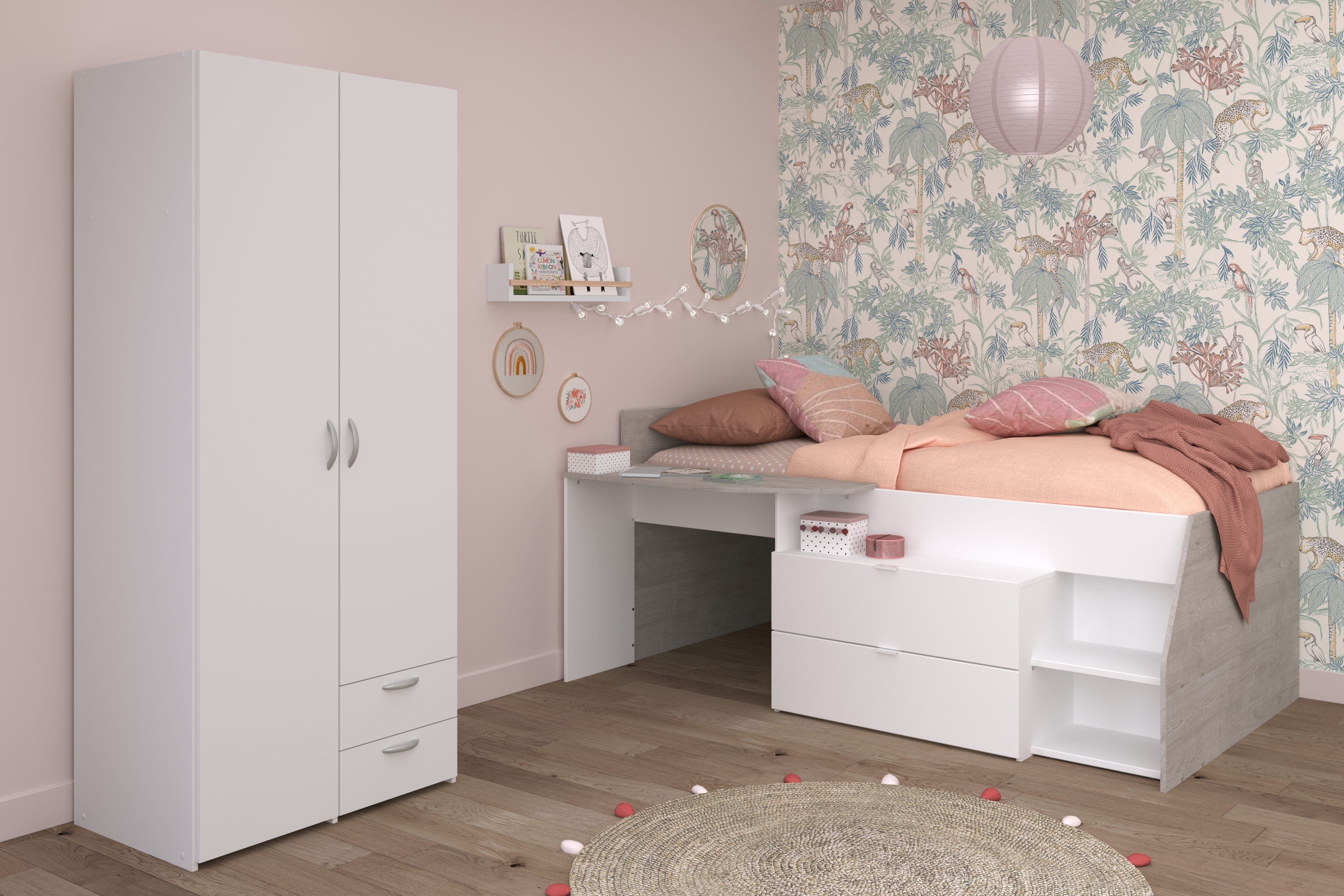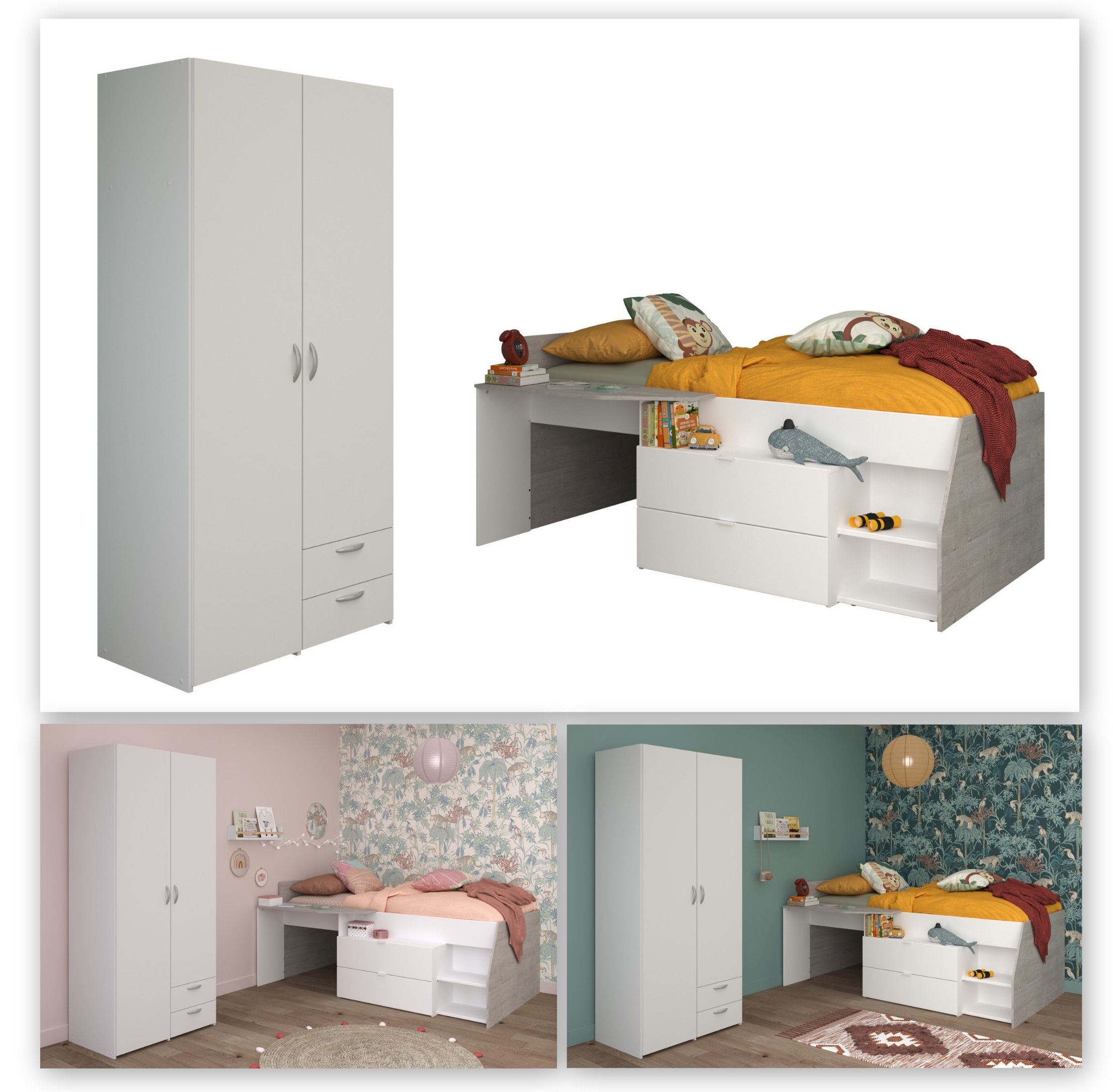 Caisson et façade : 23-ton blanc et décor bois Loft Grey