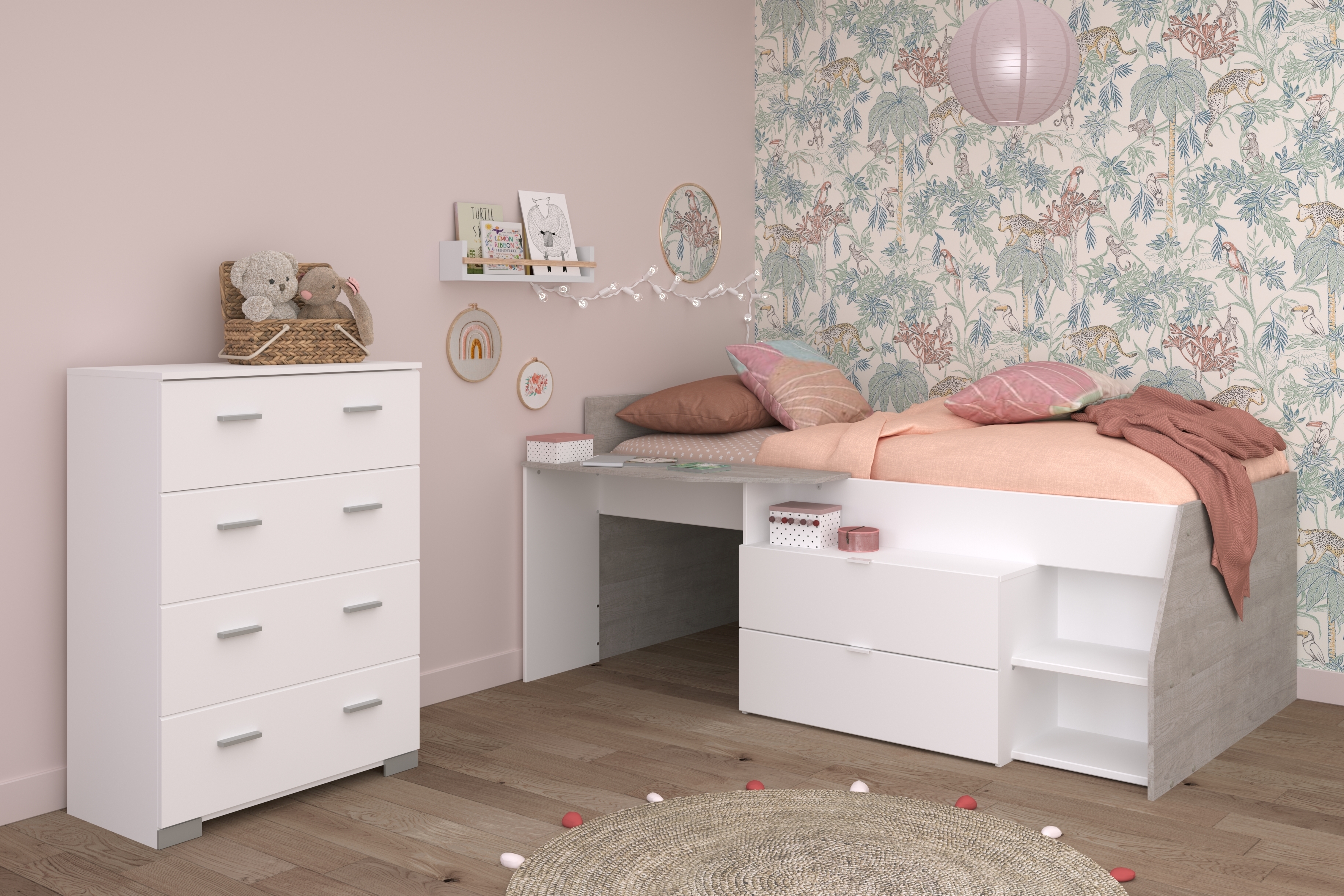 Caisson et façade : 23-ton blanc et décor bois Loft Grey