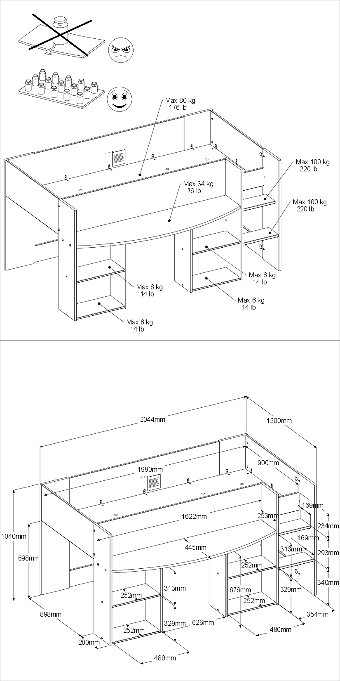 Espace de rangement supplémentaire en-dessous de la surface de couchage