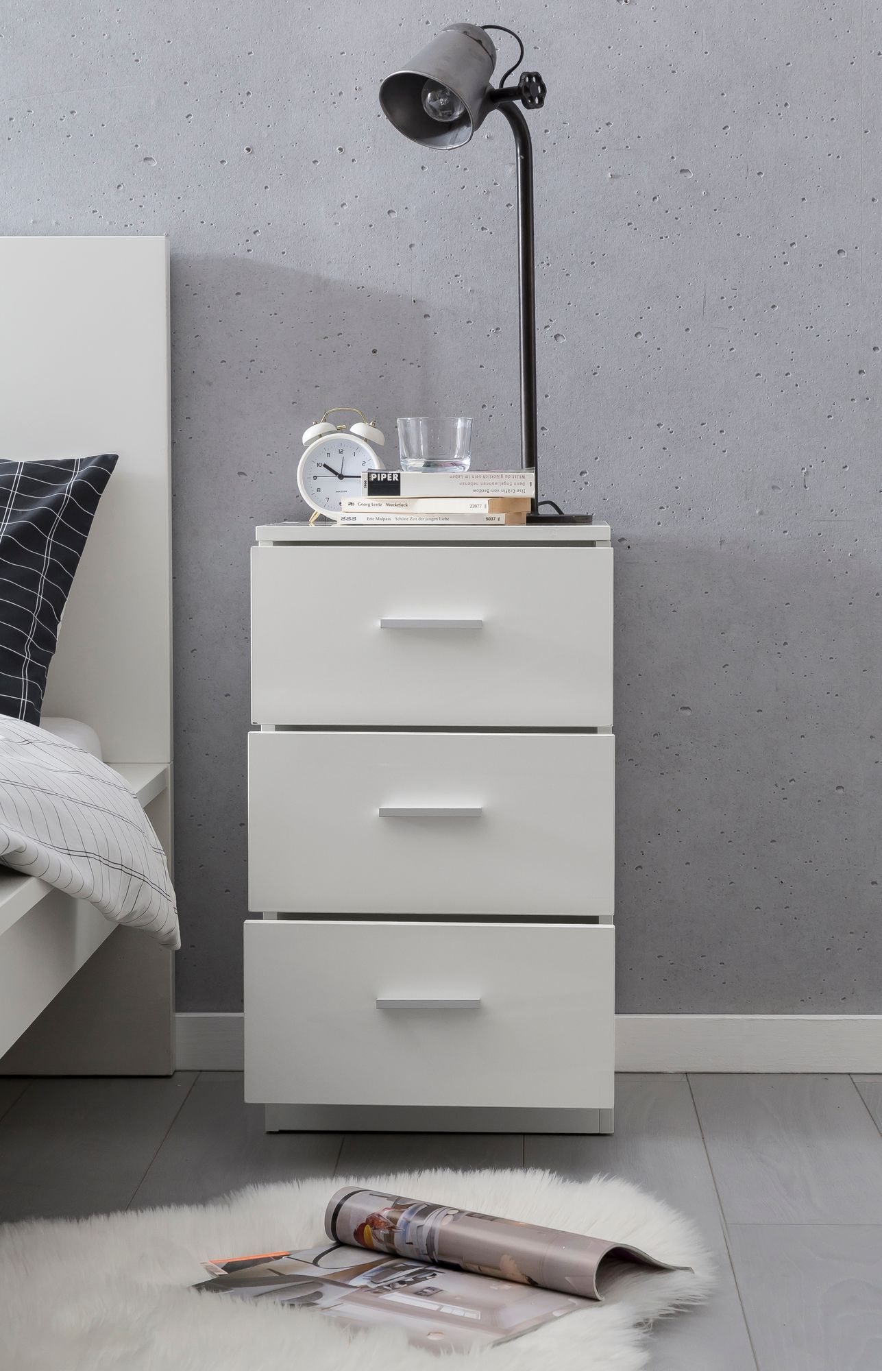 - Élégante petite table de nuit avec 3 tiroirs dans un aspect brillant