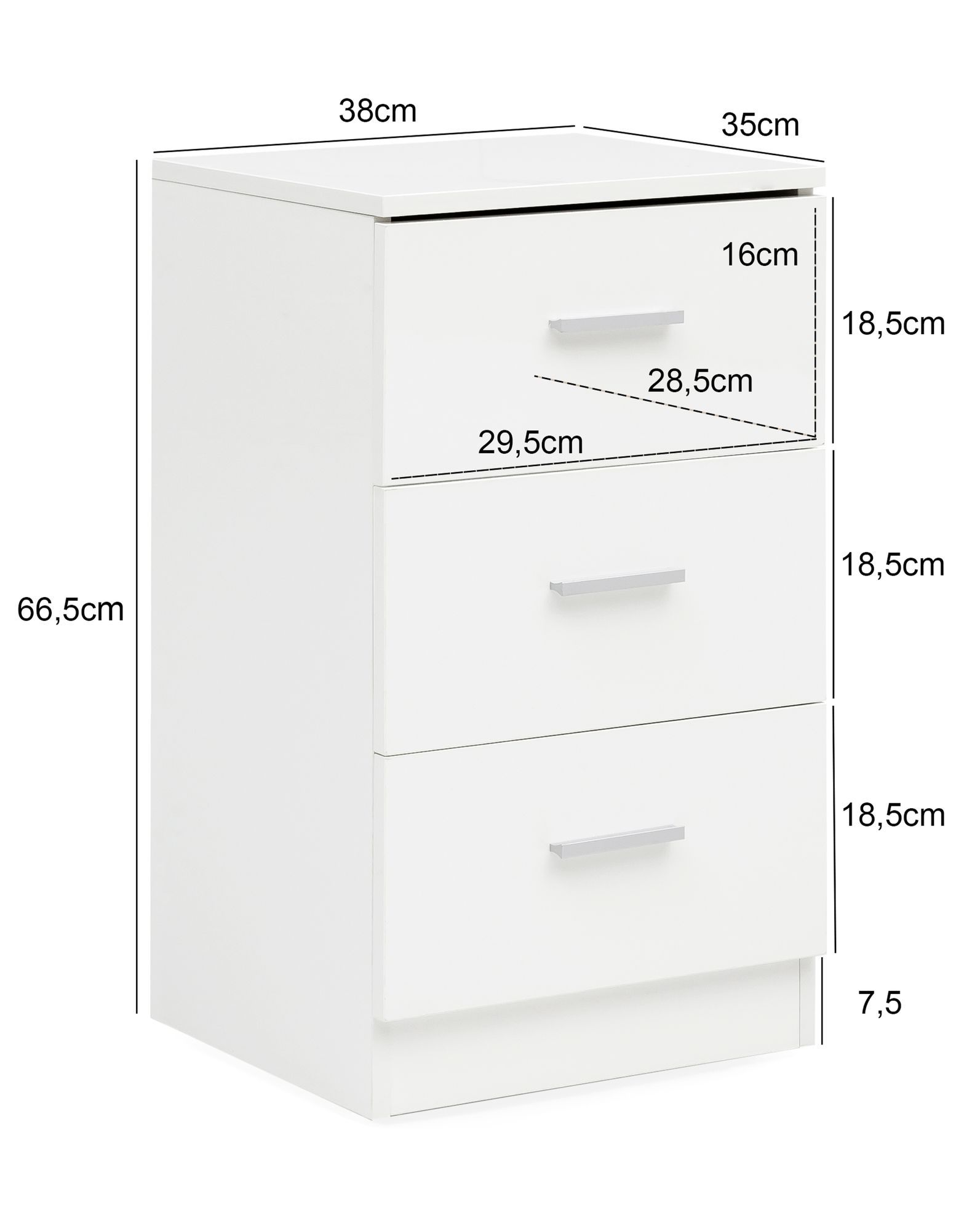 - TOUT SIMPLEMENT RAVISSANT ✔ Le fidèle petit compagnon du lit est la table de nuit. Celle-ci est généralement placée directement à côté du lit, au niveau de la tête de lit, pour accéder facilement au réveil et à la lampe de chevet. Les trois tiroirs spacieux de ce chevet offrent également un bel espace de rangement pour les accessoires tels que les mouchoirs, livres, magazines, etc… De plus, l'aspect blanc ultra brillant confère à cette petite table charme et élégance. Elle vous permettra de faire de votre chambre à coucher une oasis de bien-être absolument parfaite !