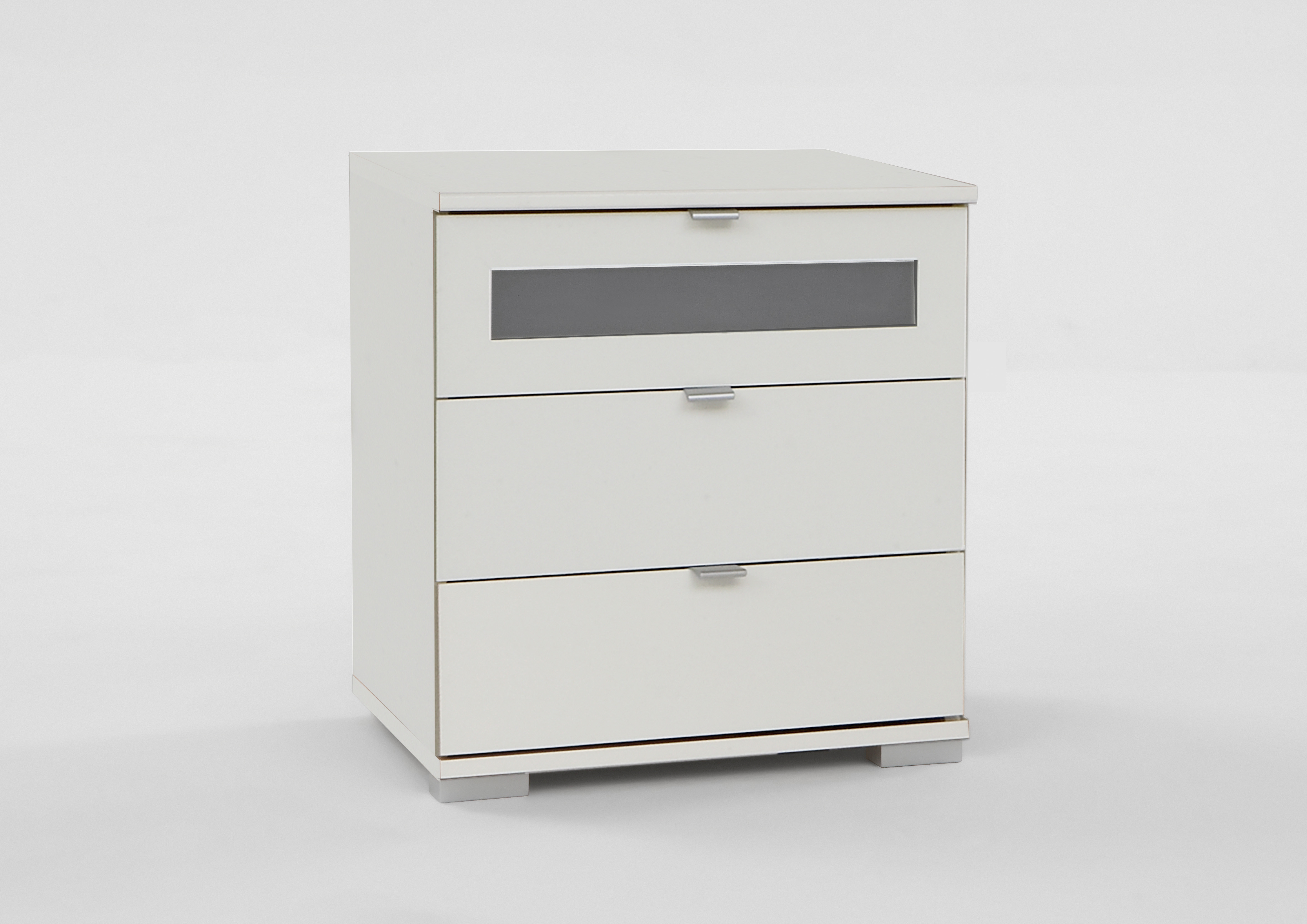 Façade et caisson : ton blanc avec panneau en verre dépoli dans la façade du tiroir supérieur