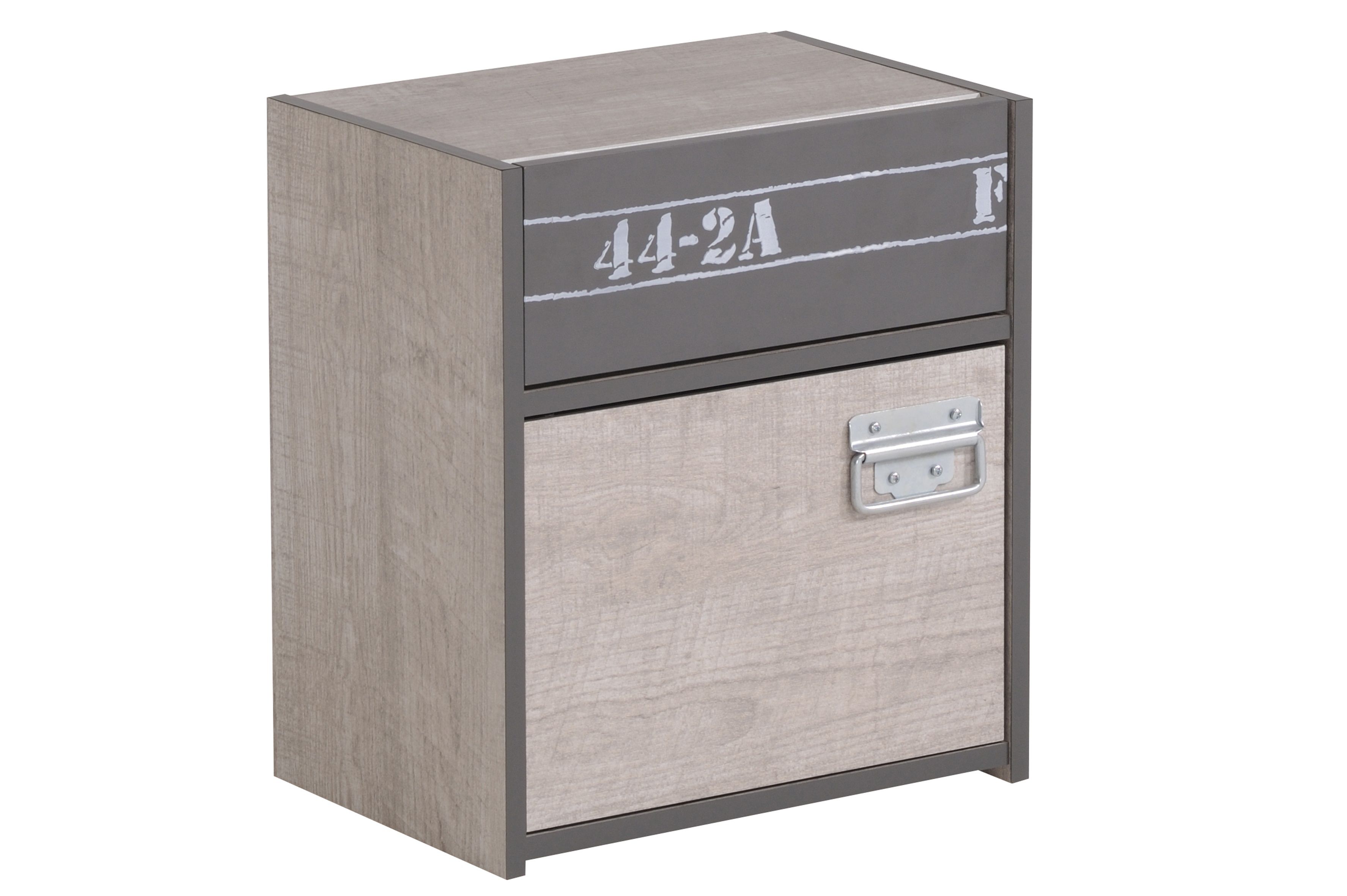 Voici un chevet cool et tendance dans un style industriel avec des possibilités de rangement pratiques dans un tiroir et derrière une porte. Le motif imprimé attirera tous les regards.