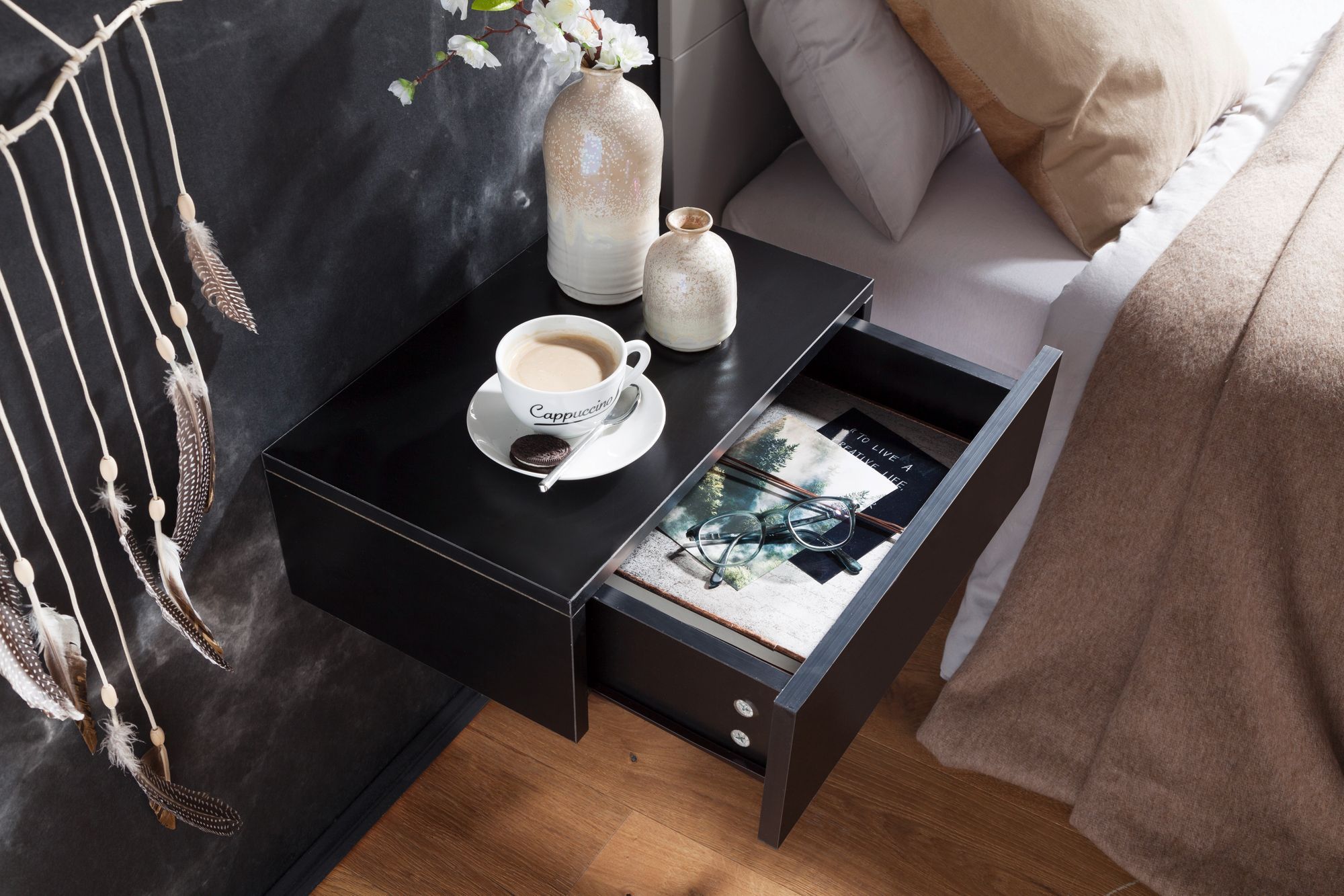 - PERSONNALISÉ ✔ Être allongé dans un lit douillet, lire un livre ou surfer un peu sur Internet puis la lumière s’éteint. Mais où mettre le livre, le téléphone portable, etc. ? Notre chevet vous donne la réponse. En effet, grâce à son espace de rangement spacieux et à son tiroir, vous disposez de suffisamment de place pour ranger ces accessoires. En parlant de rangement : c’est vous qui déterminez la hauteur de la table de chevet ! Il suffit de fixer le chevet au mur à la hauteur souhaitée et votre chambre à coucher est prête !
