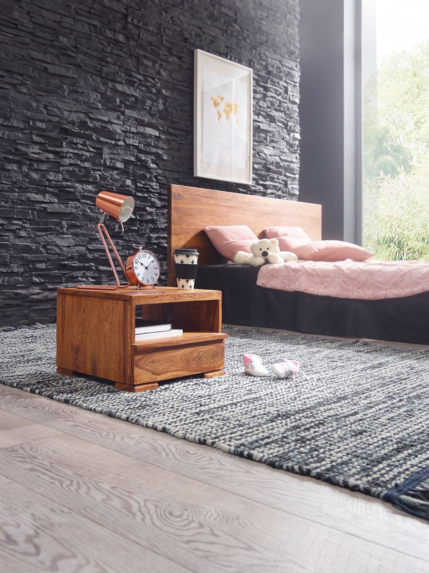 - Un chevet avec tiroir en bois de sheeham massif - Un rangement stylé près du lit dans la chambre d'ado ou la chambre parentale