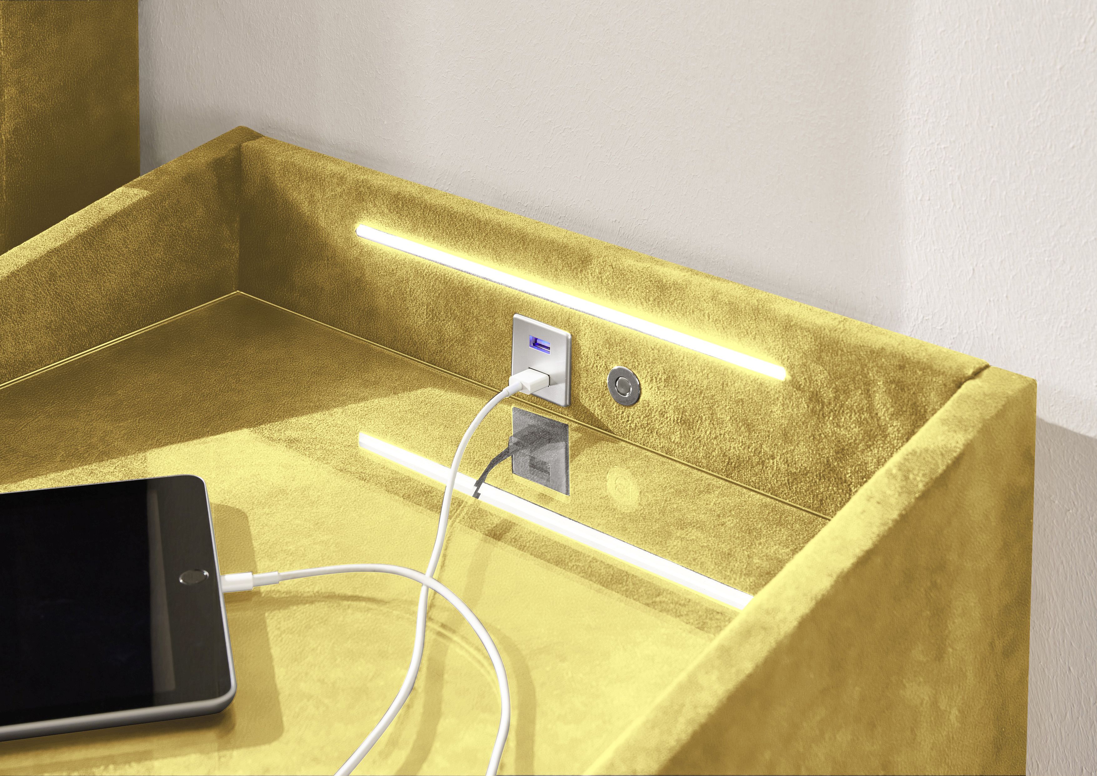 Ausstattung Kommoden Phono Büro Regal: | Plateau en verre, Tiroirs, avec port USB, incl. éclairage | ||