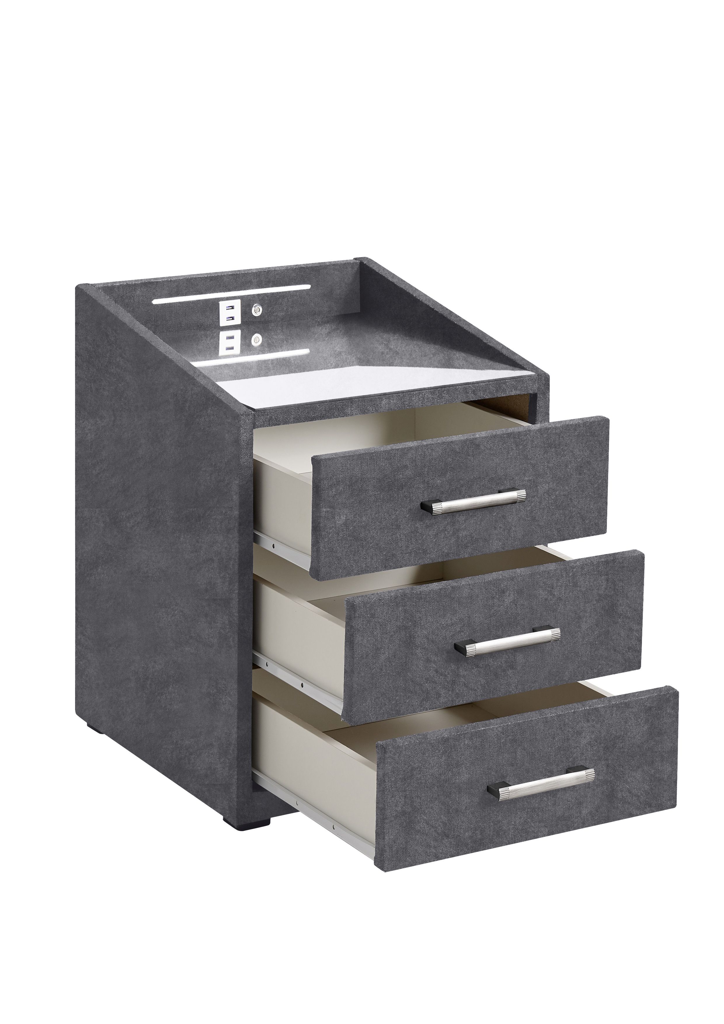 | Ausstattung Kommoden Phono Büro Regal: | Plateau en verre, Tiroirs, avec port USB, incl. éclairage | ||