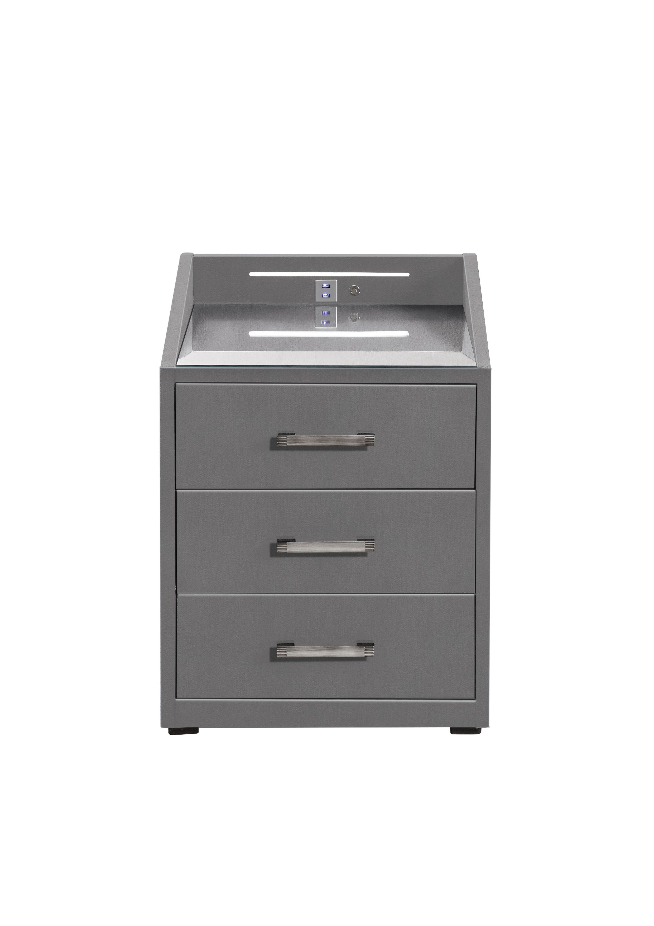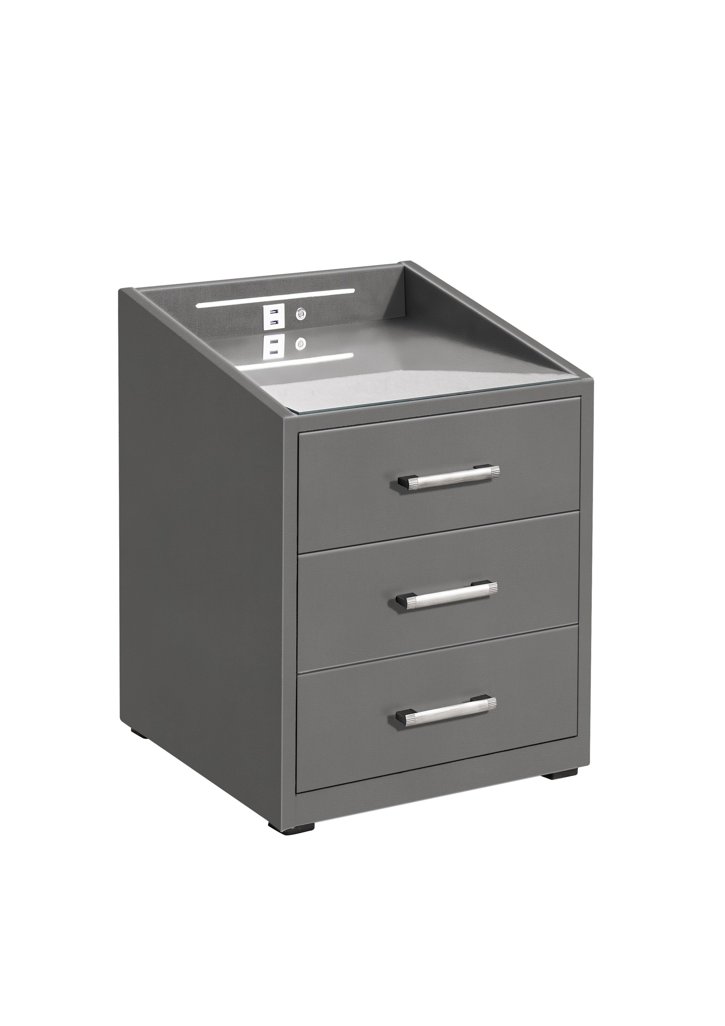 | Ausstattung Kommoden Phono Büro Regal: | Plateau en verre, Tiroirs, avec port USB, incl. éclairage | ||