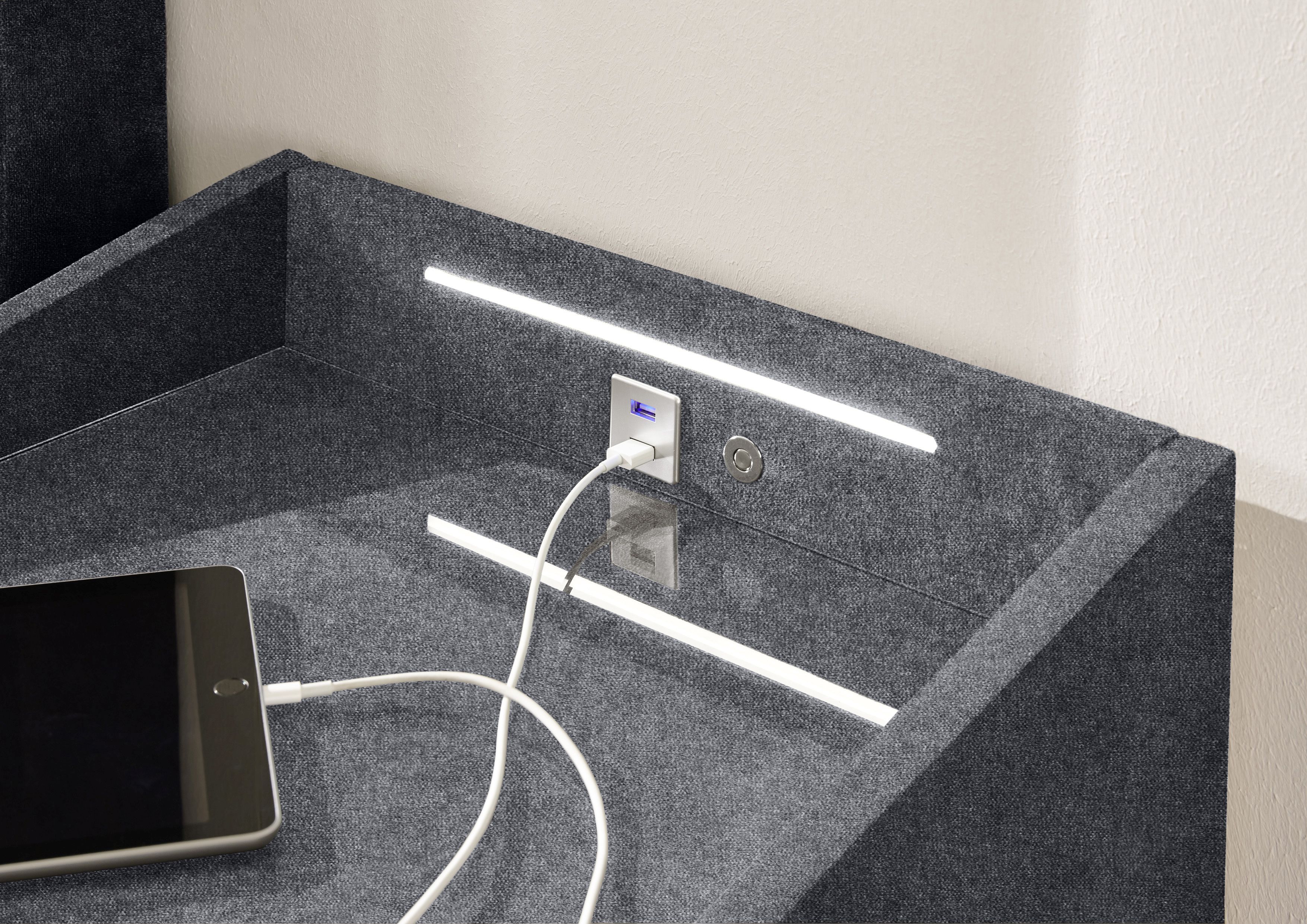 | Ausstattung Kommoden Phono Büro Regal: | Plateau en verre, Tiroirs, avec port USB, incl. éclairage | ||