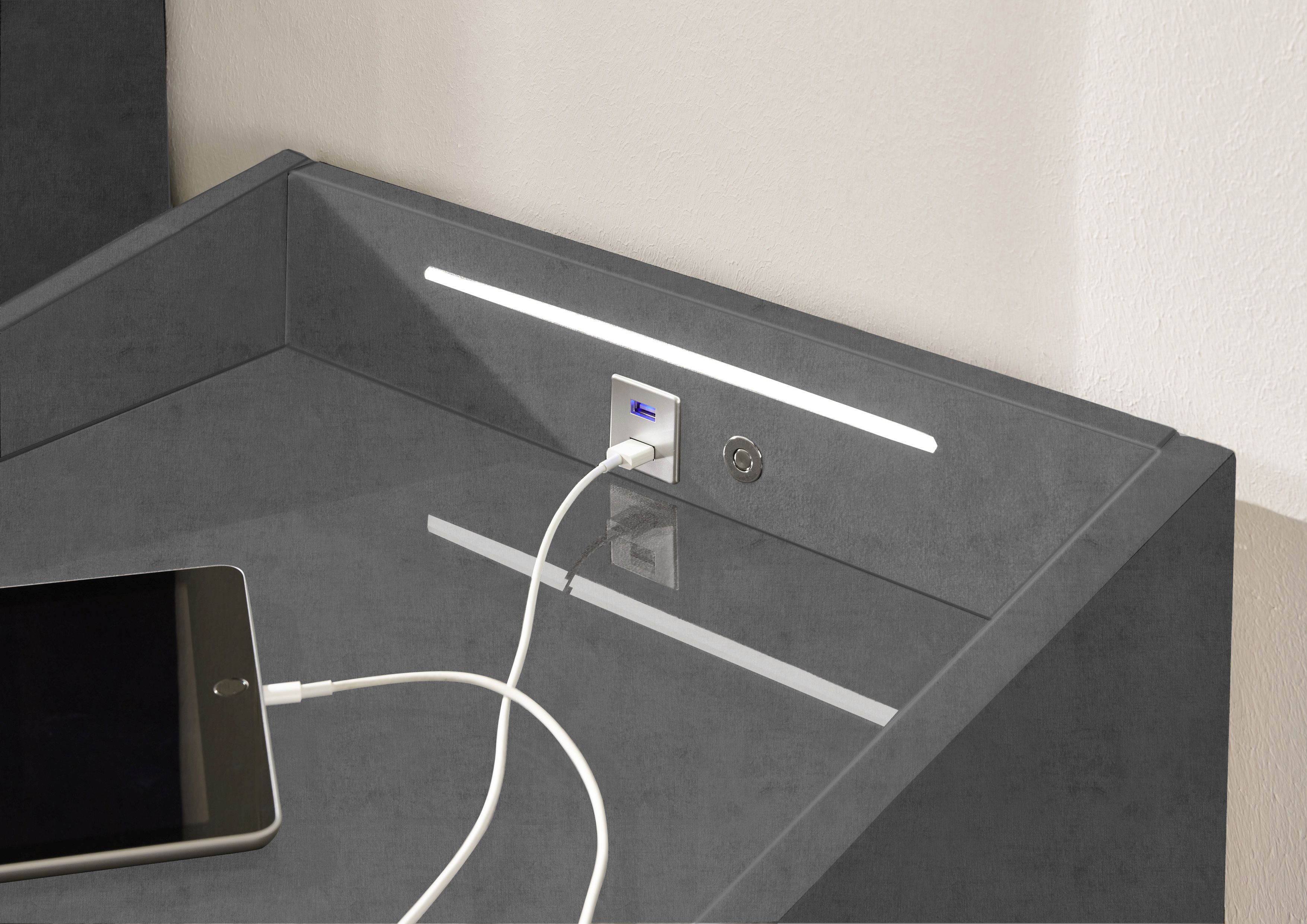 | Ausstattung Kommoden Phono Büro Regal: | Plateau en verre, Tiroirs, avec port USB, incl. éclairage | ||