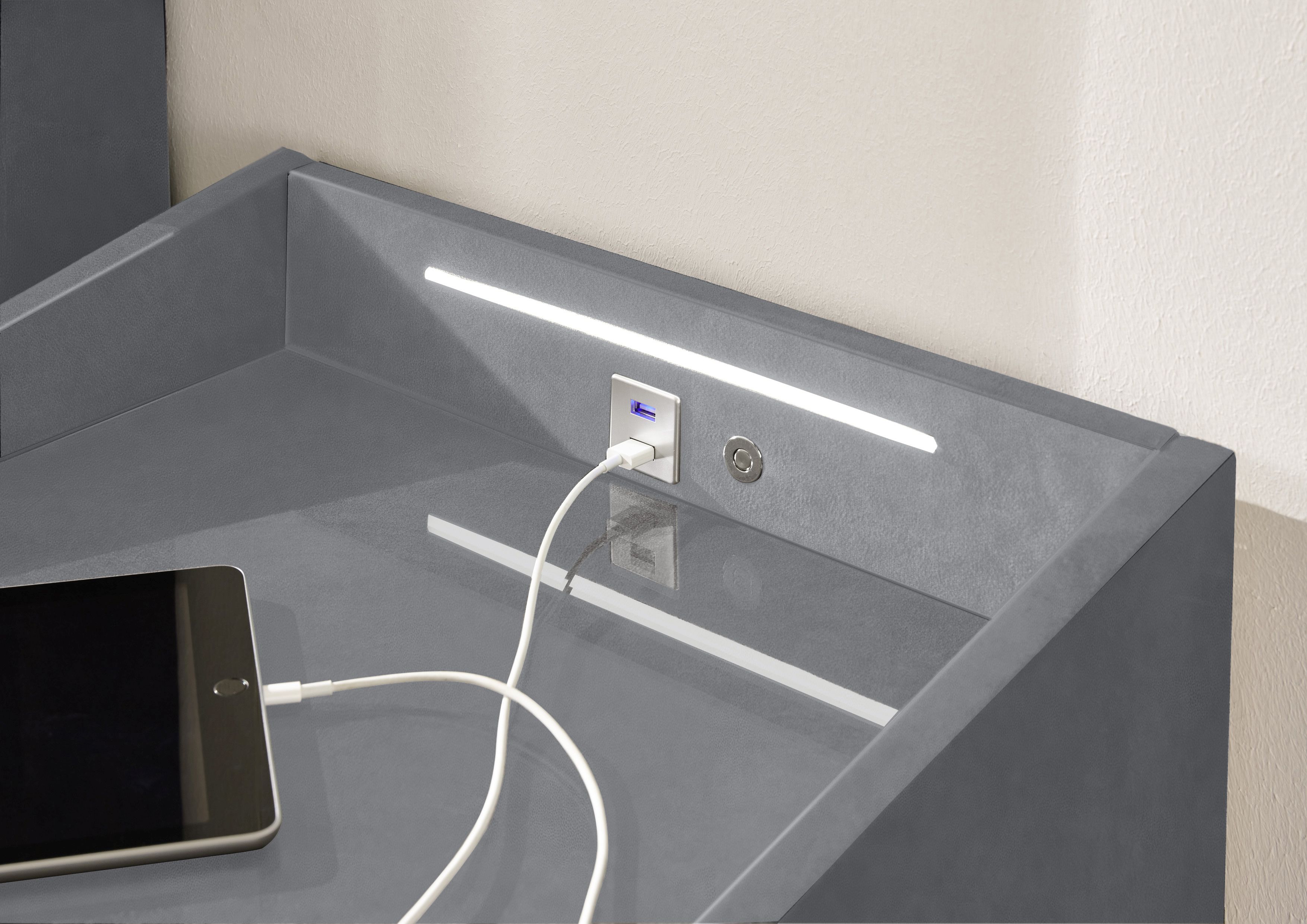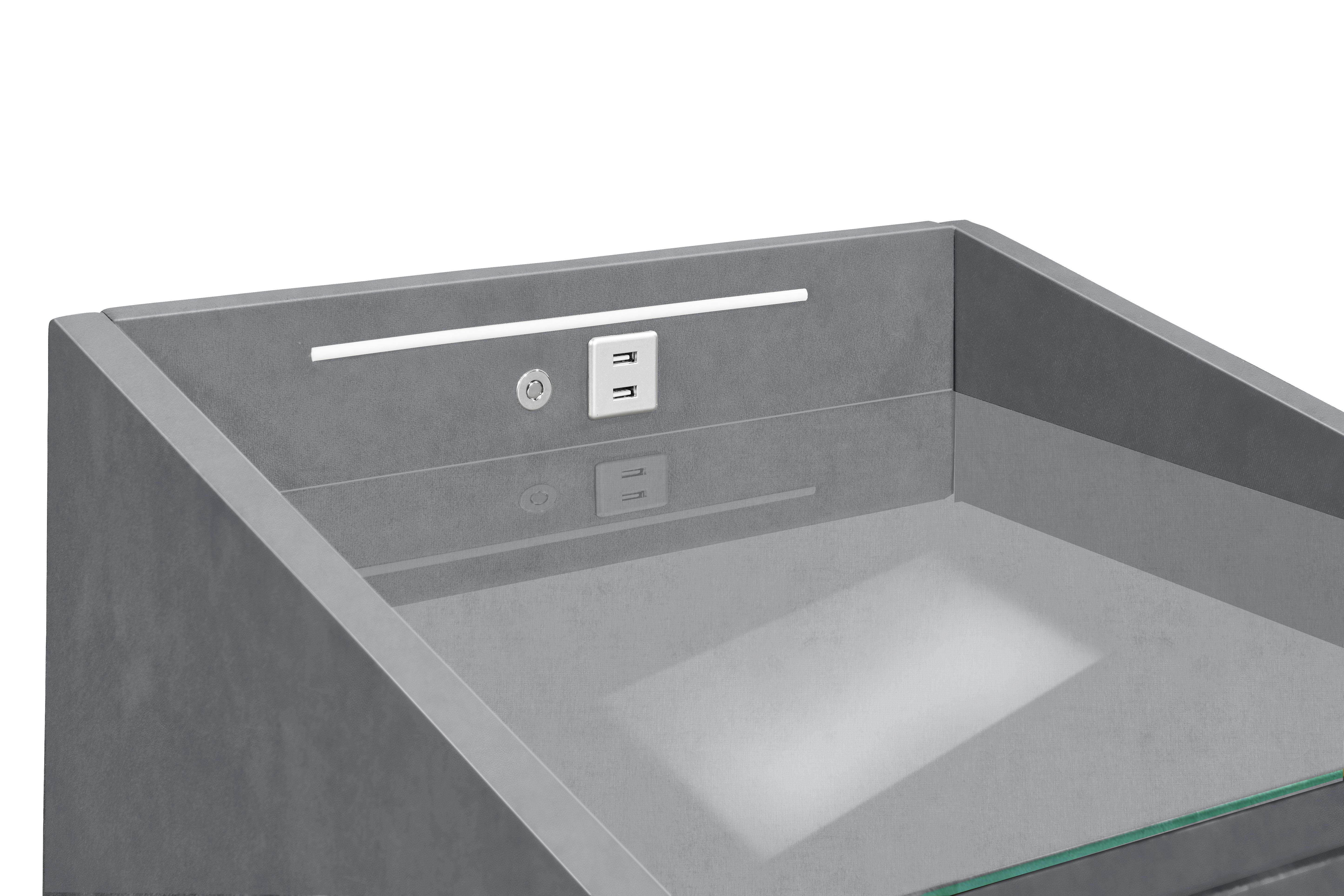 Ausstattung Kommoden Phono Büro Regal: | Plateau en verre, Tiroirs, avec port USB, incl. éclairage |
