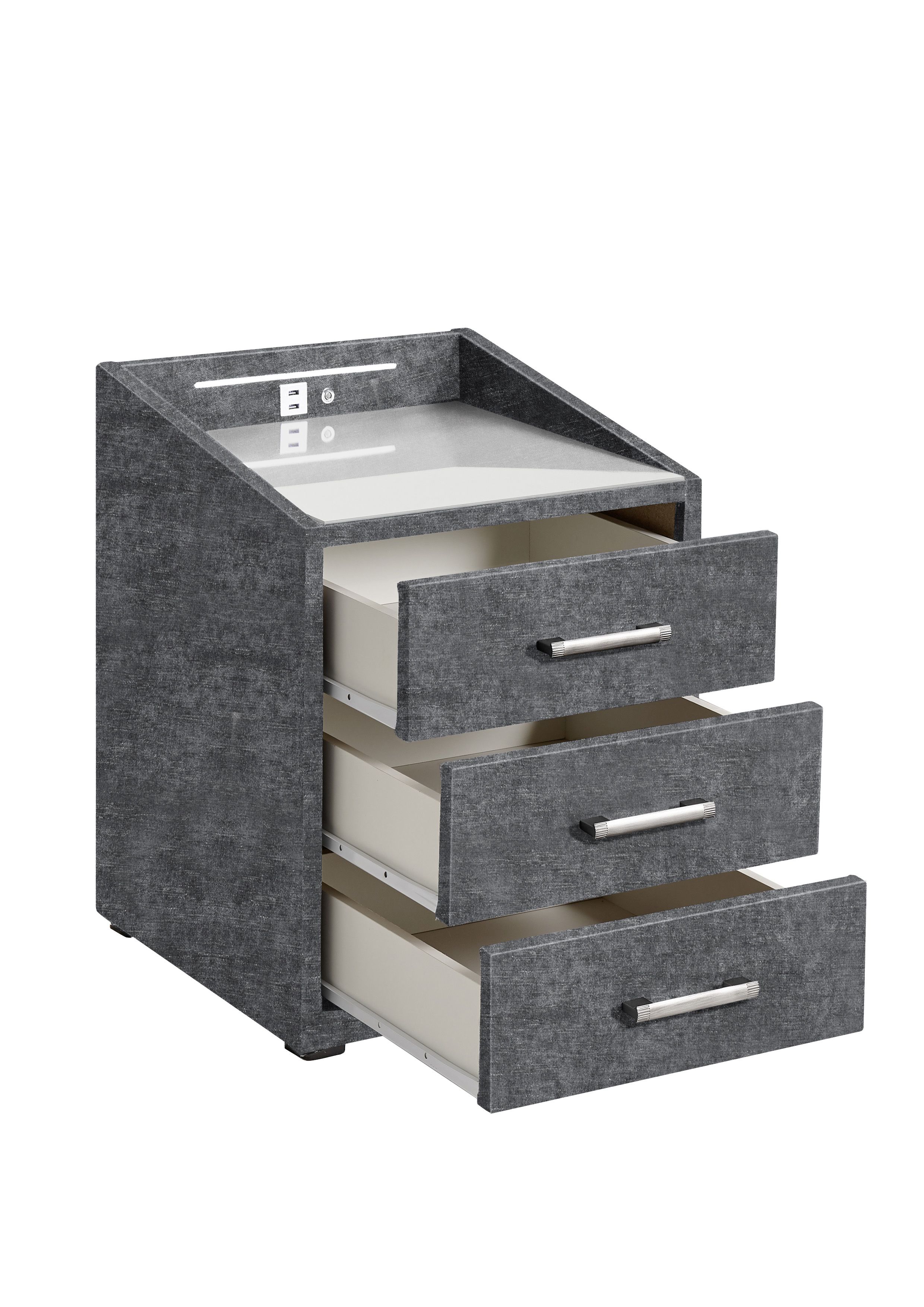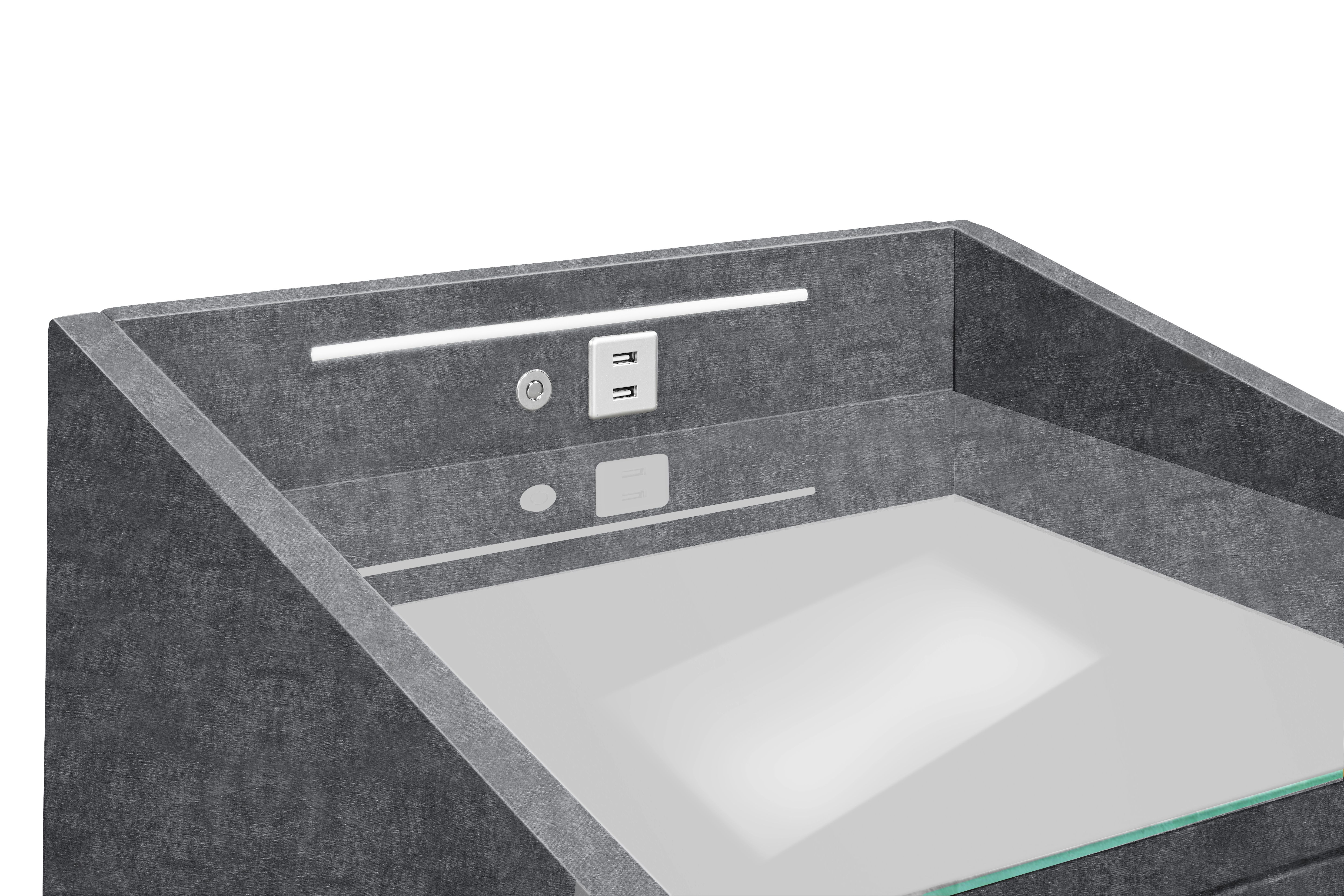 | Ausstattung Kommoden Phono Büro Regal: | Plateau en verre, Tiroirs, avec port USB, incl. éclairage | ||