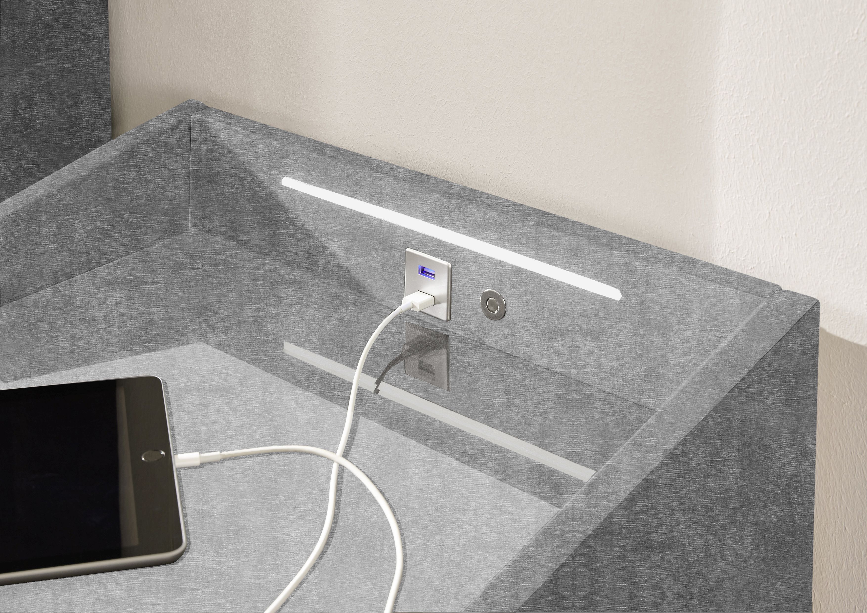 | Ausstattung Kommoden Phono Büro Regal: | Plateau en verre, Tiroirs, avec port USB, incl. éclairage | ||