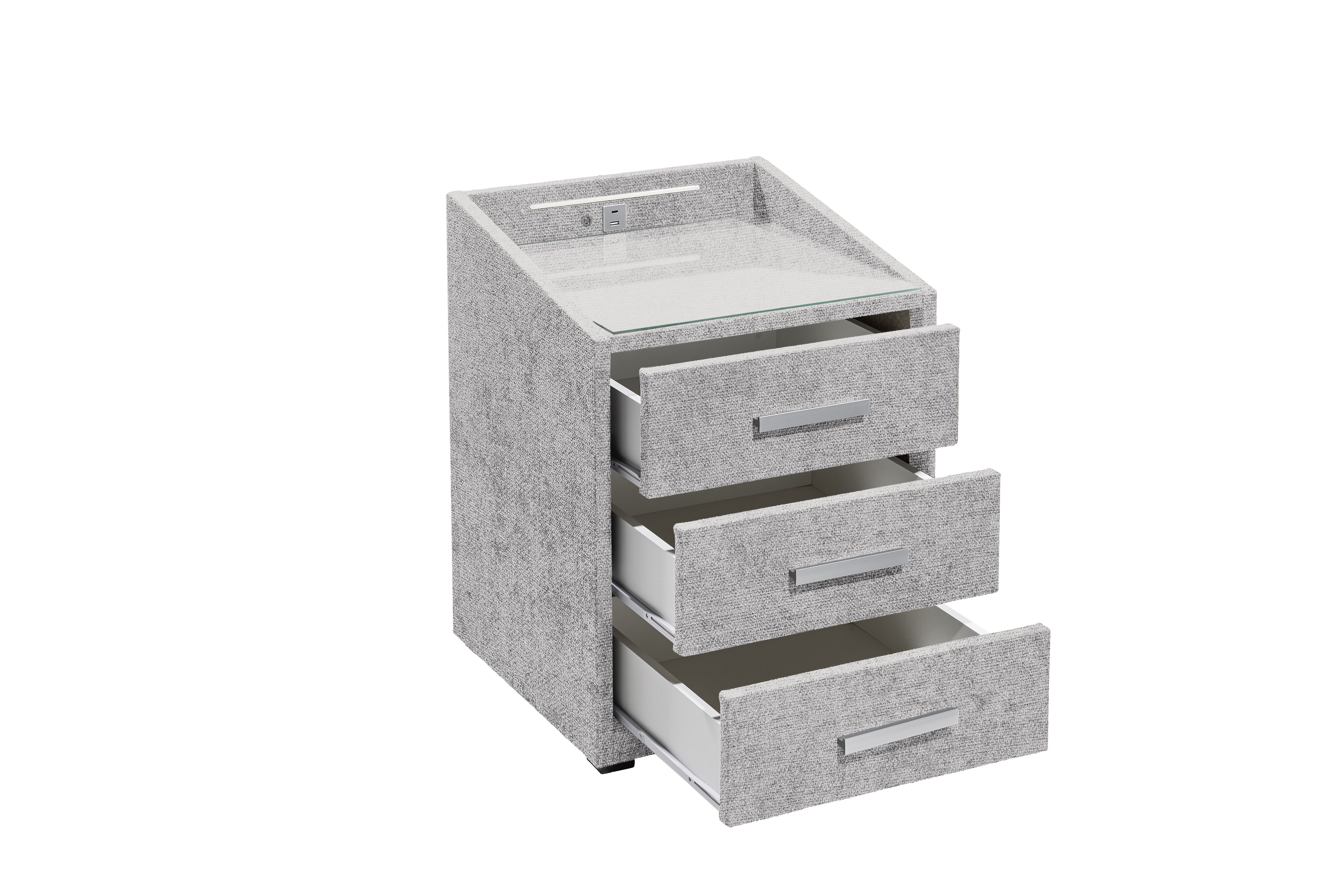 | Ausstattung Kommoden Phono Büro Regal: | Plateau en verre, Tiroirs, avec port USB, incl. éclairage | ||