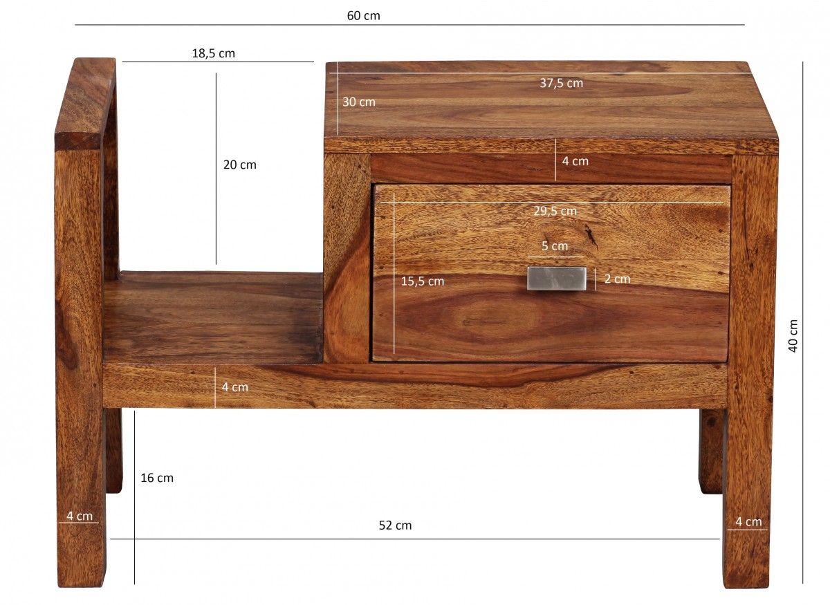 - Un petite commode avec tiroir en bois de sheeham massif - Un rangement stylé près du lit dans la chambre d'ado ou la chambre parentale