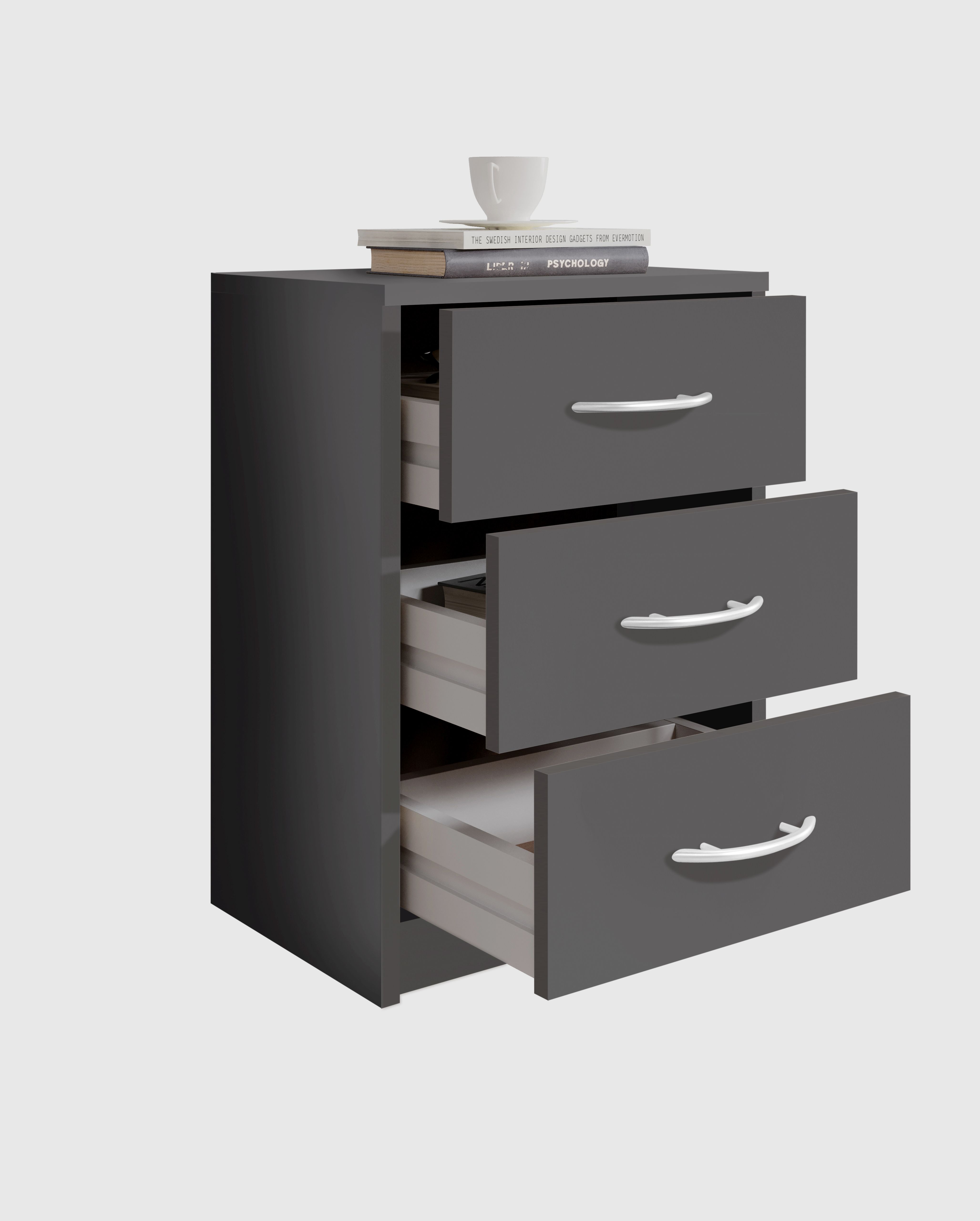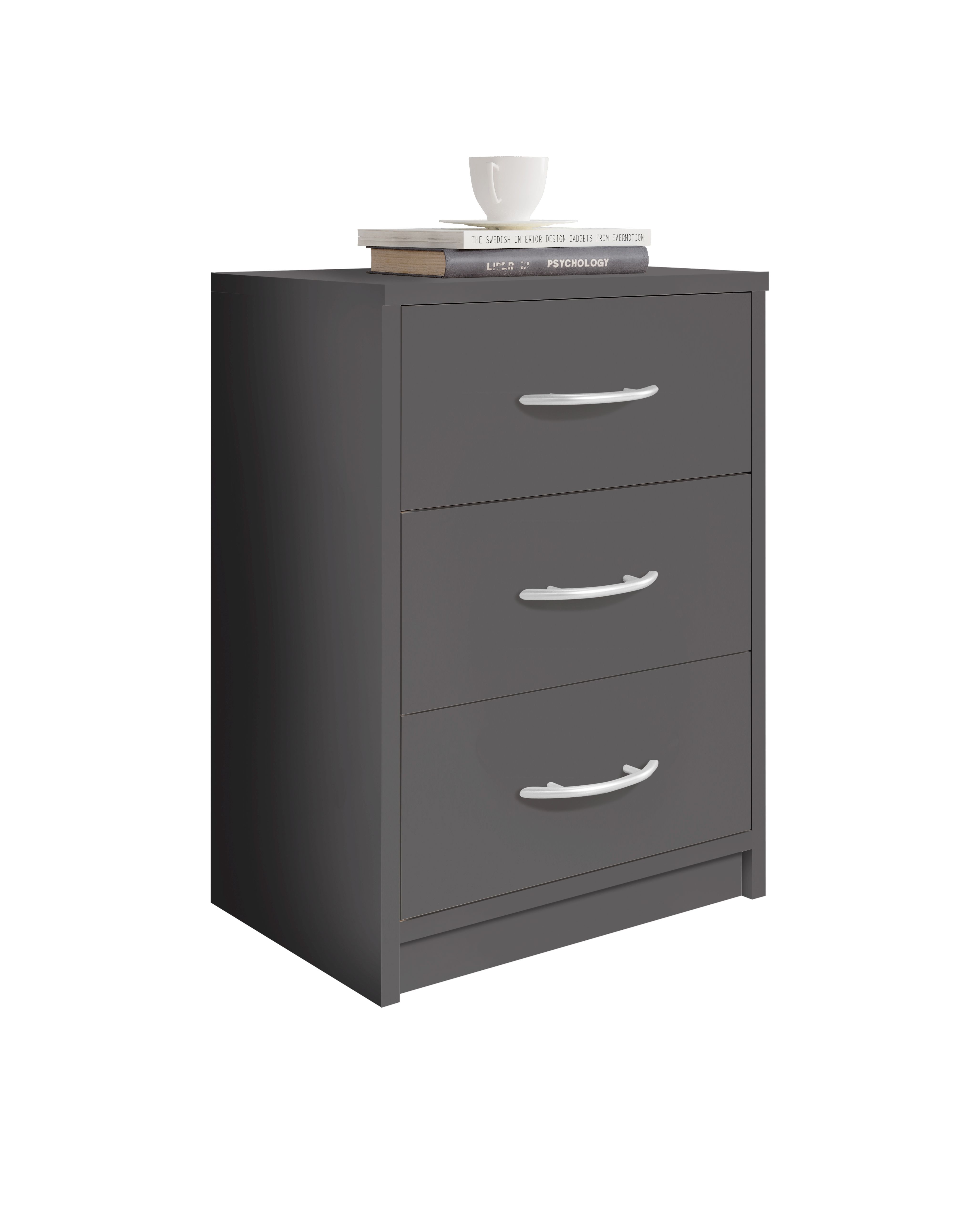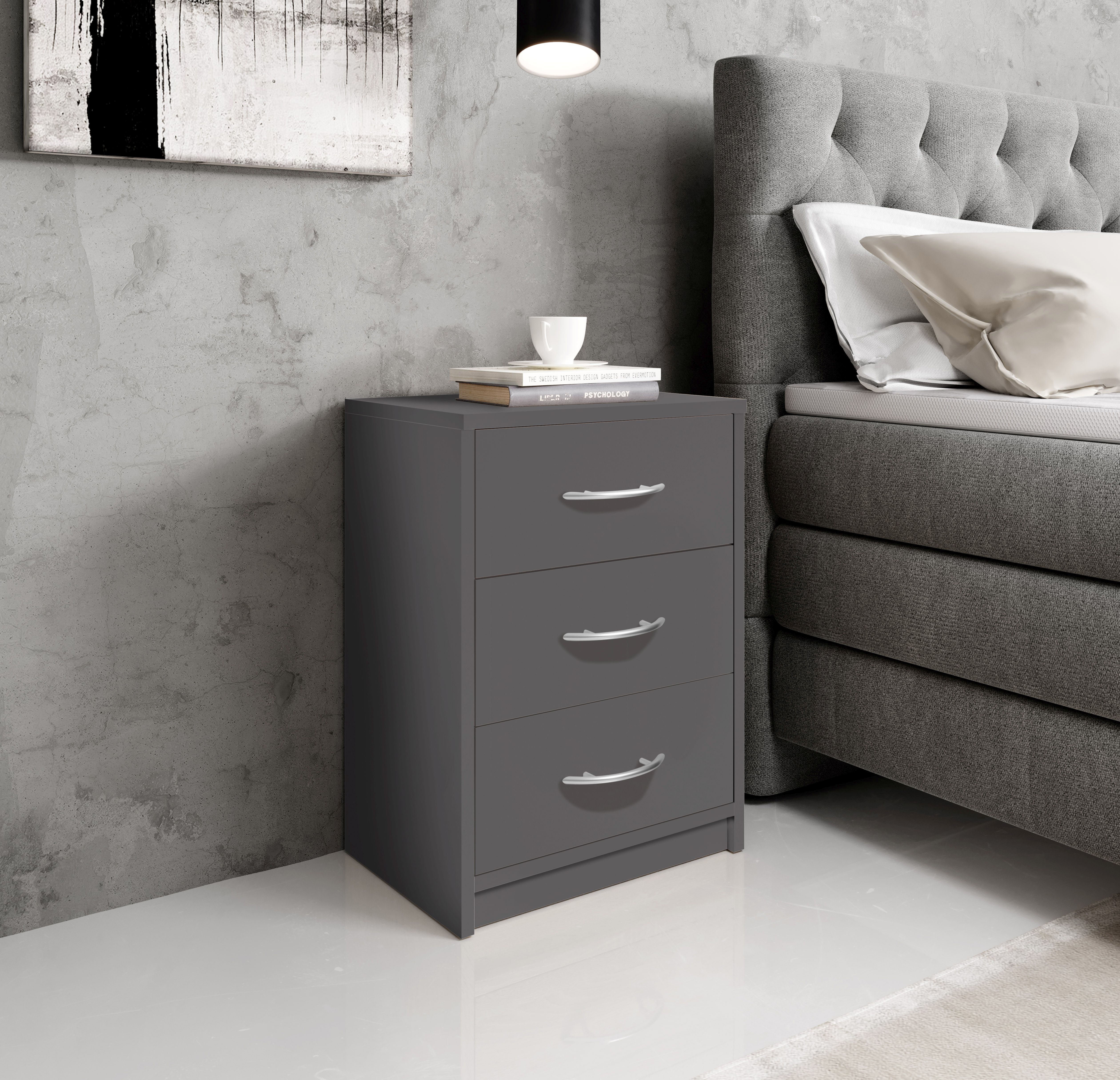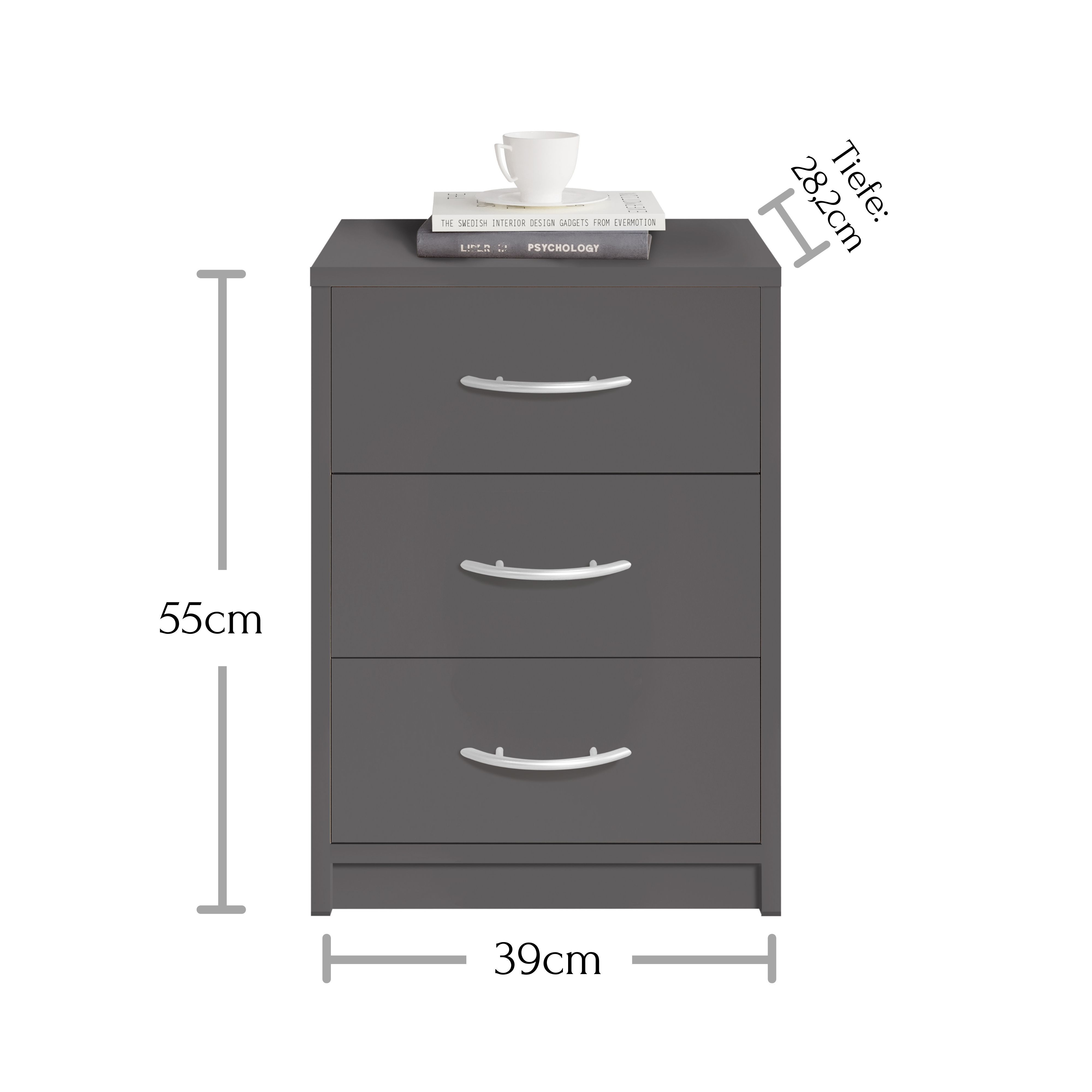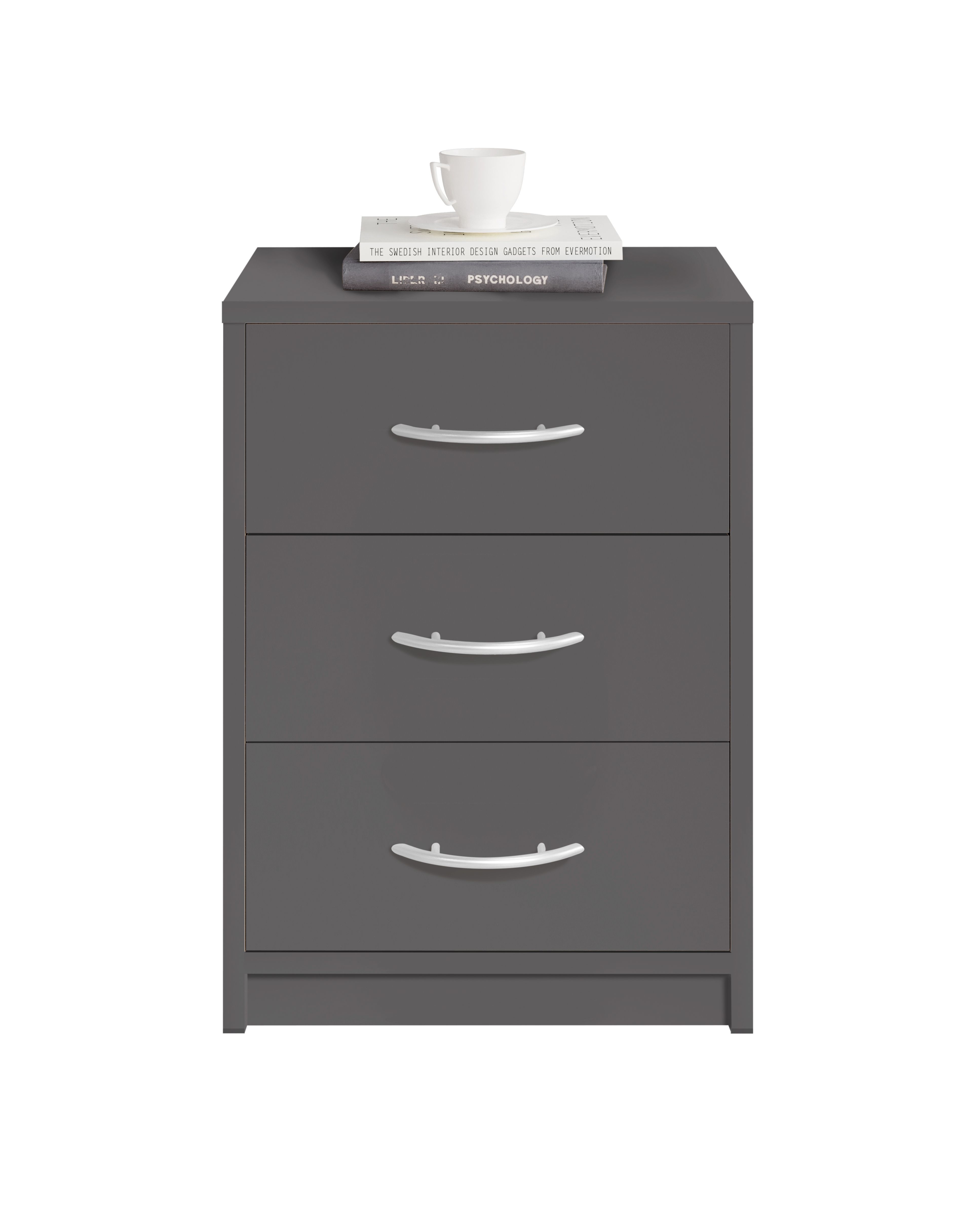 Chevet ton graphite PEPE - Table de nuit discrète avec trois tiroirs, assortie à tout type de lit & chambre à coucher - 39 x 54 x 28 cm (L/H/P)