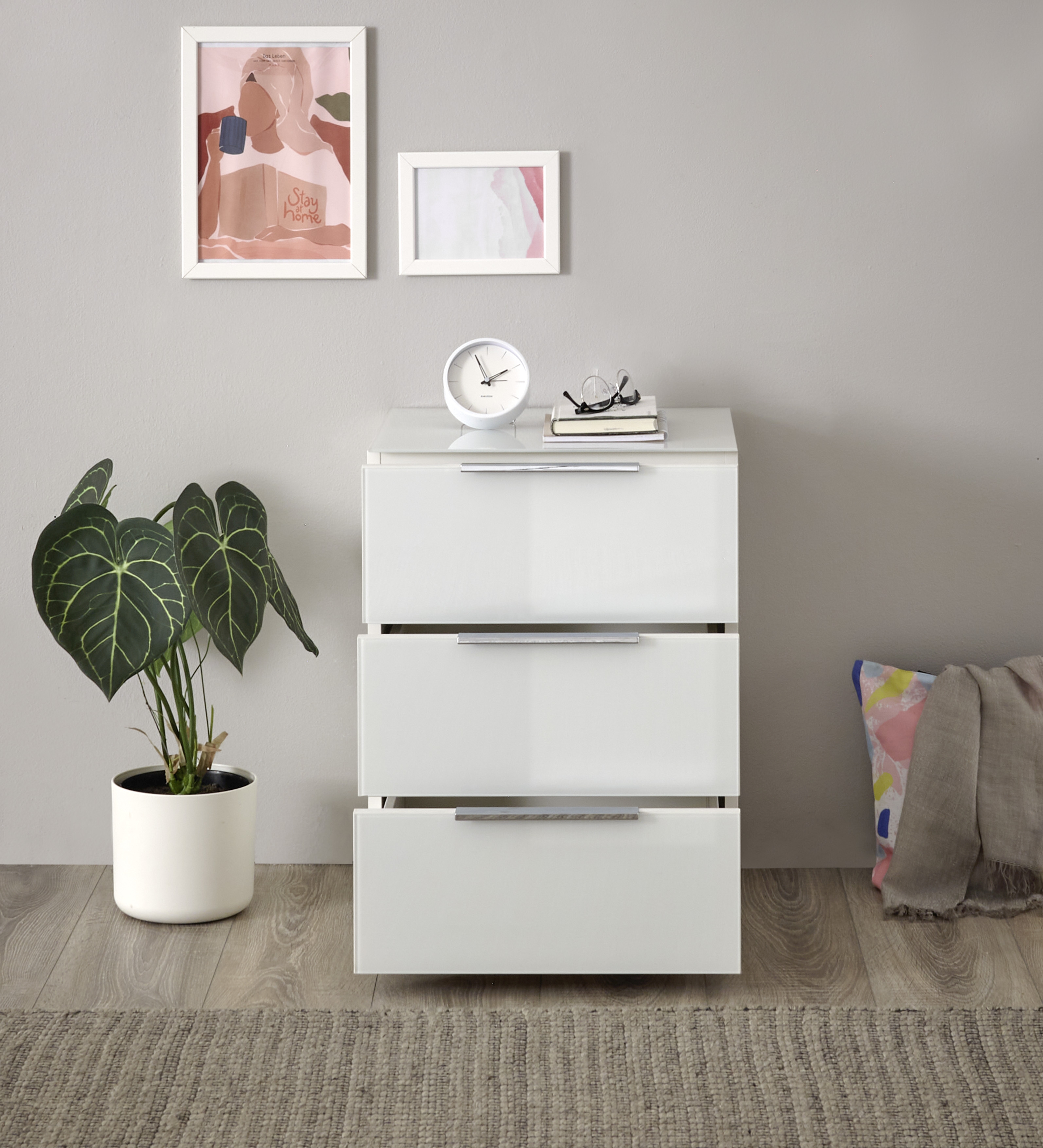 3 tiroirs avec fermeture amortie et coulisses sous tiroirs