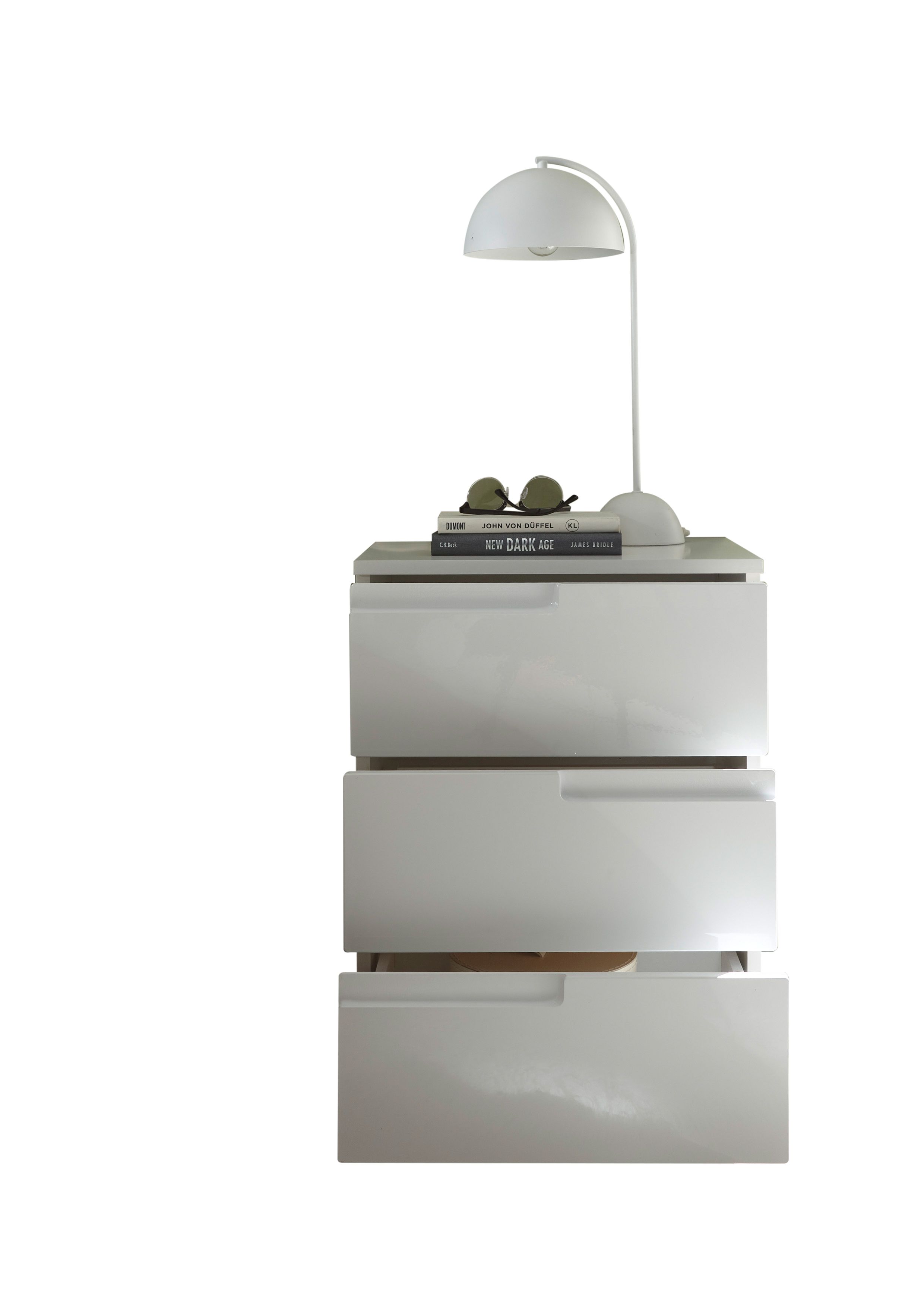 Façade : MDF (panneaux de fibres de bois de densité moyenne) ton blanc ultra brillant thermoformé