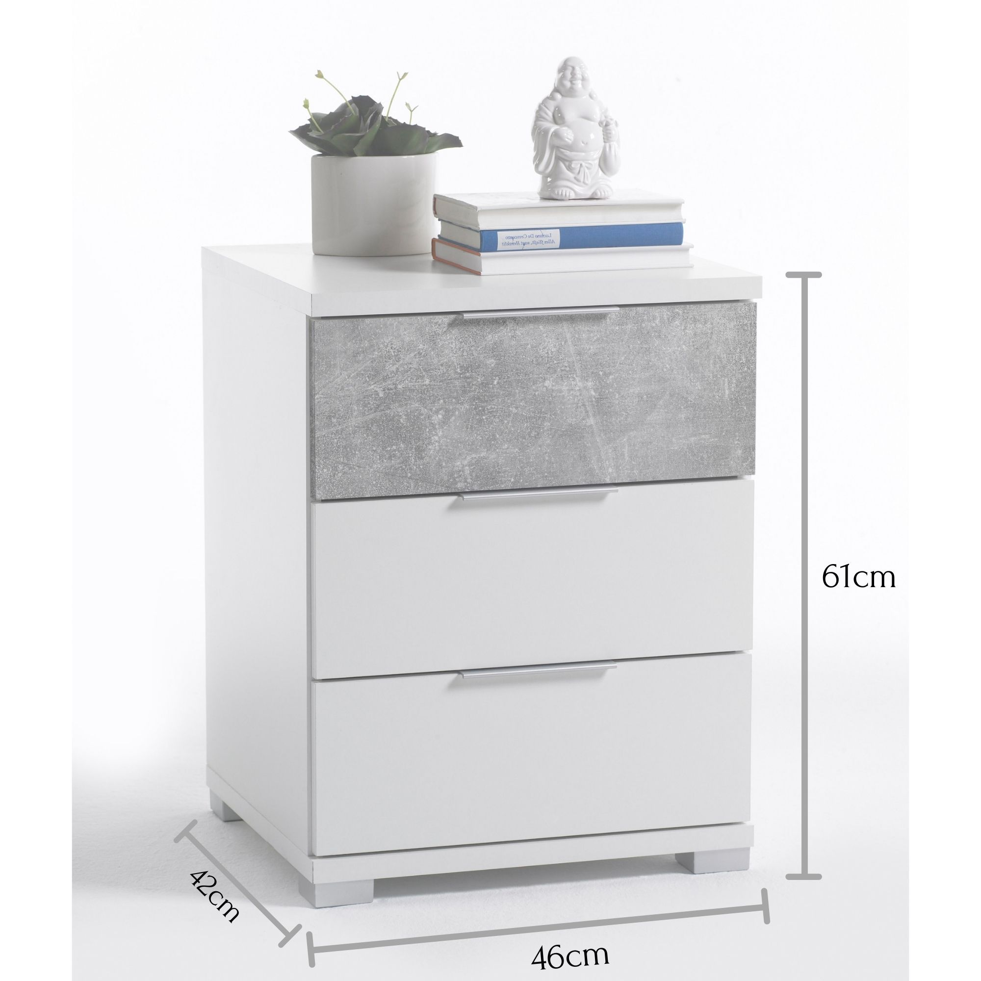 Façade et caisson : ton blanc avec une façade de tiroir aspect béton