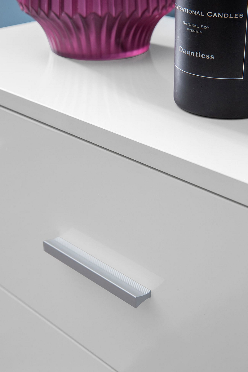 - COMPOSITION ✔ Le petit meuble blanc est fabriqué en panneaux de particules et est revêtu de résine mélamine. Les poignées sont en aluminium.