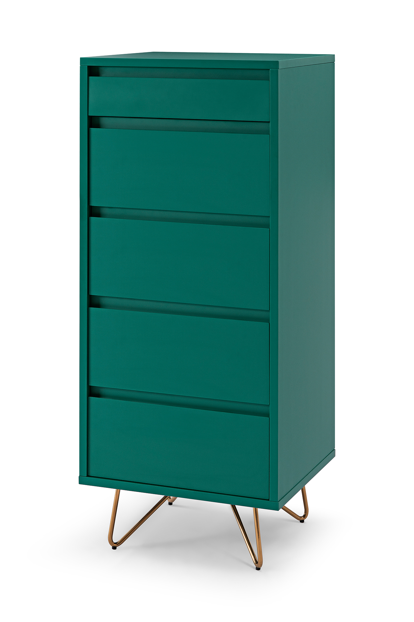 Cette commode moderne dans un joli design scandinave attirera tous les regards. L'association de teintes sobres et des pieds métalliques ton doré fait de ce chiffonnier un meuble très particulier. Grâce à quatre tiroirs spacieux, vous disposerez de beaucoup d'espace de rangement stylé pour les petites choses du quotidien. Un miroir se trouve dans le couvercle rabattable, de sorte que cette commode peut également être utilisée comme coiffeuse. Le design scandinave moderne de cette commode sera toujours tendance et se combinera à merveille avec votre ameublement déjà existant.