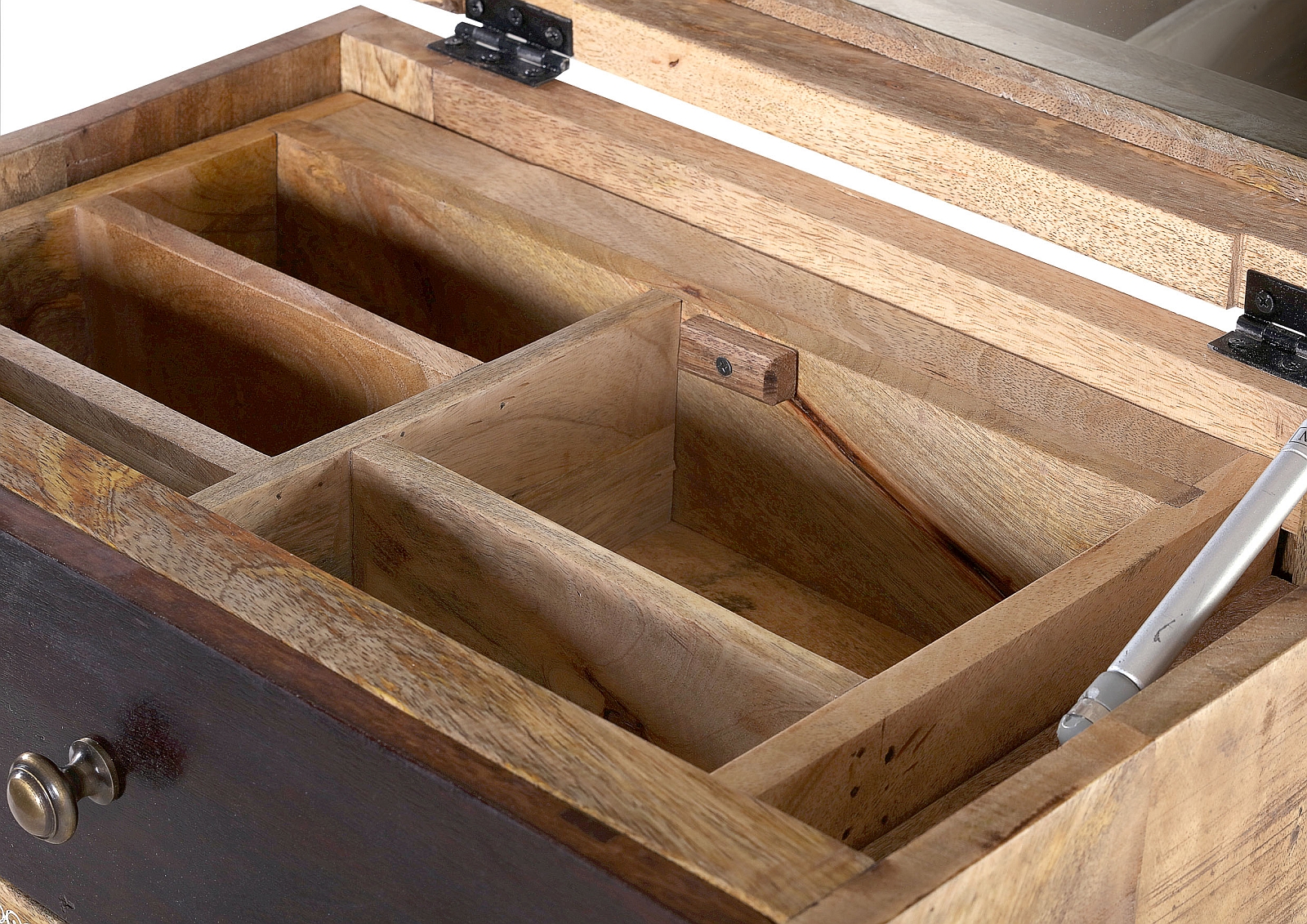 Caisson : bois de manguier massif (Inde), teinté et laqué, ton naturel