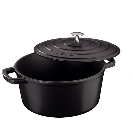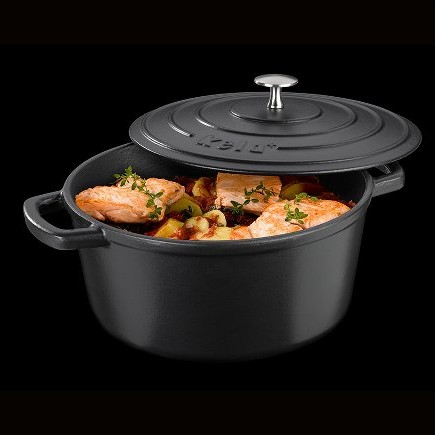 Cocotte ronde Calido ton noir : elle se caractérise par son revêtement en émail à l'intérieur et à l'extérieur.