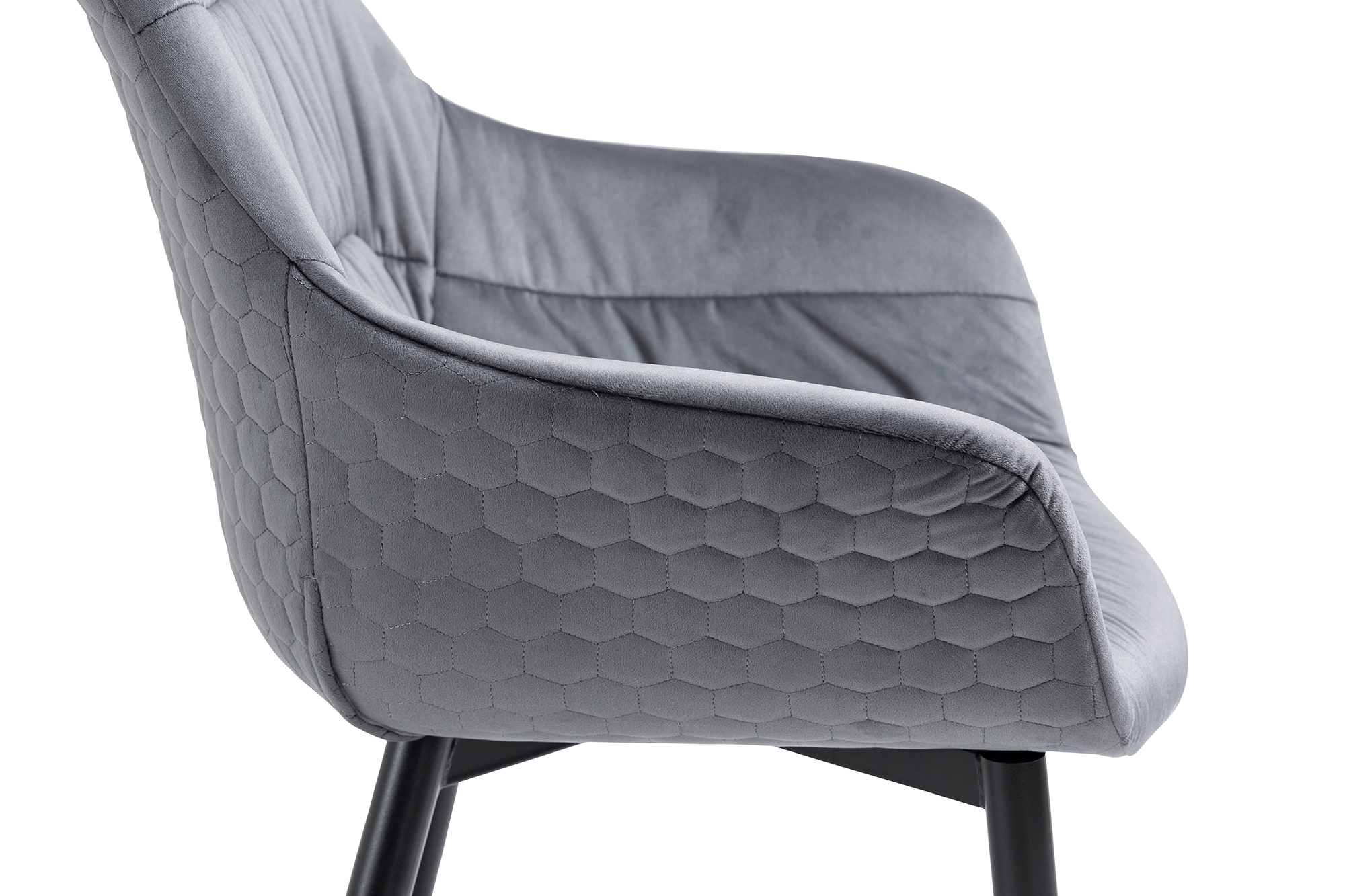 - Revêtement des chaises : intérieur avec surpiqûres horizontales et extérieur effet nid d’abeilles