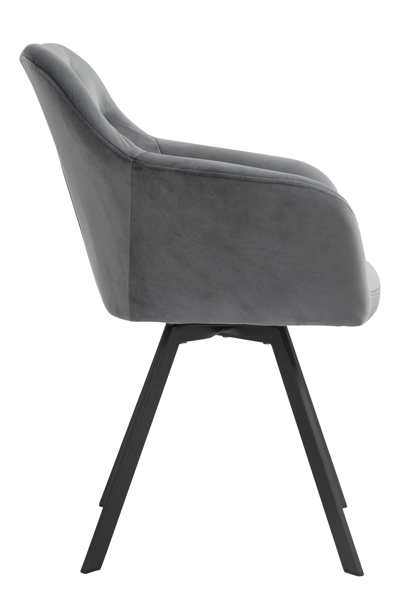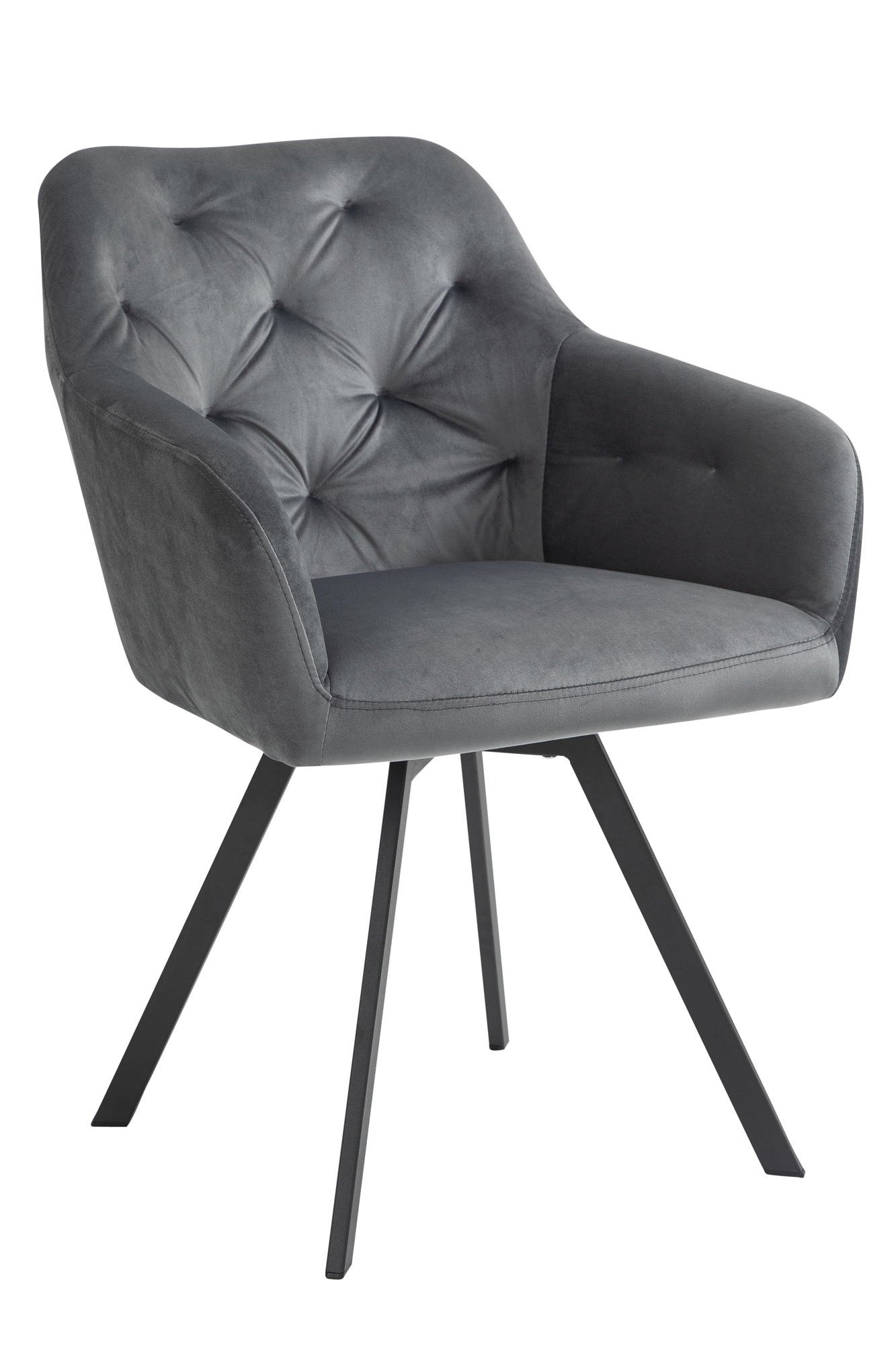 Un look vintage avec une touche de glamour : le coin repas 5 éléments comprend une table en bois d’acacia massif ainsi que 4 chaises à accoudoirs dans un élégant revêtement en velours. Le plateau de table de 26 mm d’épaisseur en acacia massif est traité avec l’huile-cire OSMO pour une finition satinée tout en protégeant la table de l’eau, des salissures et de l’abrasion. Le point fort : le piètement en U en métal laqué ton noir confère à la table une excellente stabilité et représente un contraste bienvenu avec le joli plateau ton noyer chaleureux. Avec cette table aux bords aspect flache, vous ferez entrer un peu de nature dans votre intérieur. Les chaises donnent un aspect chic à l’ensemble. Le rembourrage généreux de l'assise et des accoudoirs garantit un confort optimal tandis que le dossier capitonné et le piètement robuste - composé de quatre pieds en biais façon tripode en métal finition époxy ton noir - apportent la touche finale pour un look exclusif. Cerise sur le gâteau : la fonction pivotante à 360° offre confort et liberté de mouvement. Remarque : comme cette table en bois massif est un produit naturel, elle peut présenter des nœuds ou des variations de teinte qui ne sont pas des défauts, mais soulignent le caractère individuel du bois véritable.