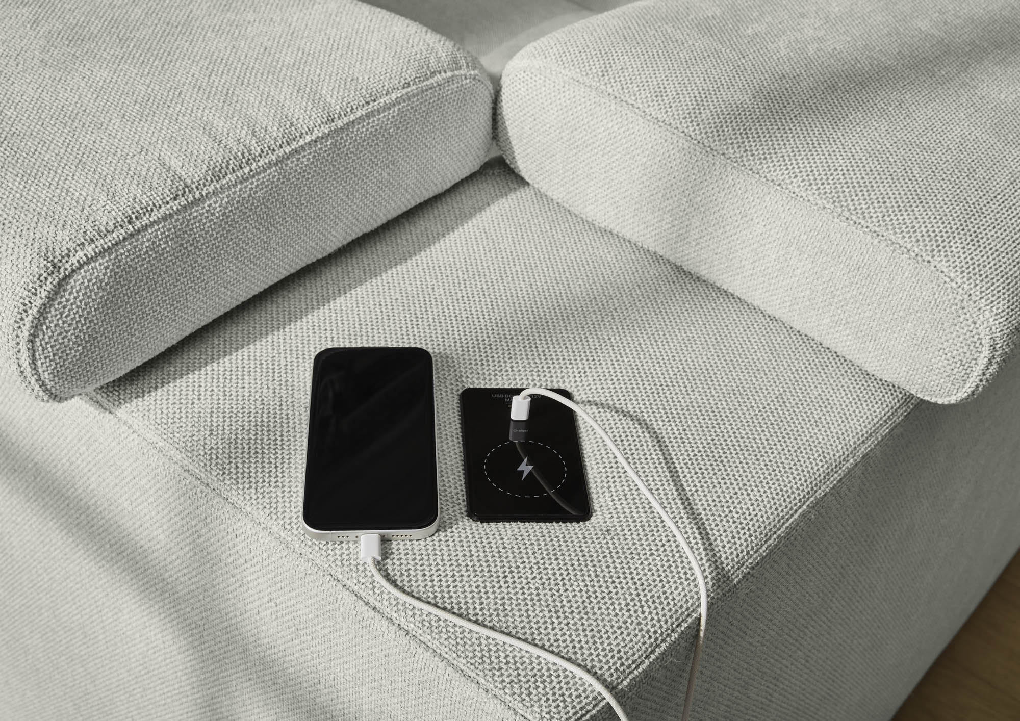Station de recharge USB (A et C) avec possibilité de recharge par induction dans le canapé d'angle