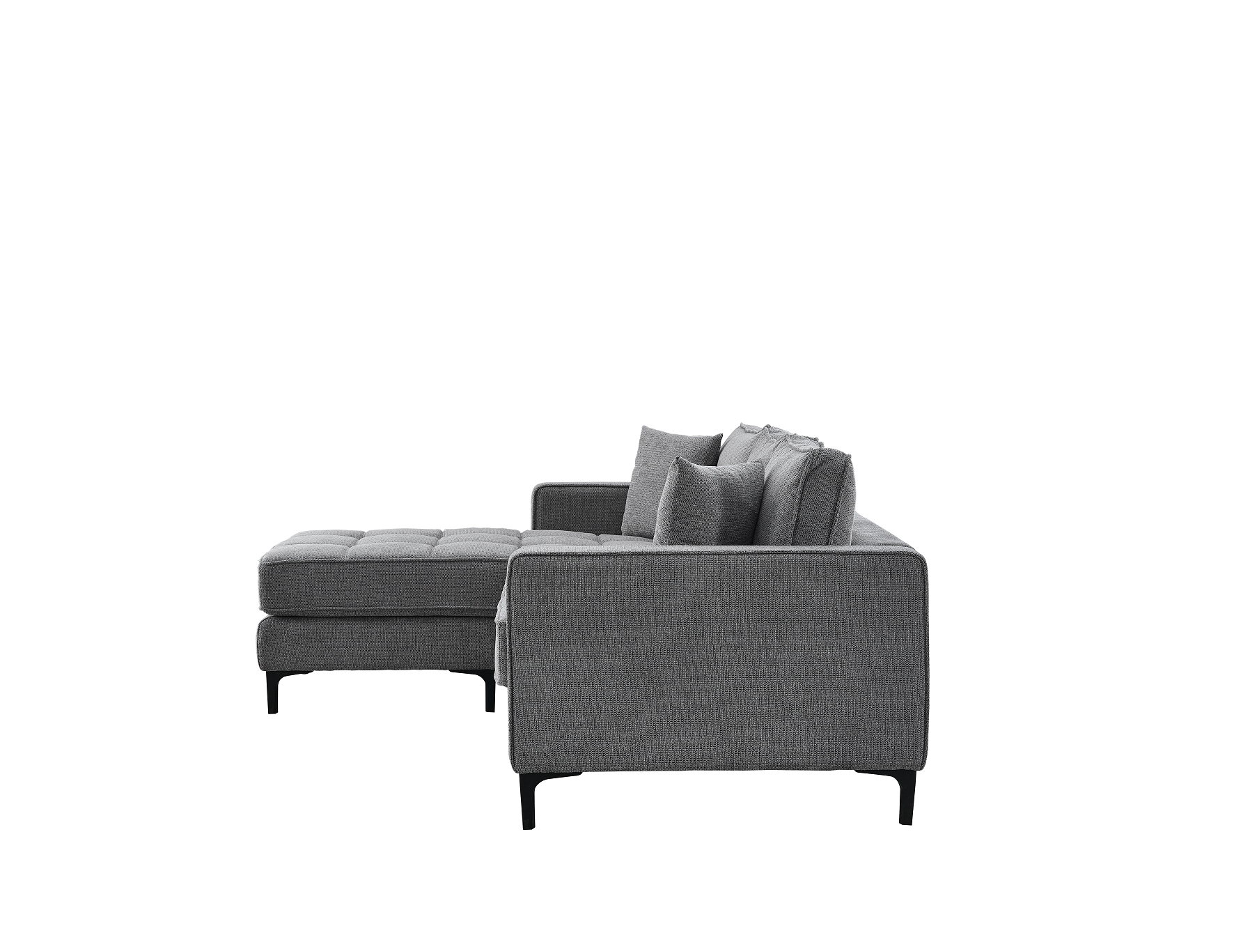 Ce canapé d'angle offre une solution d'assise pratique pour les salons de différentes tailles. Recouvert du tissu robuste Aragon 90 en polyester et nylon, ce meuble séduit par ses propriétés faciles d'entretien et son look intemporel. Le rembourrage en mousse de polyéther assure un confort d'assise solide au quotidien. Équipé de trois coussins de dossier et de deux coussins décoratifs, ce canapé invite à la détente. Le dossier est recouvert d'un tissu véritable, ce qui permet de placer le canapé librement dans la pièce. L'orientation est flexible : il peut être monté à gauche ou à droite. Le canapé d'angle est livré sans décoration.