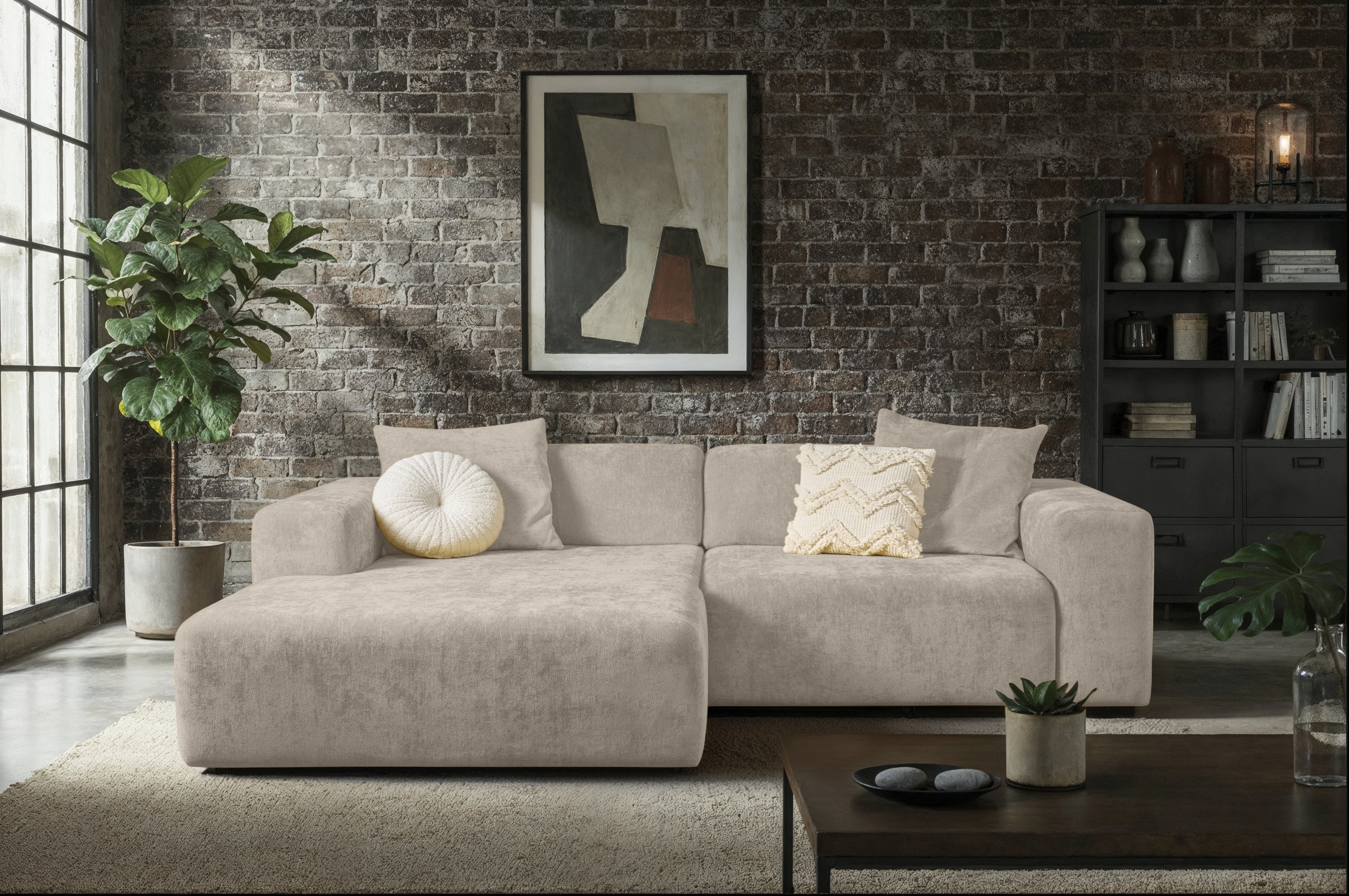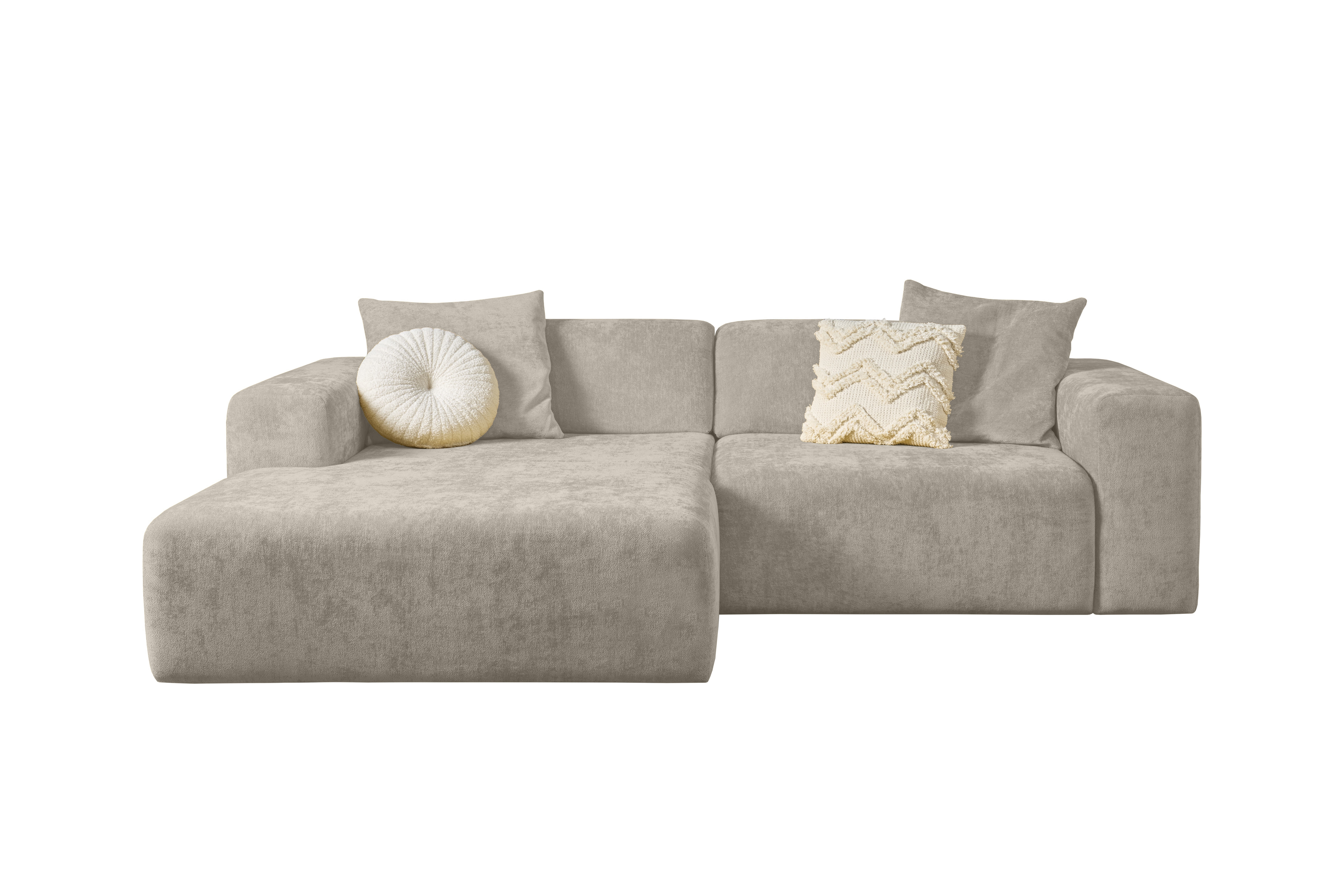 Ce canapé d'angle pratique de couleur beige offre un confort d'assise solide et une surface facile d'entretien pour un usage quotidien. Le revêtement est résistant et agréable au toucher. Le rembourrage en mousse Hypersoft double densité, associé à la suspension à ressorts ondulés, garantit une assise confortable. Deux accoudoirs et un pouf sur le côté gauche rendent ce canapé d'angle polyvalent. Deux coussins décoratifs assortis sont inclus dans la livraison. Ce canapé d'angle est particulièrement adapté aux espaces de vie compacts et offre une solution économique pour un confort d'assise au quotidien.