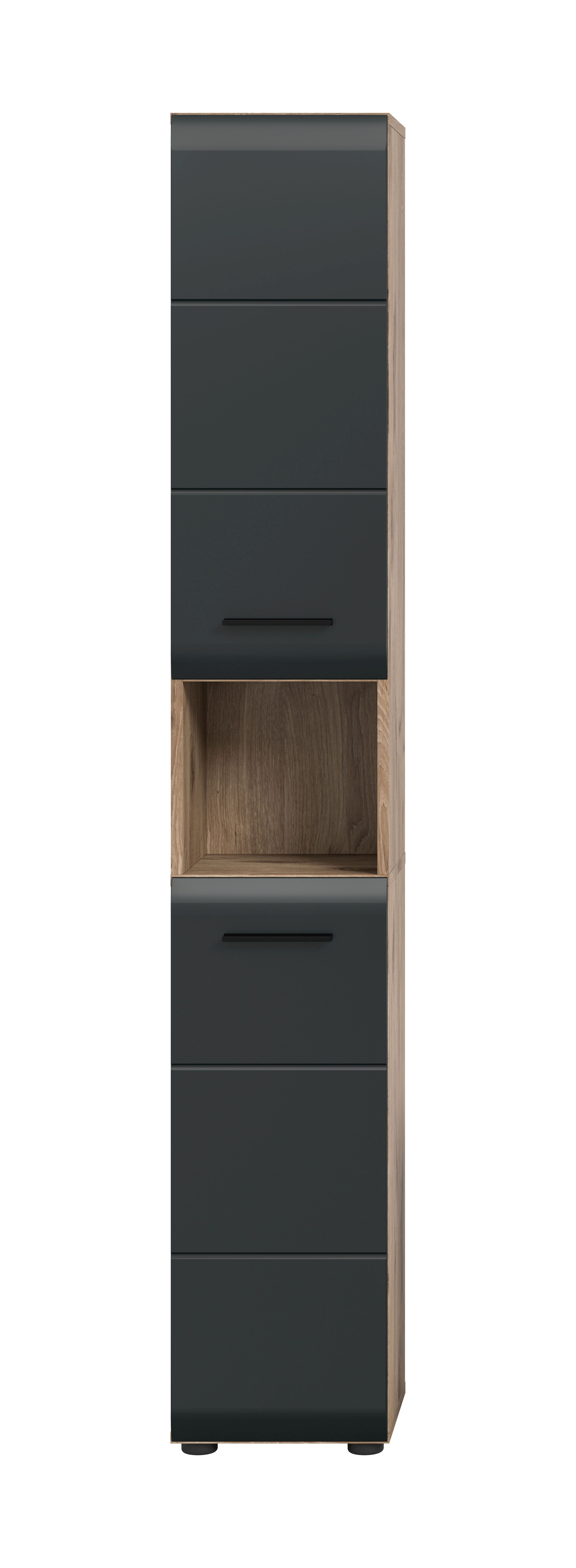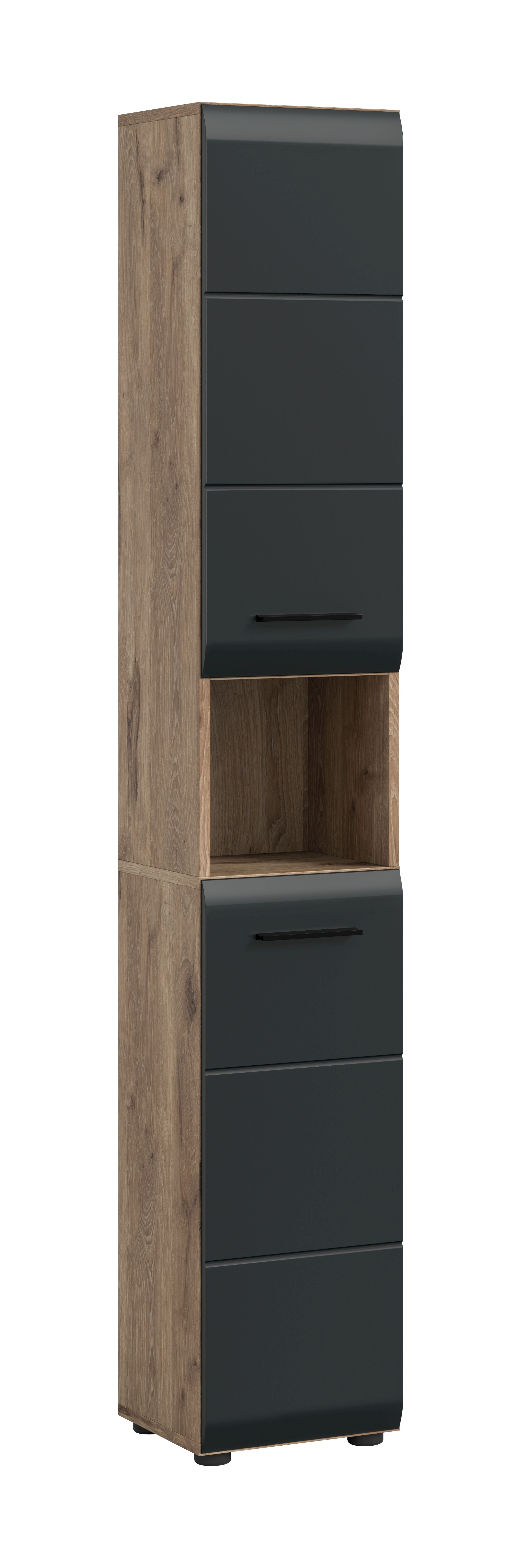 Avec ses dimensions pratiques (30 x 185 x 30 cm), ce meuble est équipé de deux portes à ouverture réversible (à droite ou à gauche), de quatre tablettes amovibles réglables en hauteur, de six compartiments, de deux tablettes fixes et d’un casier ouvert. Il allie flexibilité et fonctionnalité pour s’adapter à vos besoins. Parfait dans la salle de bains ou dans l’entrée, il séduit par sa façade en MDF avec finition rainurée qui lui confère un look tendance.