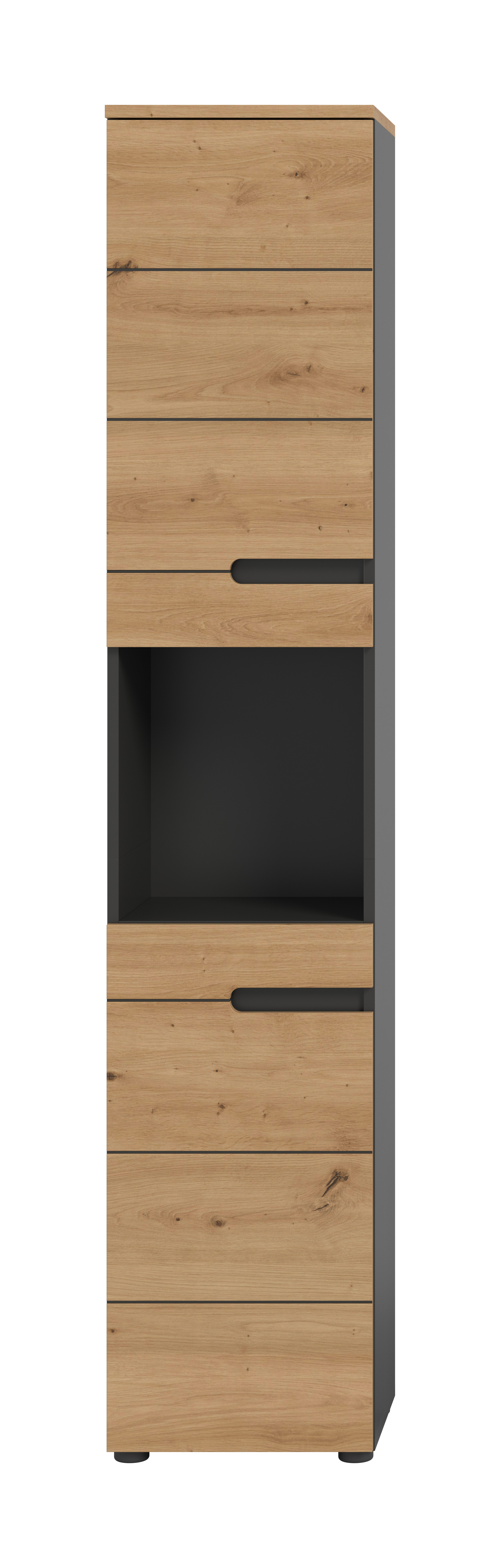 Apportez style et organisation à votre salle de bains avec ce meuble colonne élégant au design moderne. L’association du décor chêne Artisan et de l’intérieur noir crée un contraste raffiné qui confère au meuble une allure intemporelle, s’intégrant parfaitement dans tous les styles de salles de bains.
